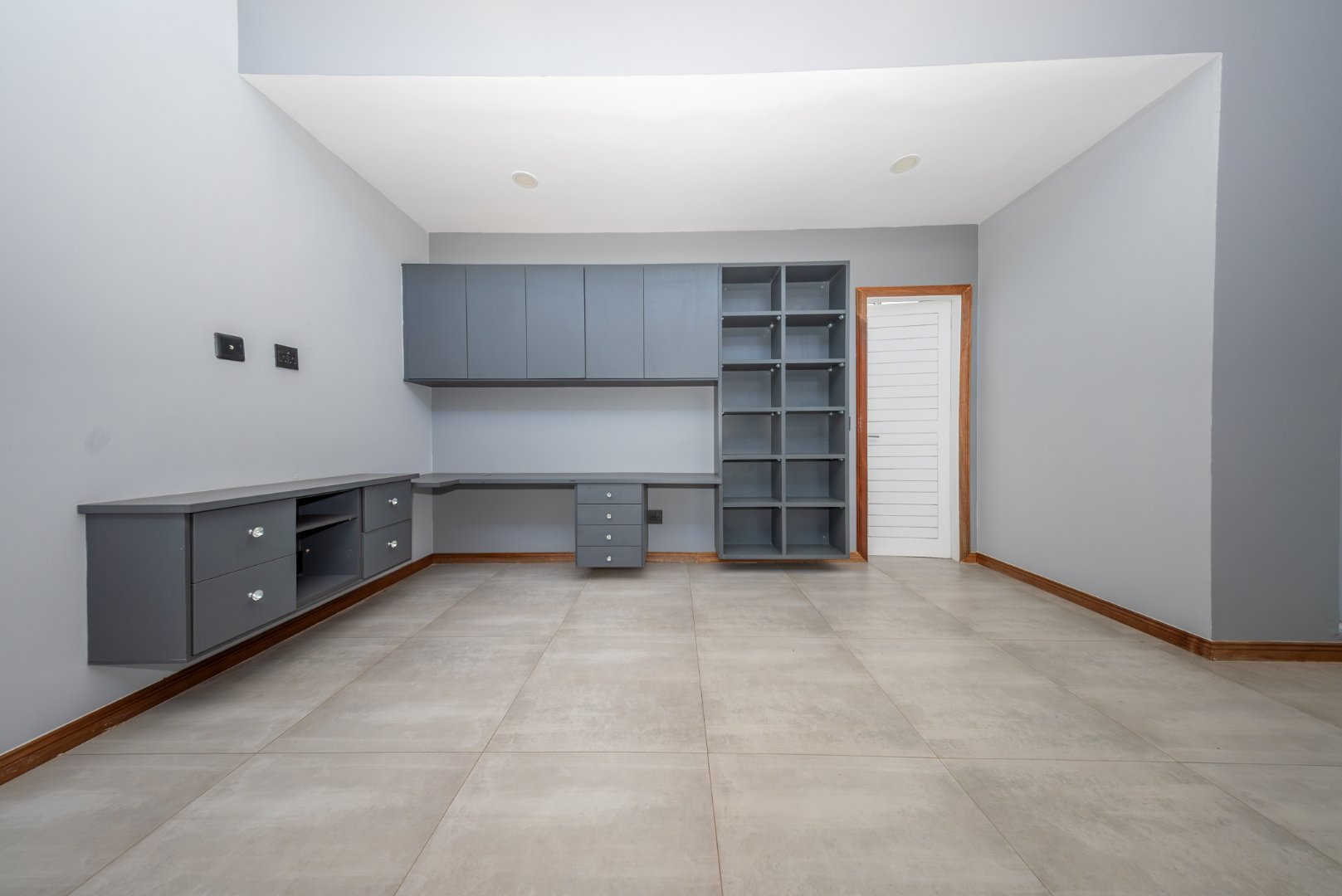 Downstairs, you’ll find a guest bedroom and bathroom, offering convenience and privacy.
