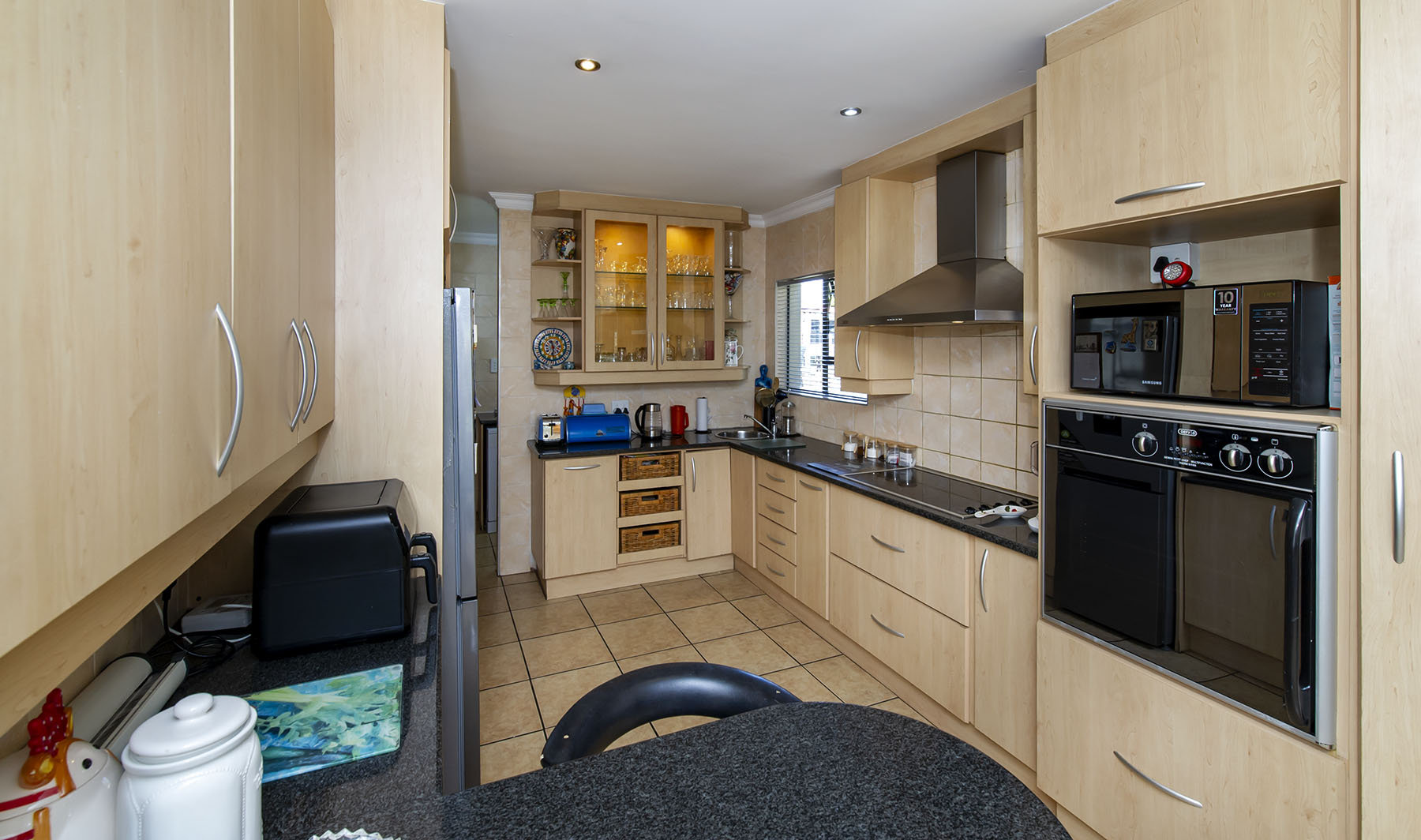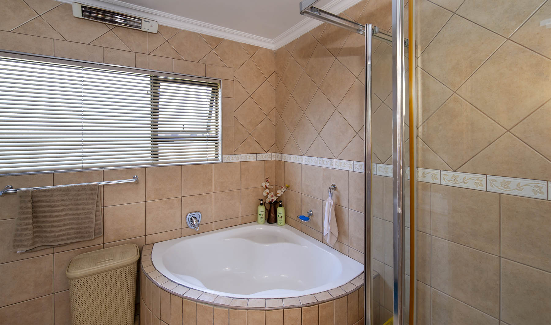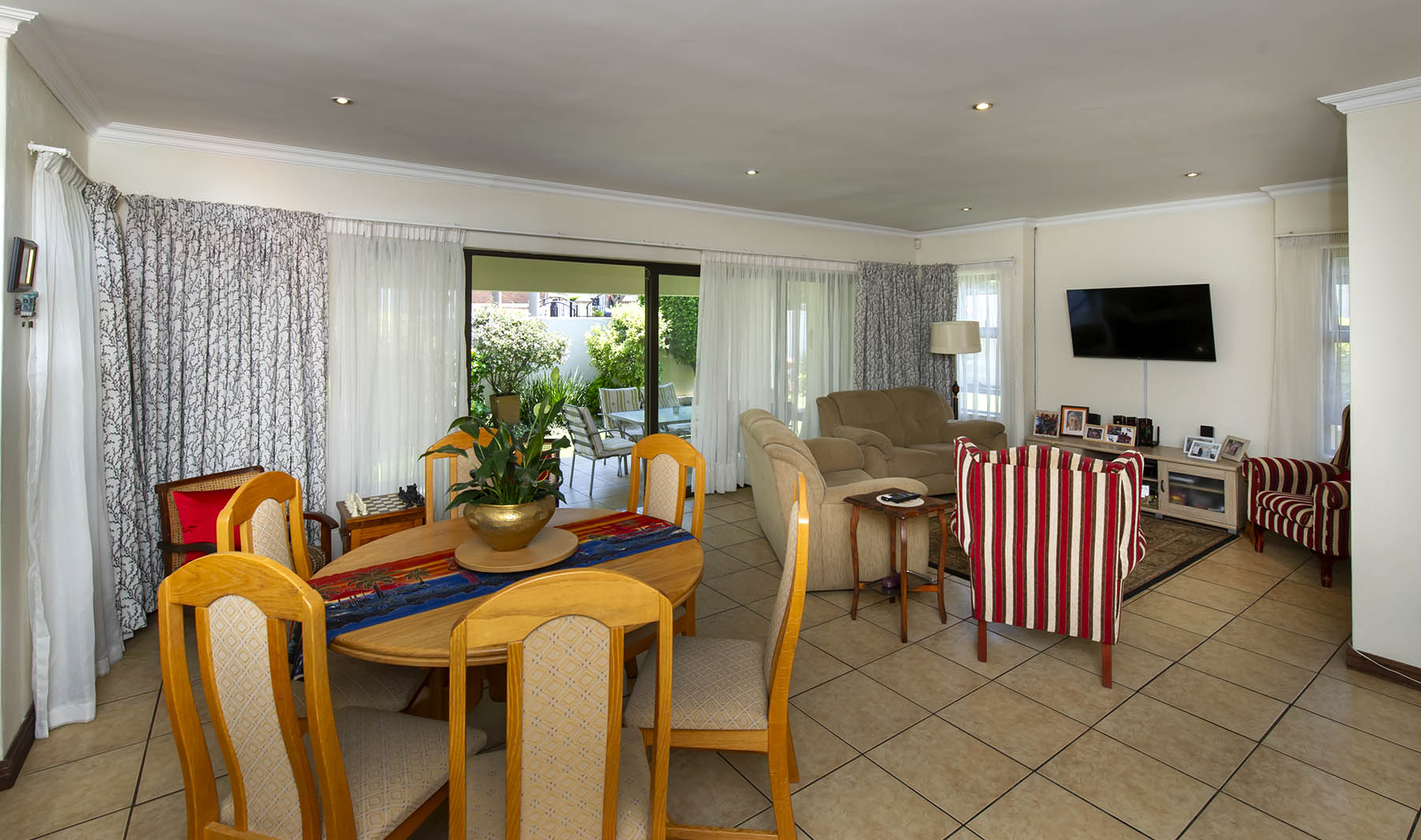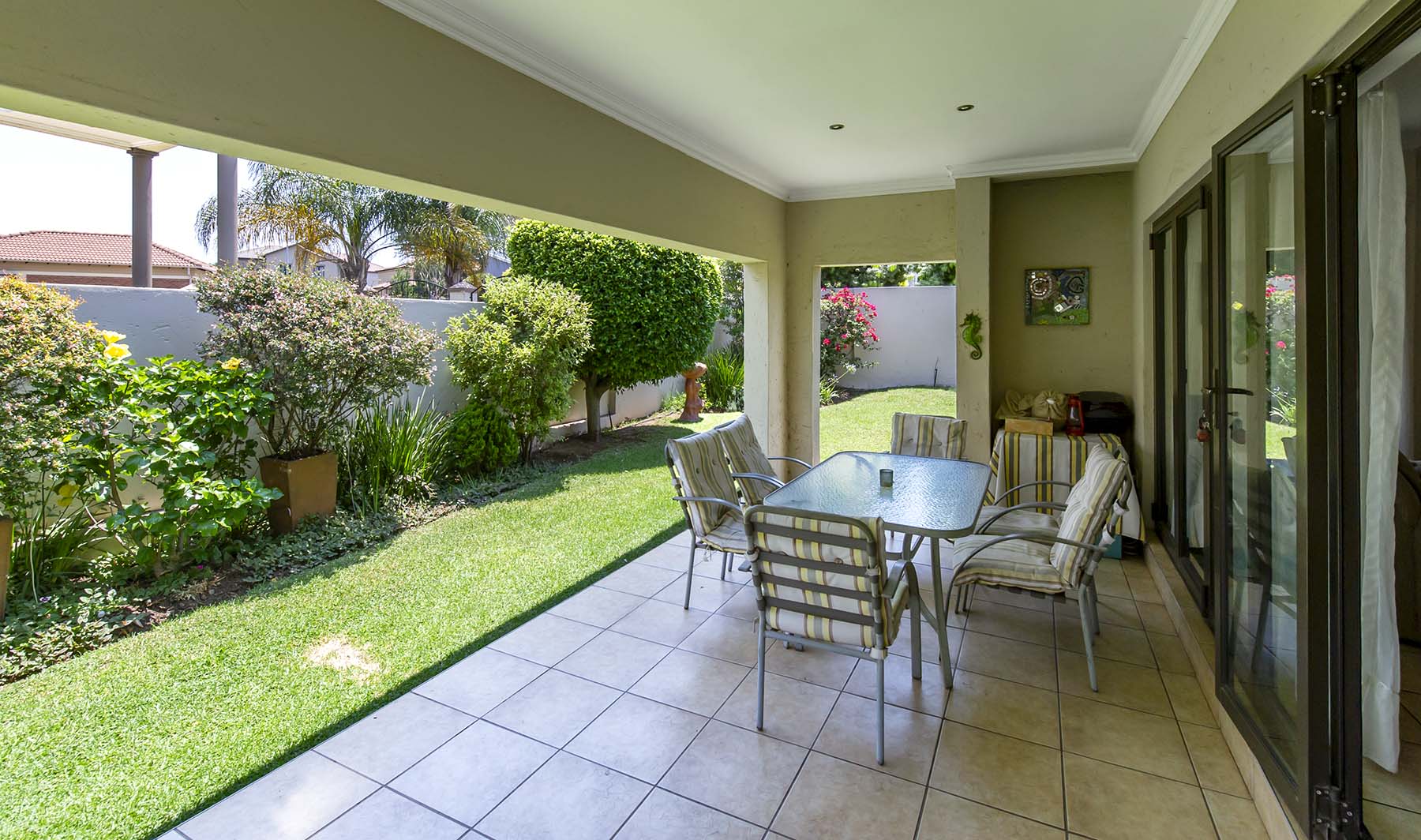 This neat and modern 3-bedroom, 2-bathroom home is located in a secure 24-hour security estate and offers comfortable living on a 553 m2 stand. The main bedroom includes an en-suite bathroom, and the home features a tiled lounge, a breakfast nook, and a well-equipped kitchen with granite countertops, an electric hob and oven, extractor fan, and a separate scullery. Additional features include a double garage, extra parking, burglar bars, security beams, and a prepaid electricity system. Sustainability and convenience are enhanced with a 5kVA inverter supported by four solar panels and a 1000-litre JoJo tank plumbed directly into the house. This home is ideal for those seeking security, efficiency, and modern comfort.