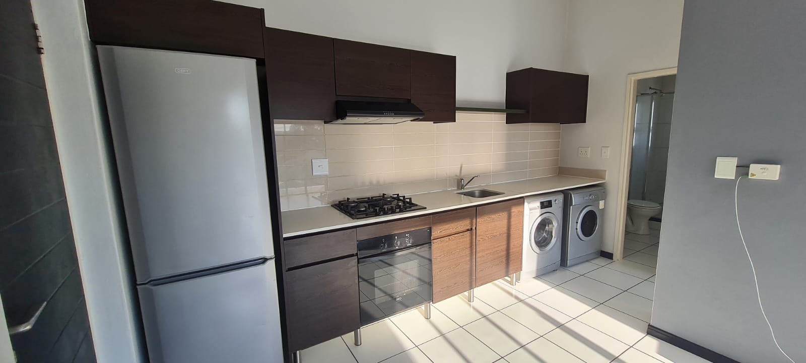 Step into a beautifully designed open-plan space featuring a contemporary kitchen with ample cupboard space and sleek finishes, seamlessly flowing into a comfortable lounge area. The generously sized bedroom provides a tranquil retreat.