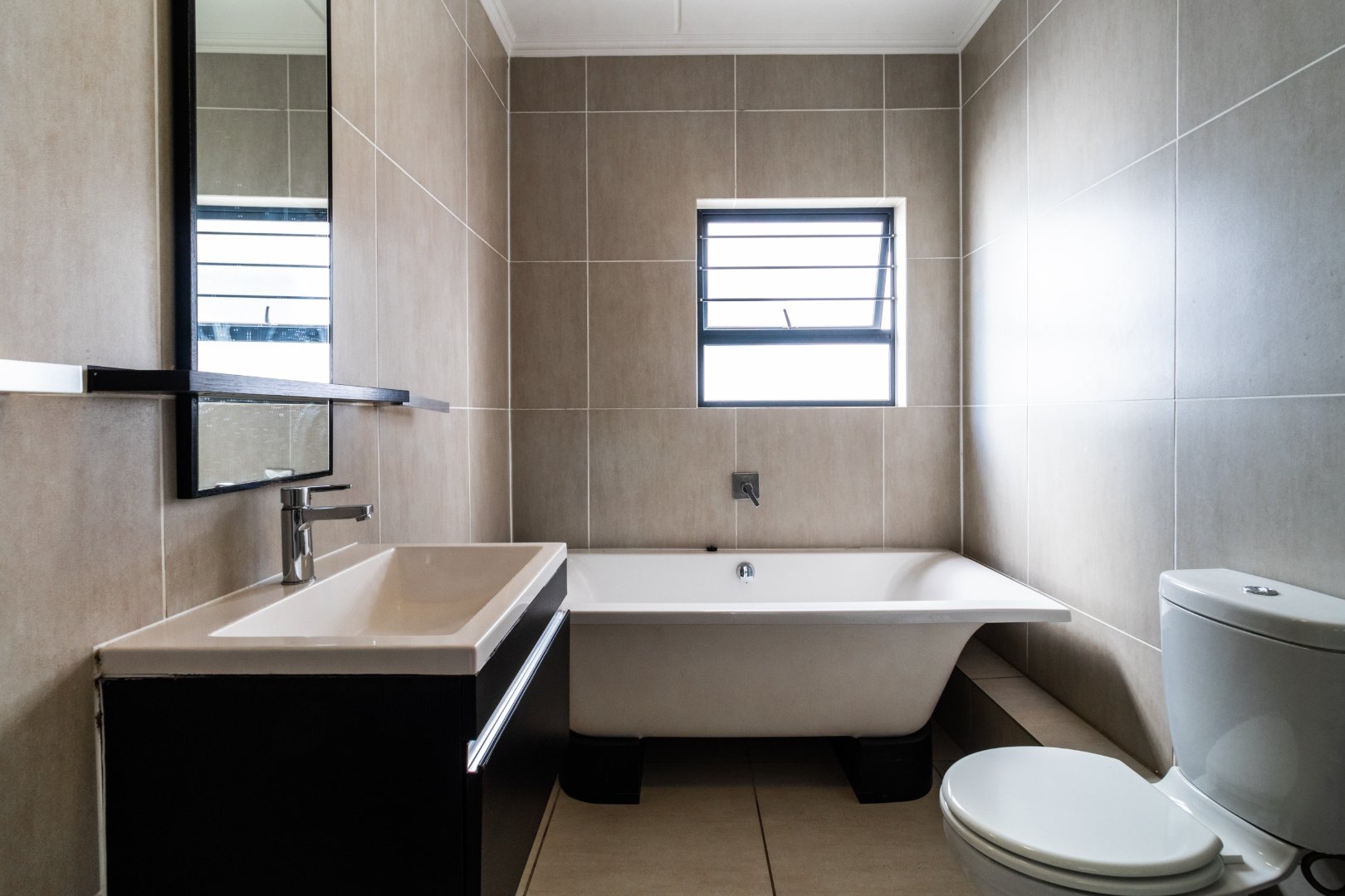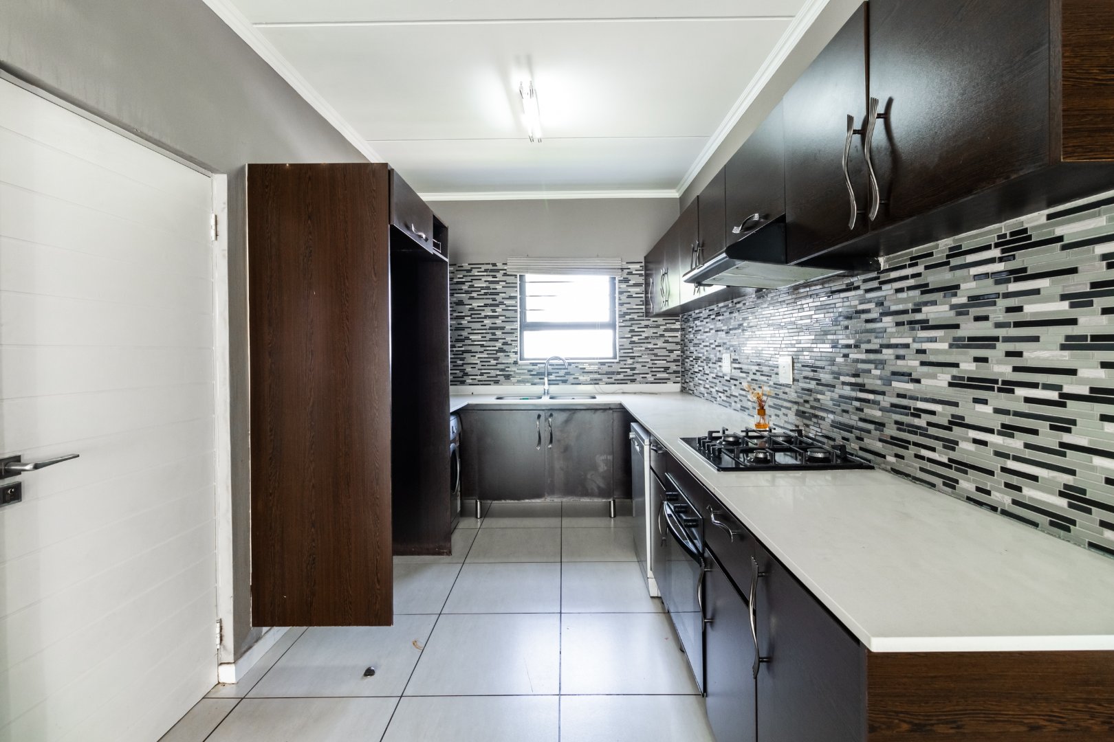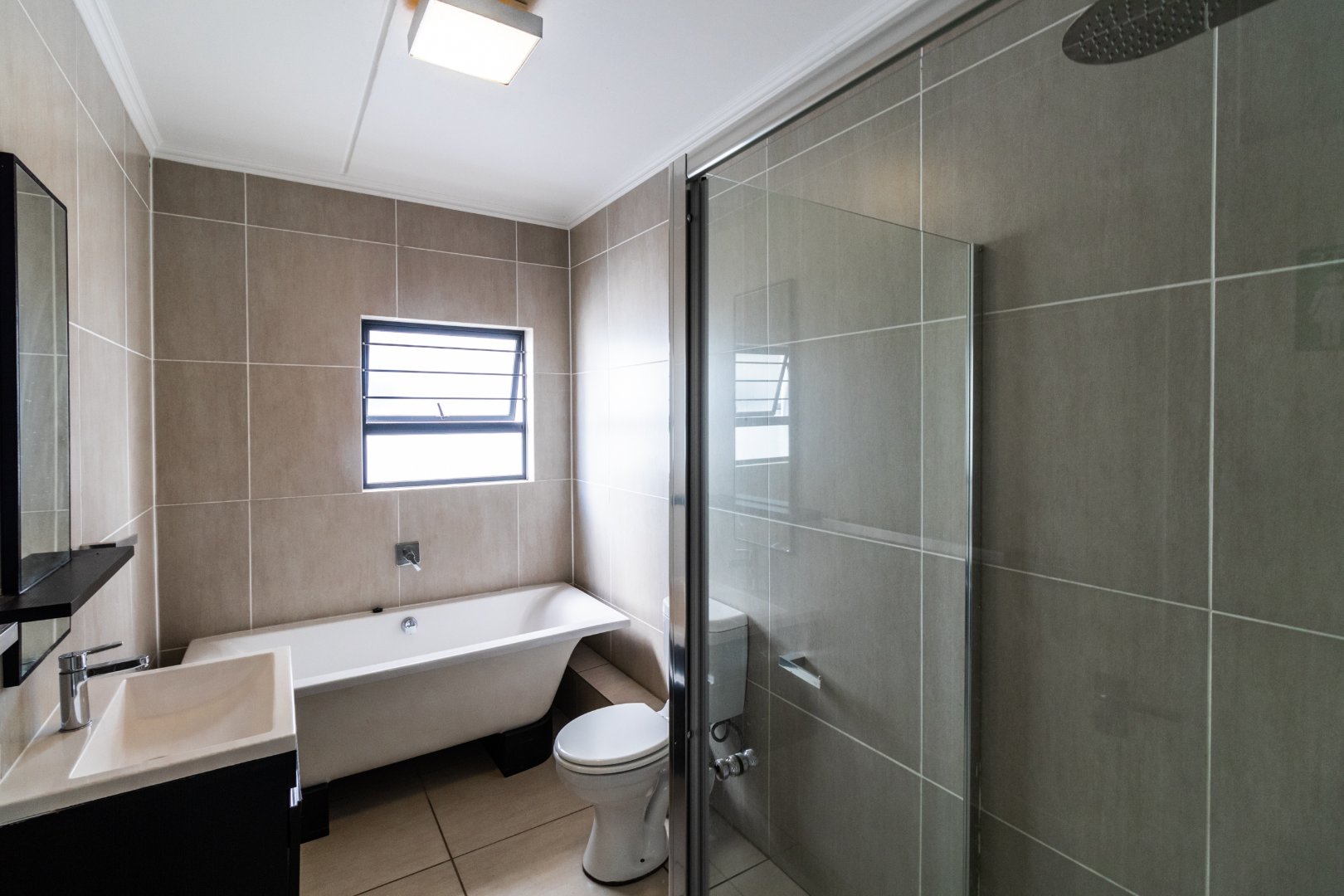 This stunning 104m2 garden unit offers a seamless blend of style and functionality in the sought-after Greenstone Ridge estate. The open-plan living area features a contemporary kitchen with Caesarstone countertops, an electric oven, and a gas hob, flowing effortlessly into the lounge. Aluminium sliding glass doors lead to a private patio, perfect for relaxation. The main bedroom includes an en-suite bathroom, while the additional two bedrooms share a well-appointed second bathroom.