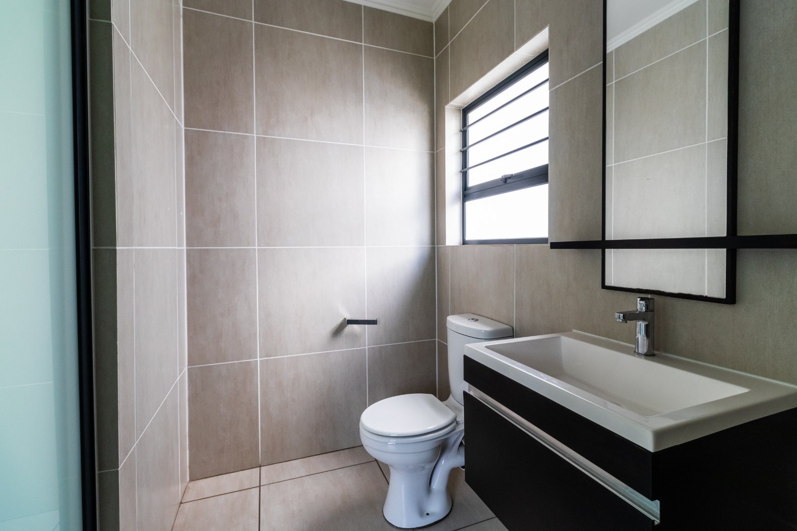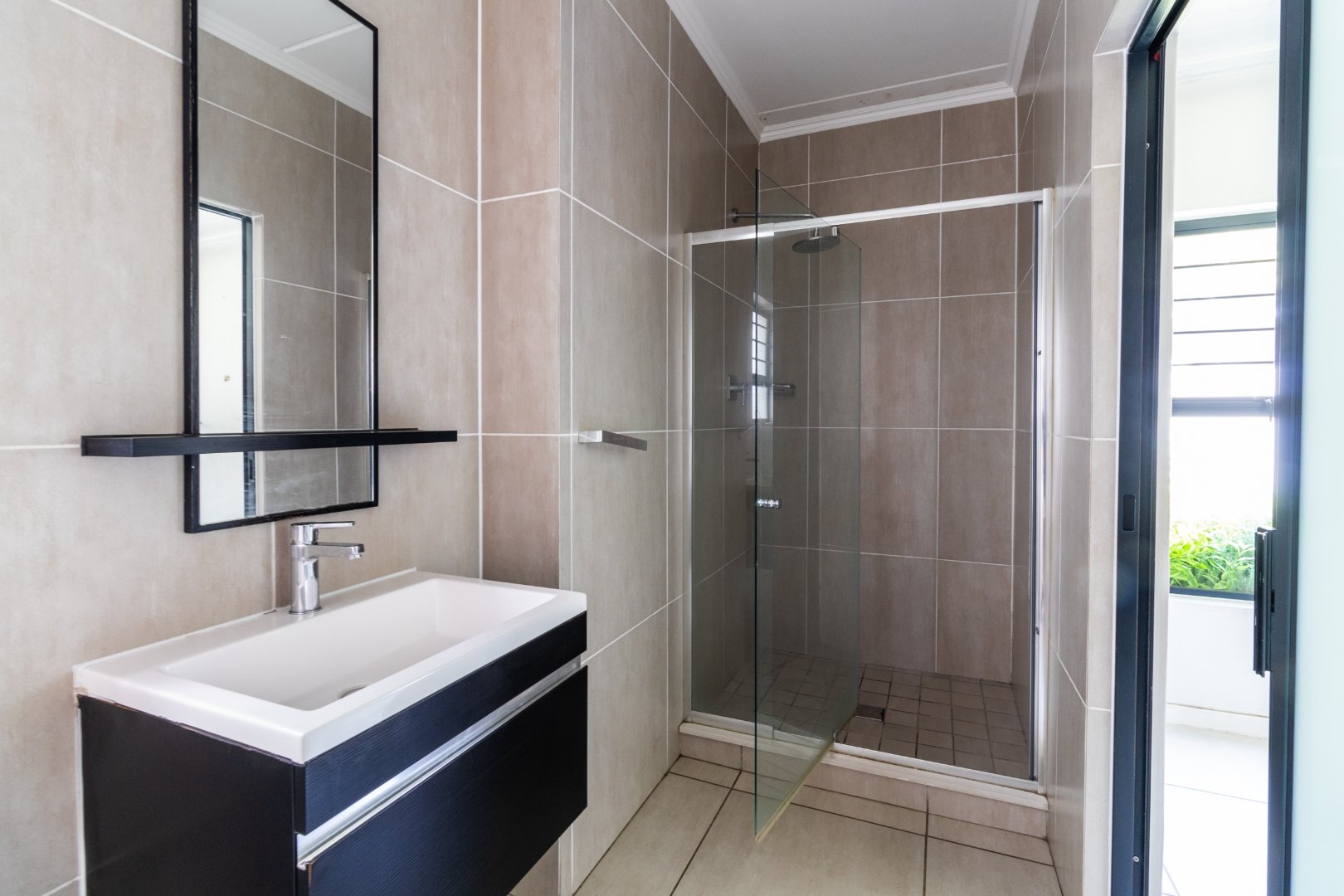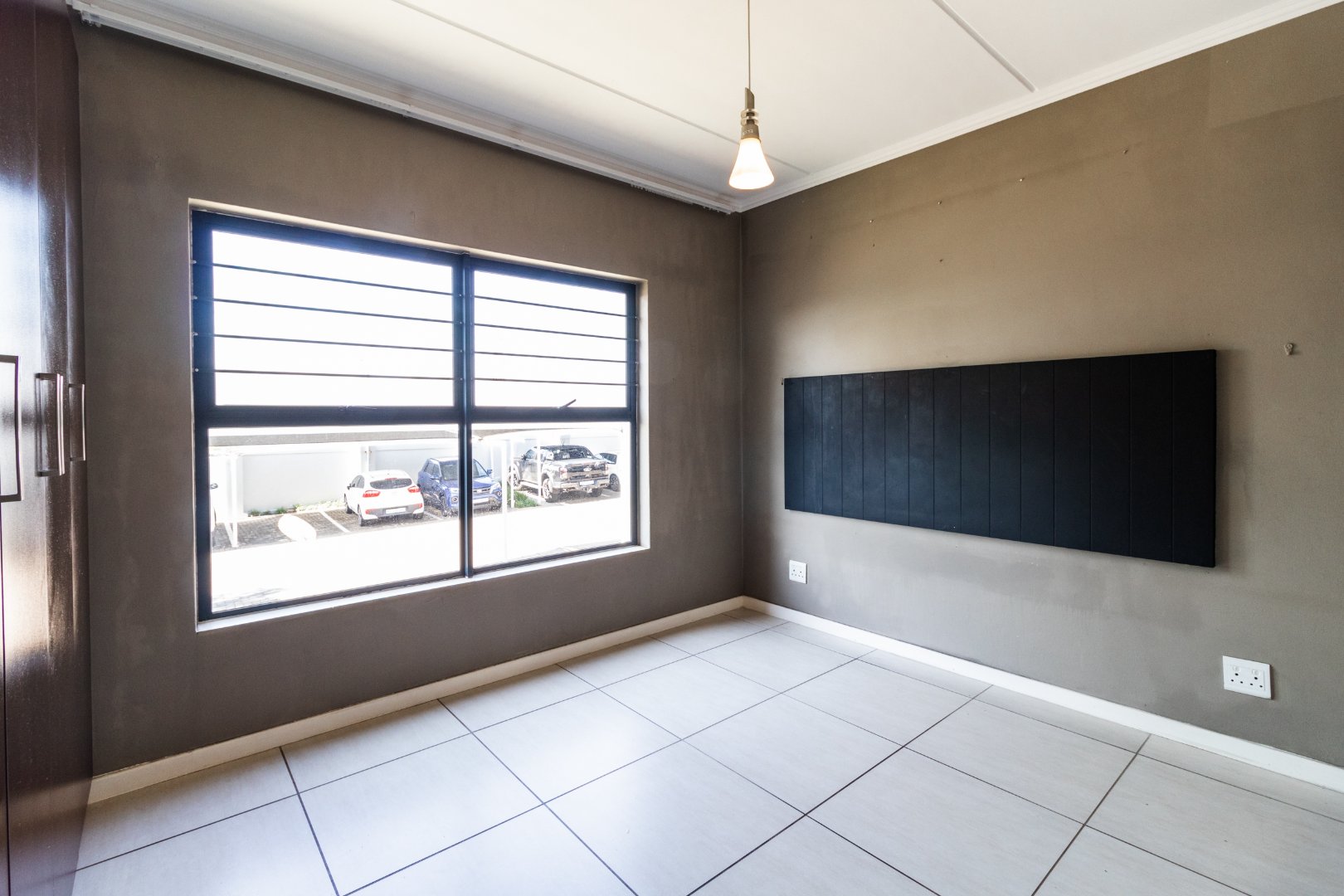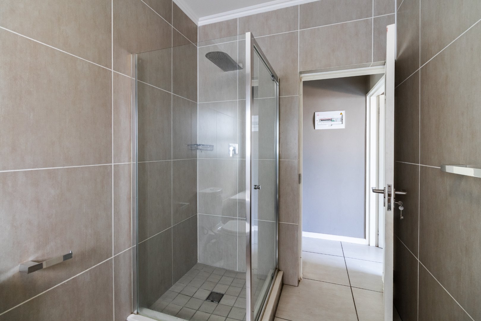 This stunning 104m2 garden unit offers a seamless blend of style and functionality in the sought-after Greenstone Ridge estate. The open-plan living area features a contemporary kitchen with Caesarstone countertops, an electric oven, and a gas hob, flowing effortlessly into the lounge. Aluminium sliding glass doors lead to a private patio, perfect for relaxation. The main bedroom includes an en-suite bathroom, while the additional two bedrooms share a well-appointed second bathroom.
