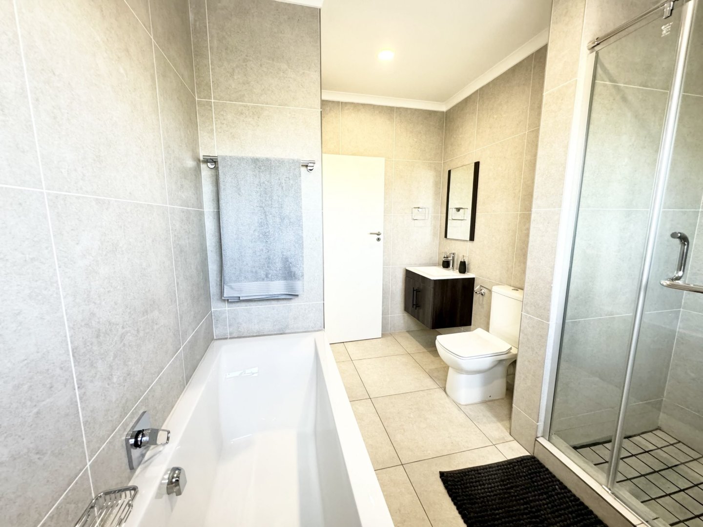 Private master suite featuring a spacious wardrobe and spa-style bathroom with soaking tub and rain shower