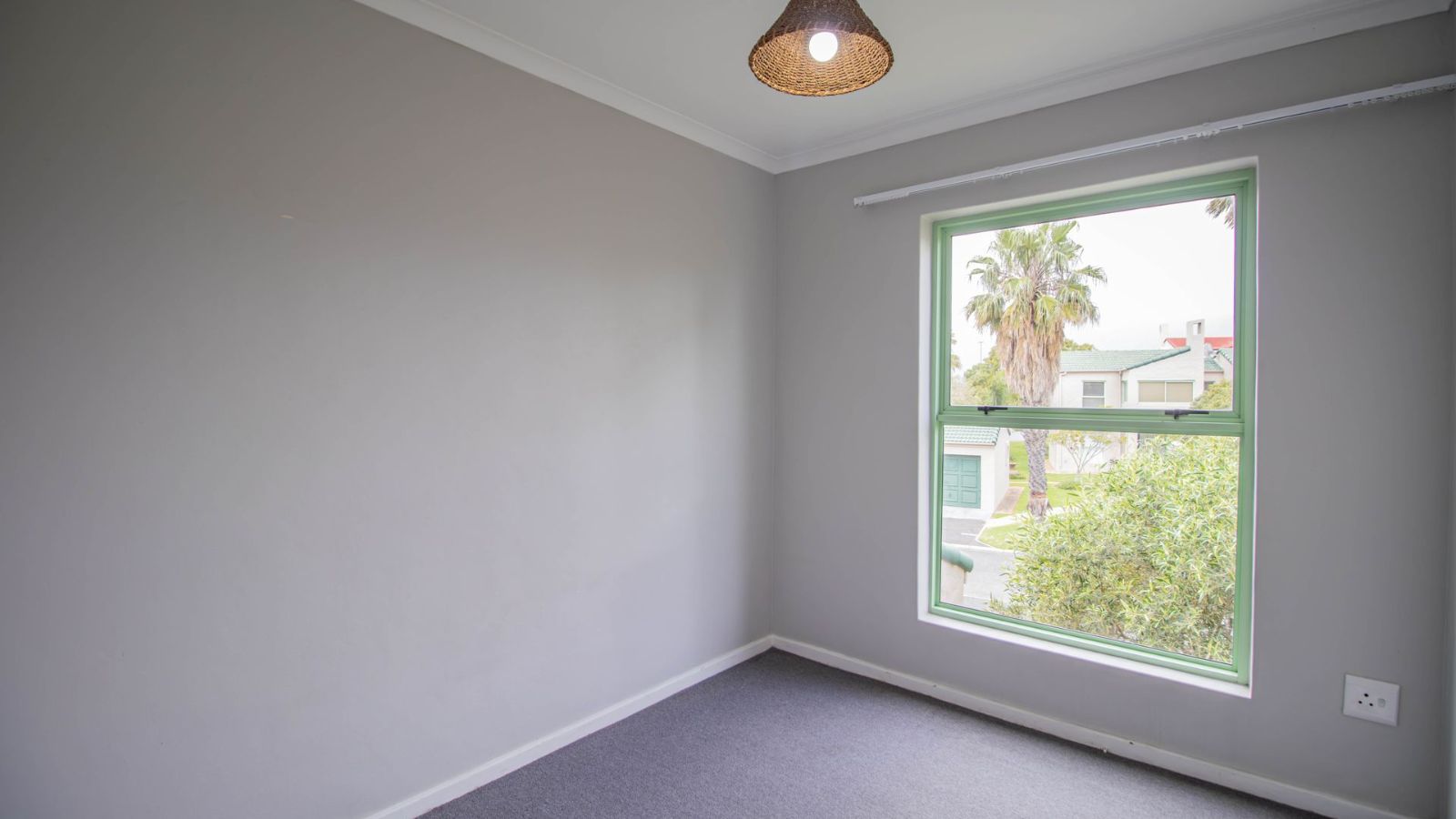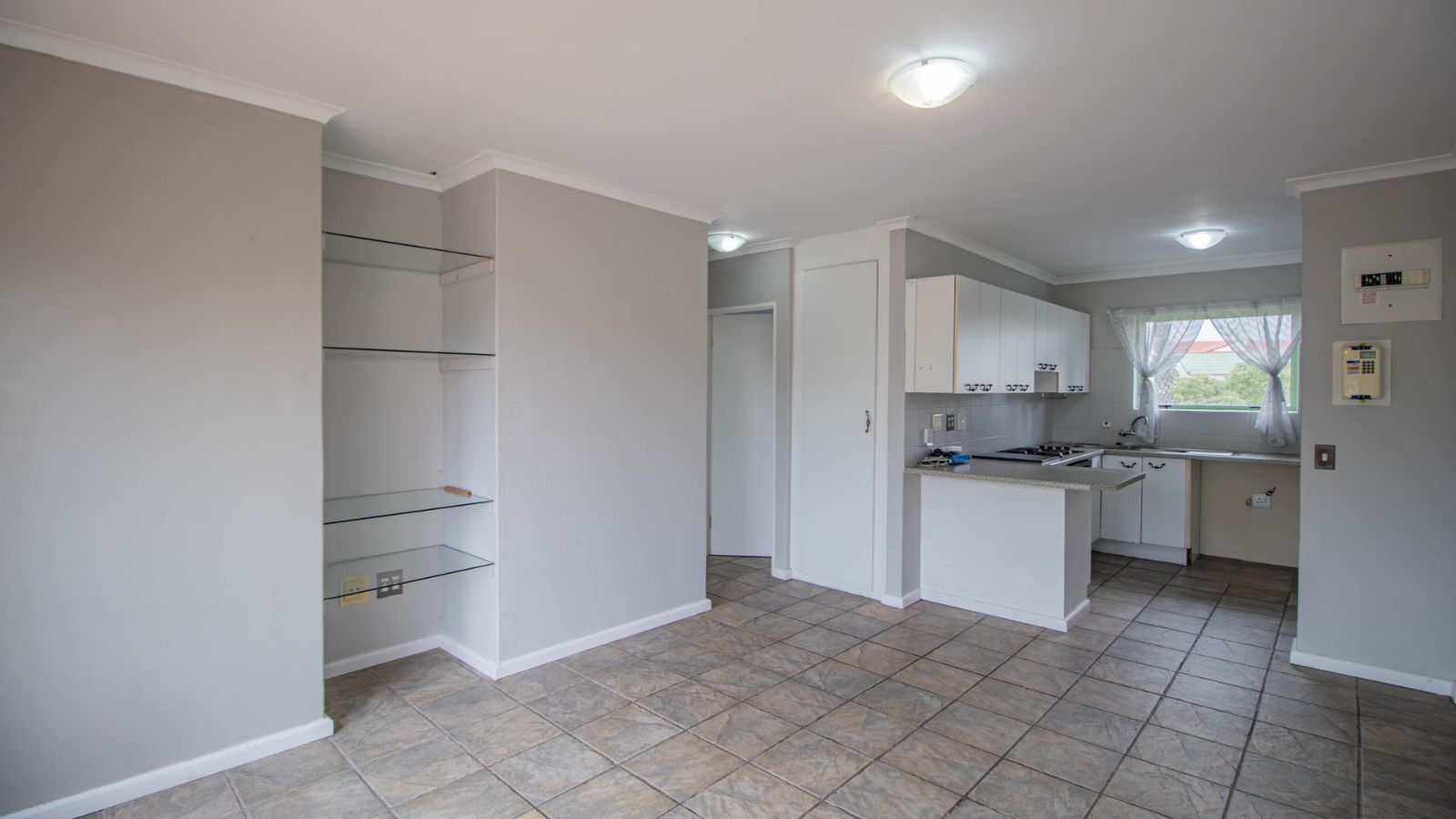 This neat and beautiful 2-bedroom apartment is located in the sought-after Greenways Golf Estate, renowned for its world-class facilities and secure, family-friendly environment. Situated in Bermuda Beach, the first-floor unit offers open-plan living with a well-designed kitchen featuring neat countertops, electric stove, oven and extractor fan, ample cupboards, a breakfast nook, and a waterpoint for either a dishwasher or washing machine. The lounge flows seamlessly onto a balcony through French doors, where you can entertain, relax, and enjoy mountain views alongside the estate’s tranquil setting. Both carpeted bedrooms include generous cupboard space and share a modern bathroom with a luxurious double walk-in shower. The apartment also provides an allocated parking bay with potential to build a garage (subject to approval), as well as access to visitors’ parking.