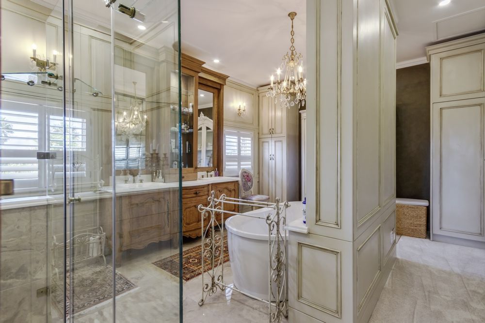 The ground-floor guest suite offers comfort and convenience, while upstairs, the master bedroom steals the show. Its private balcony showcases sea and fairway views, complemented by a Baroque-inspired bathroom exuding opulence. Two additional bedrooms, including one with a wraparound balcony, provide unique perspectives of the surrounding natural beauty.