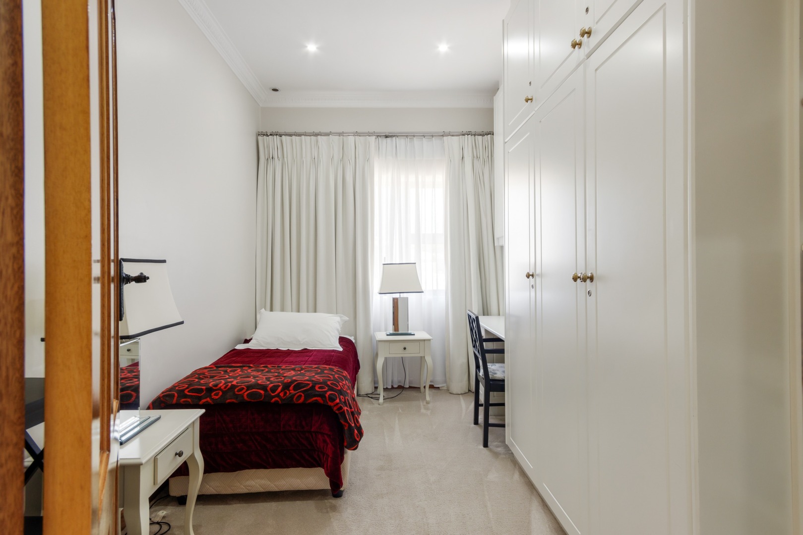 Step inside to discover a blend of classic charm and modern sophistication. The grand entrance leads to a double-volume living area, perfect for entertaining, with folding stacker doors that open to the outdoors and a built-in stainless-steel braai. The French-inspired open-plan kitchen, complete with a gas stove, eye-level ovens, and a spacious scullery, is both stylish and functional, catering to culinary perfection.