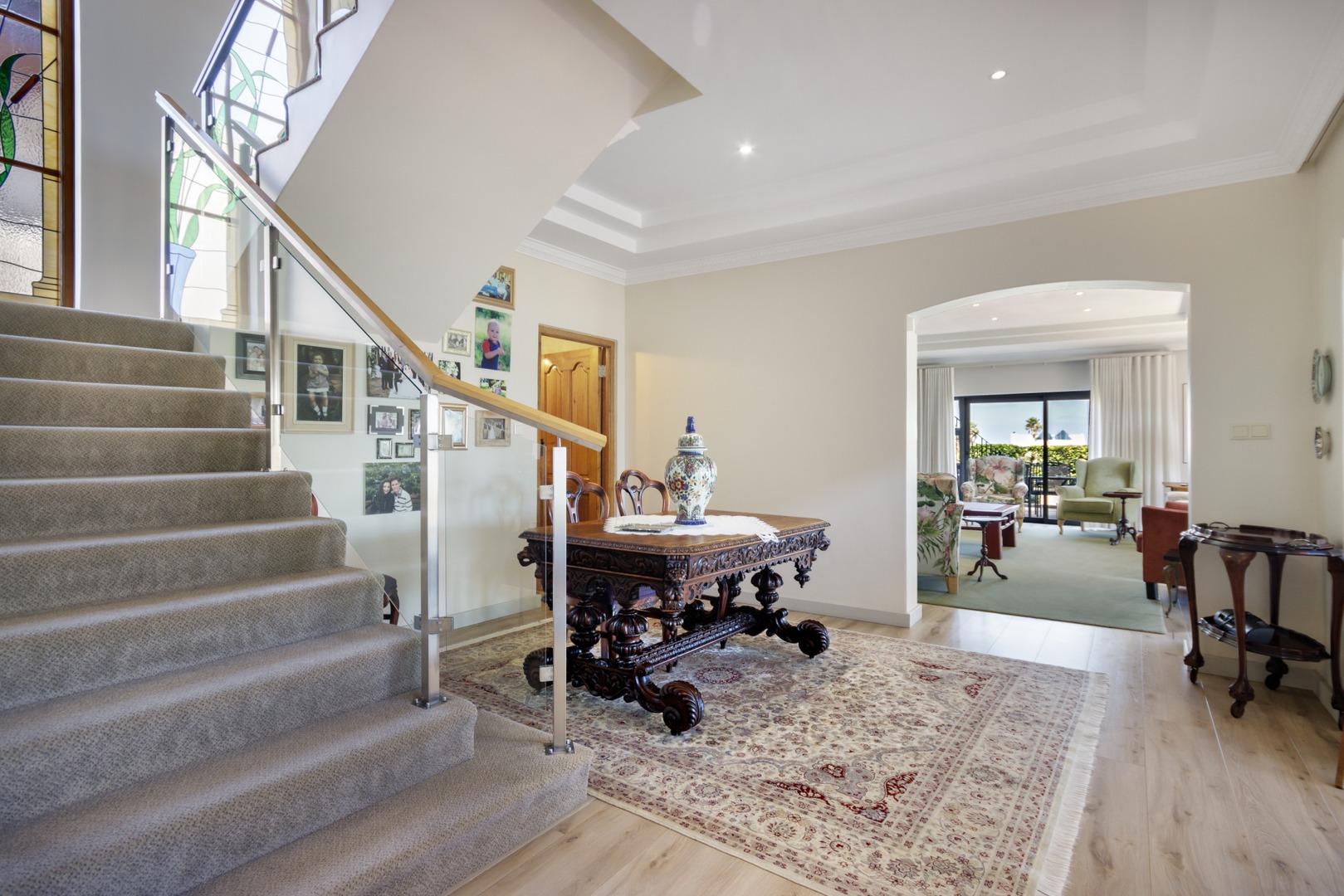 Nestled in the prestigious Greenways Beach & Golf Estate, this 610 m2 Tuscan-inspired residence offers breathtaking 270° views of lush fairways, majestic mountains, and the sparkling ocean. Positioned on a secluded corner with only one neighbor, it’s a haven of privacy and luxury.