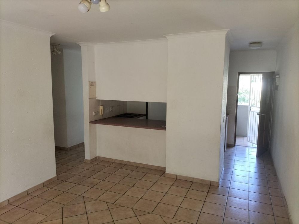 Open plan kitchen onto tiled lounge area that opens onto a covered balcony patio.