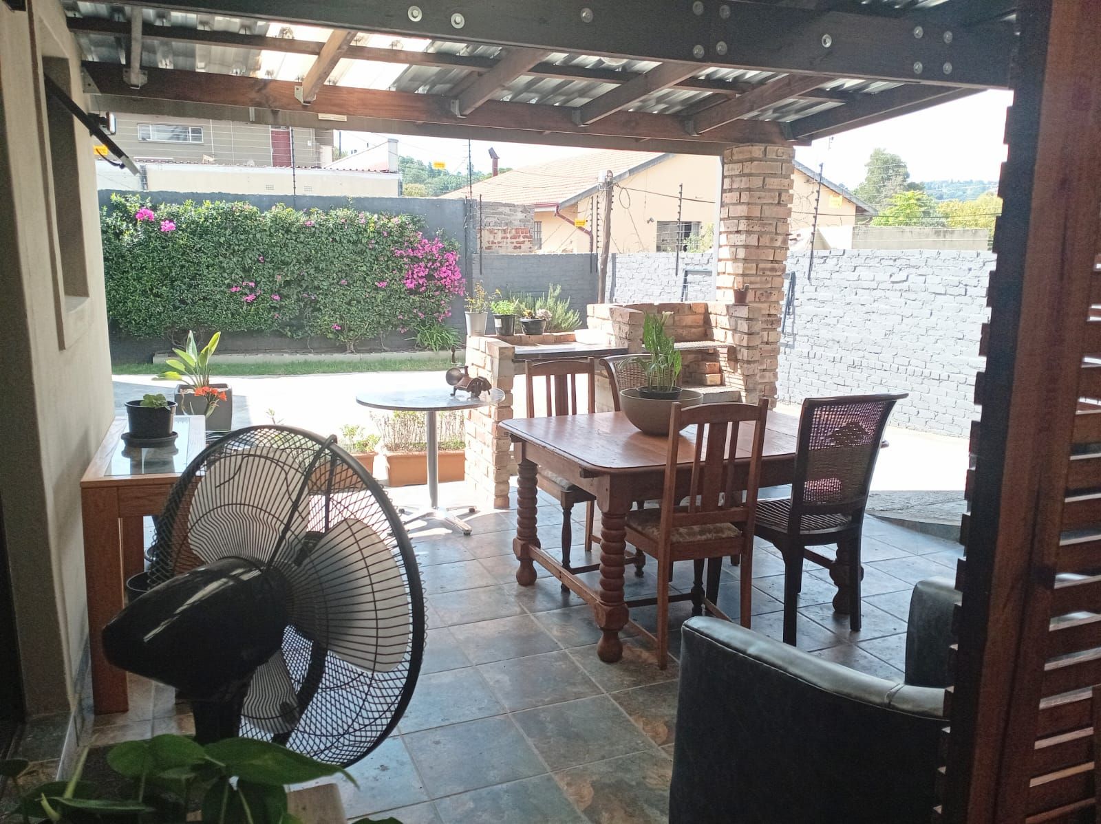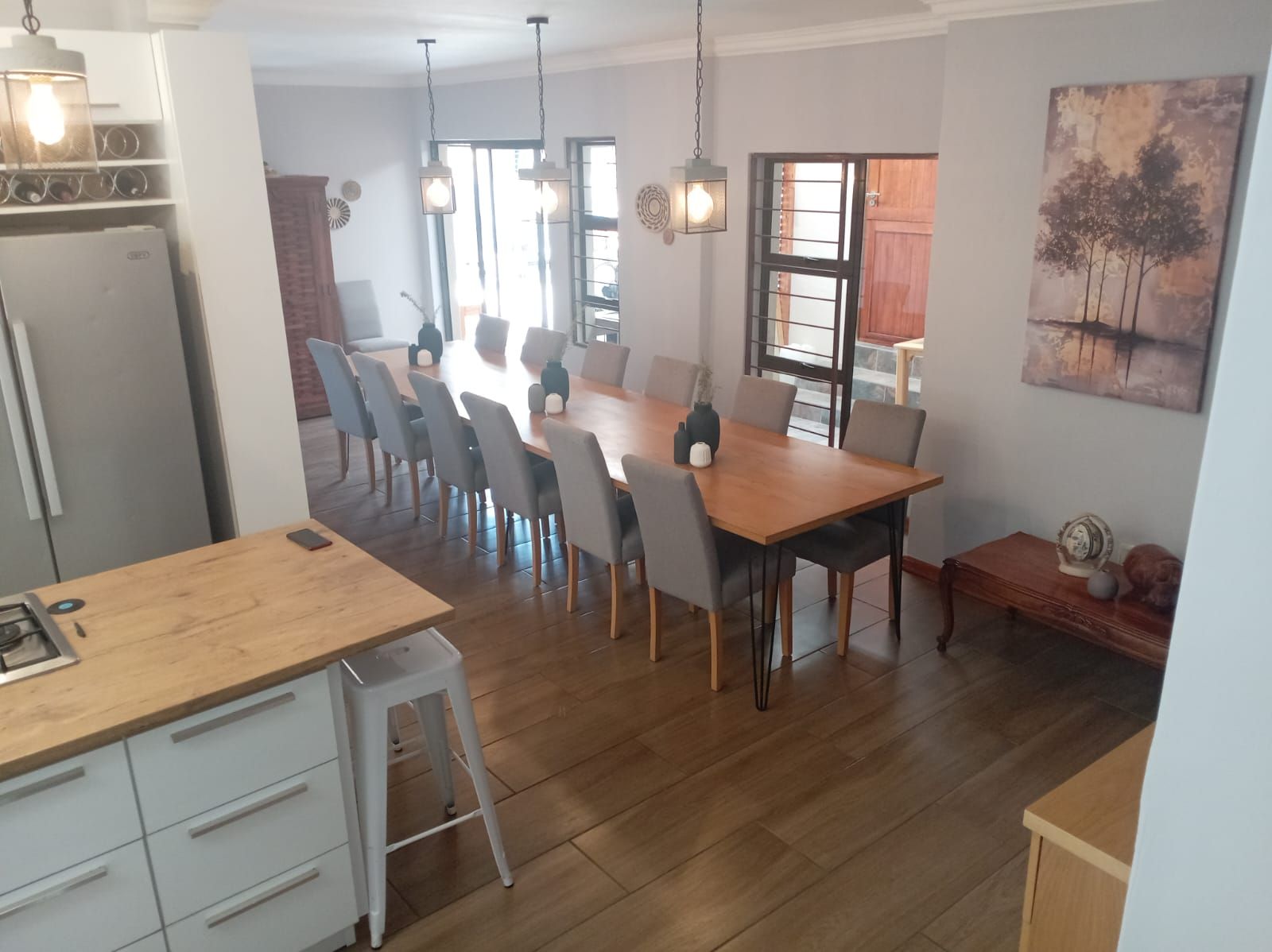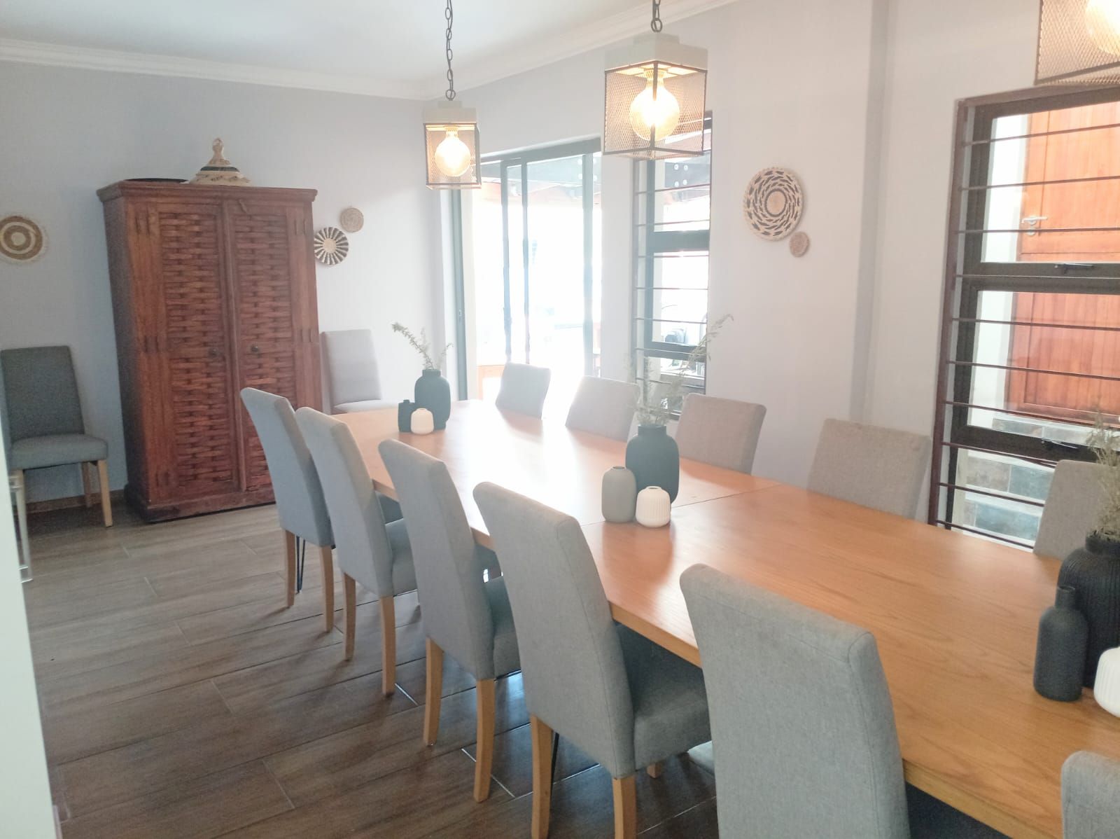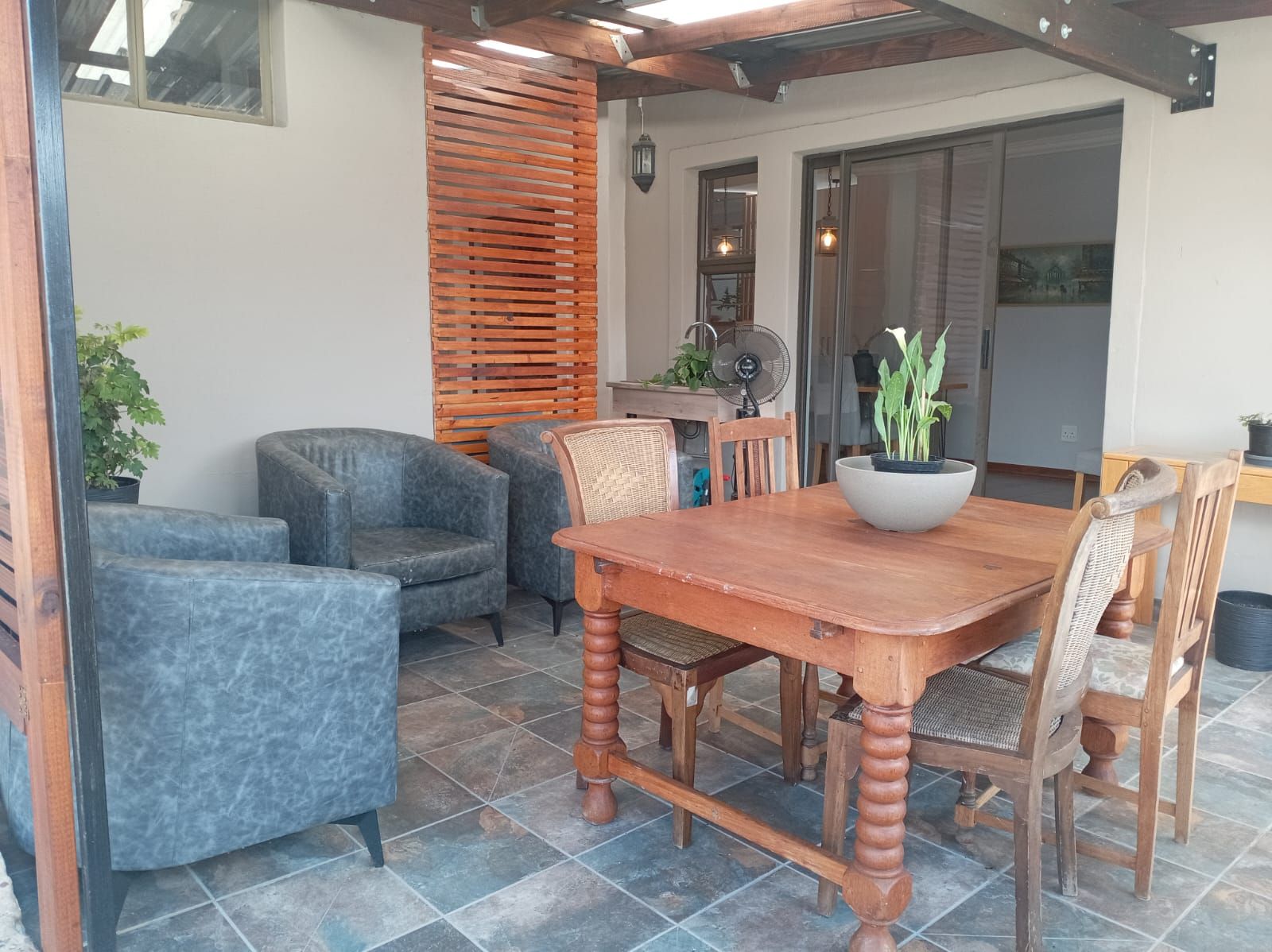 The dining room opens onto an undercover patio with lovely outdoor furniture — perfect for entertaining — and a built-in braai.