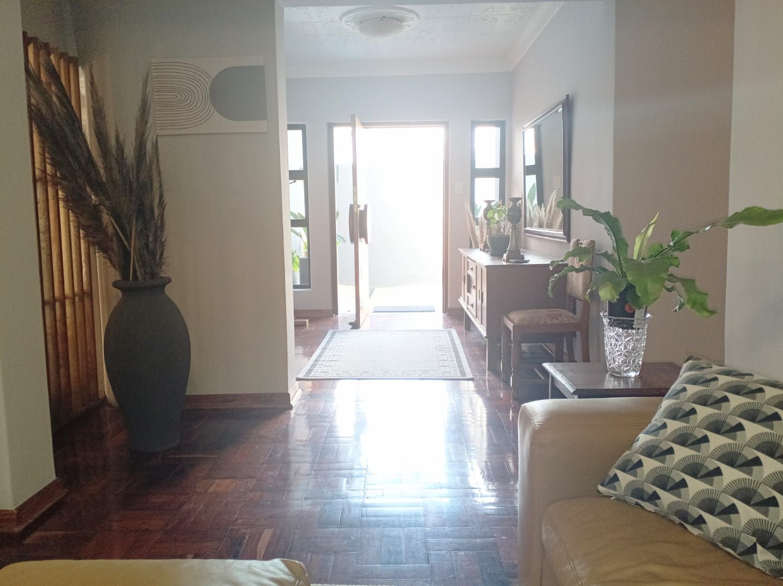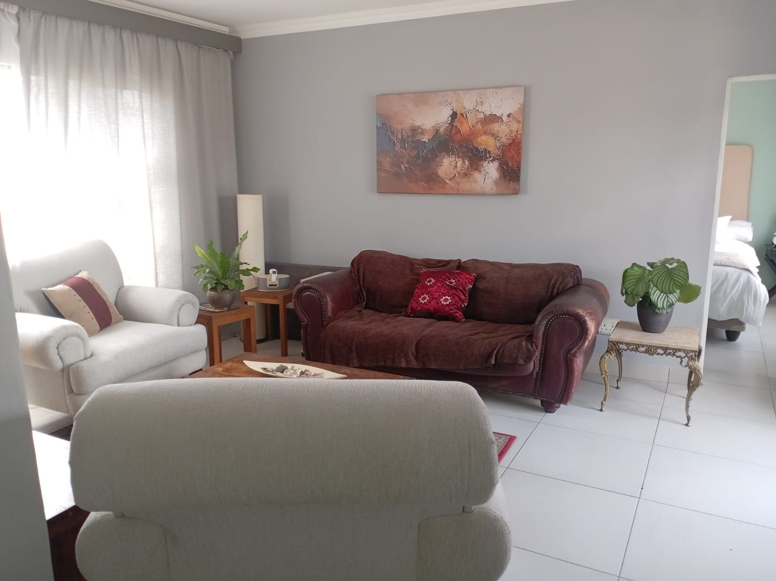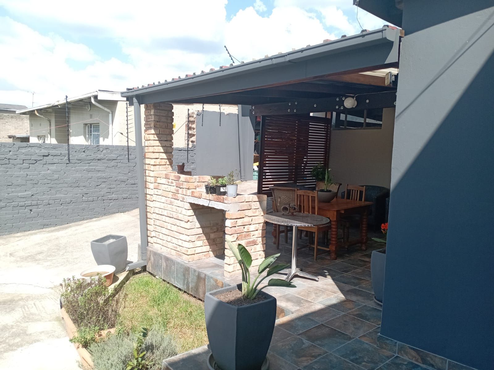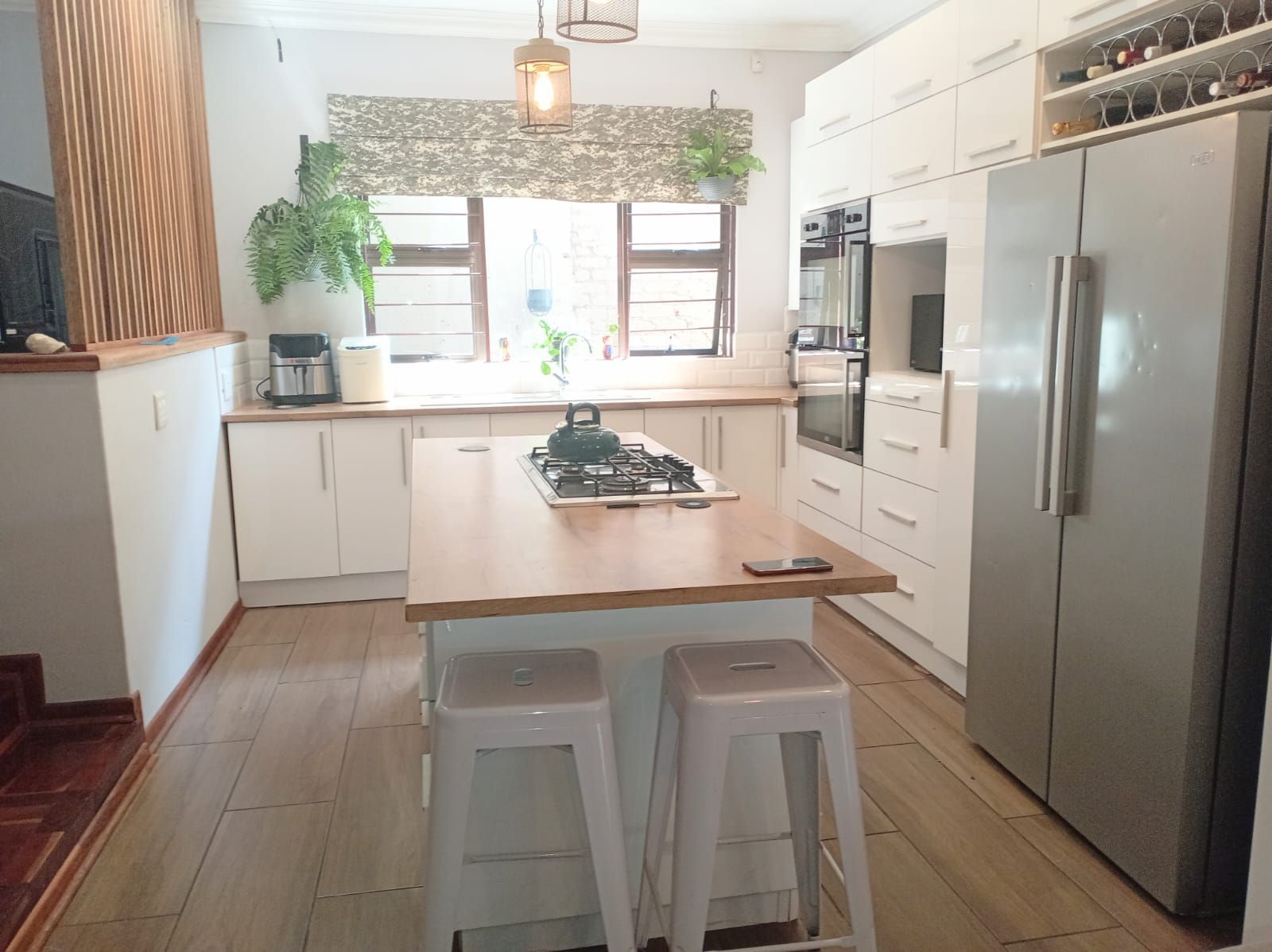 The dining room opens onto an undercover patio with lovely outdoor furniture — perfect for entertaining — and a built-in braai.