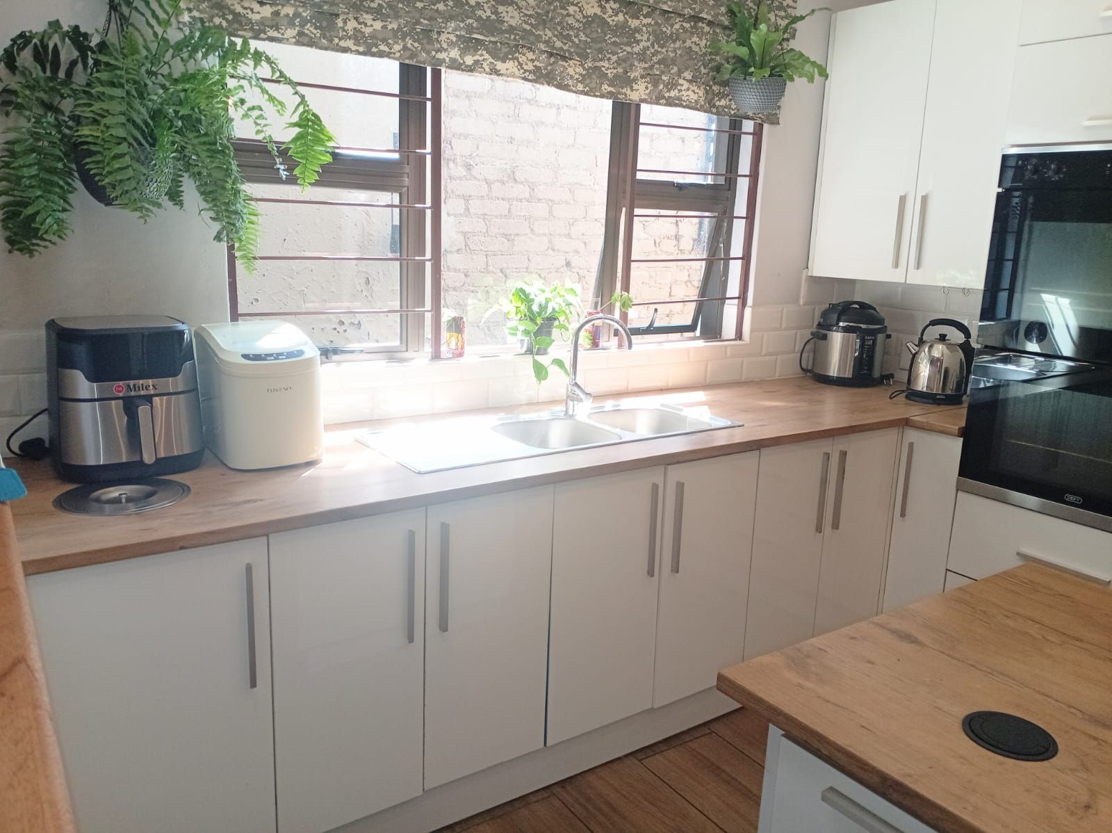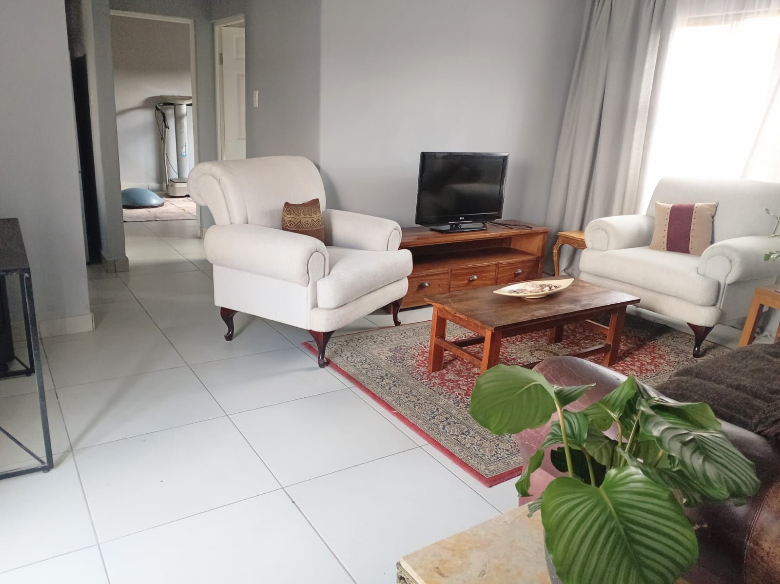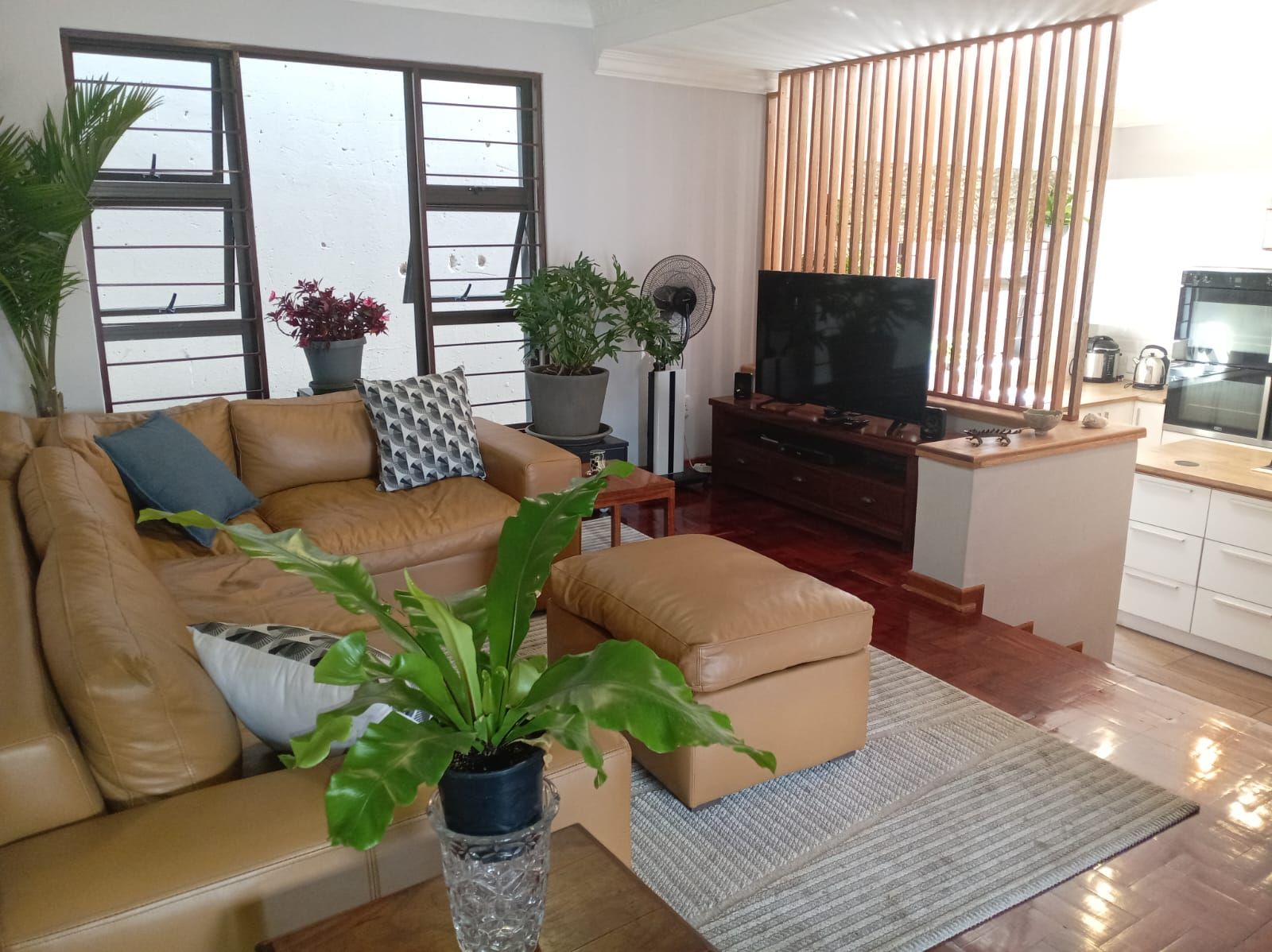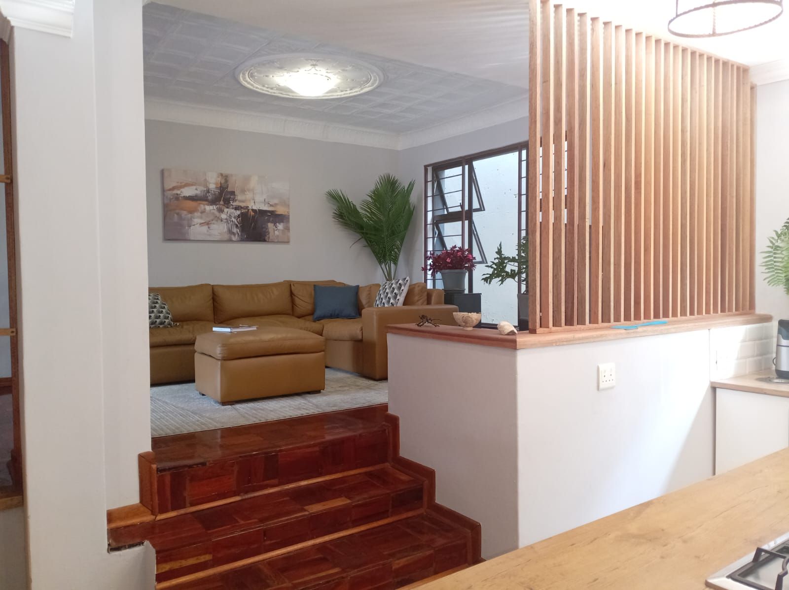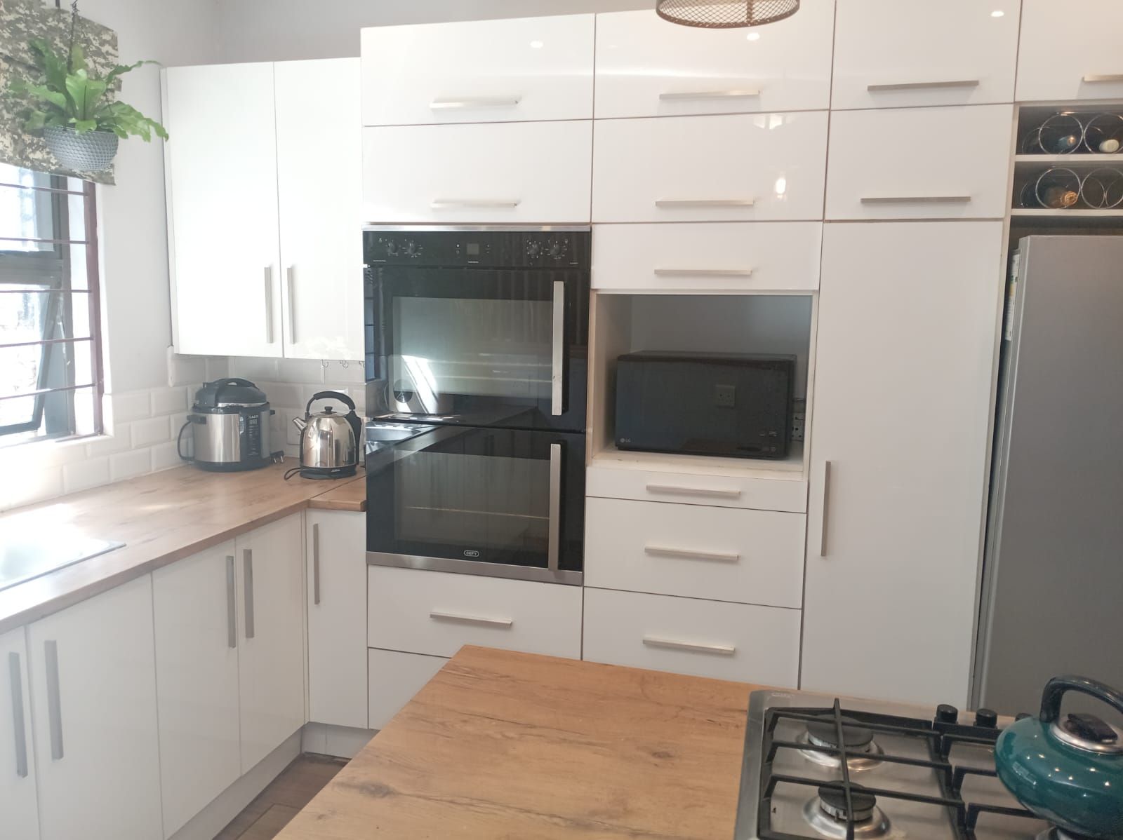 The dining room opens onto an undercover patio with lovely outdoor furniture — perfect for entertaining — and a built-in braai.