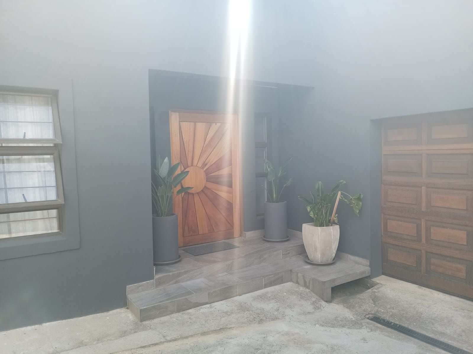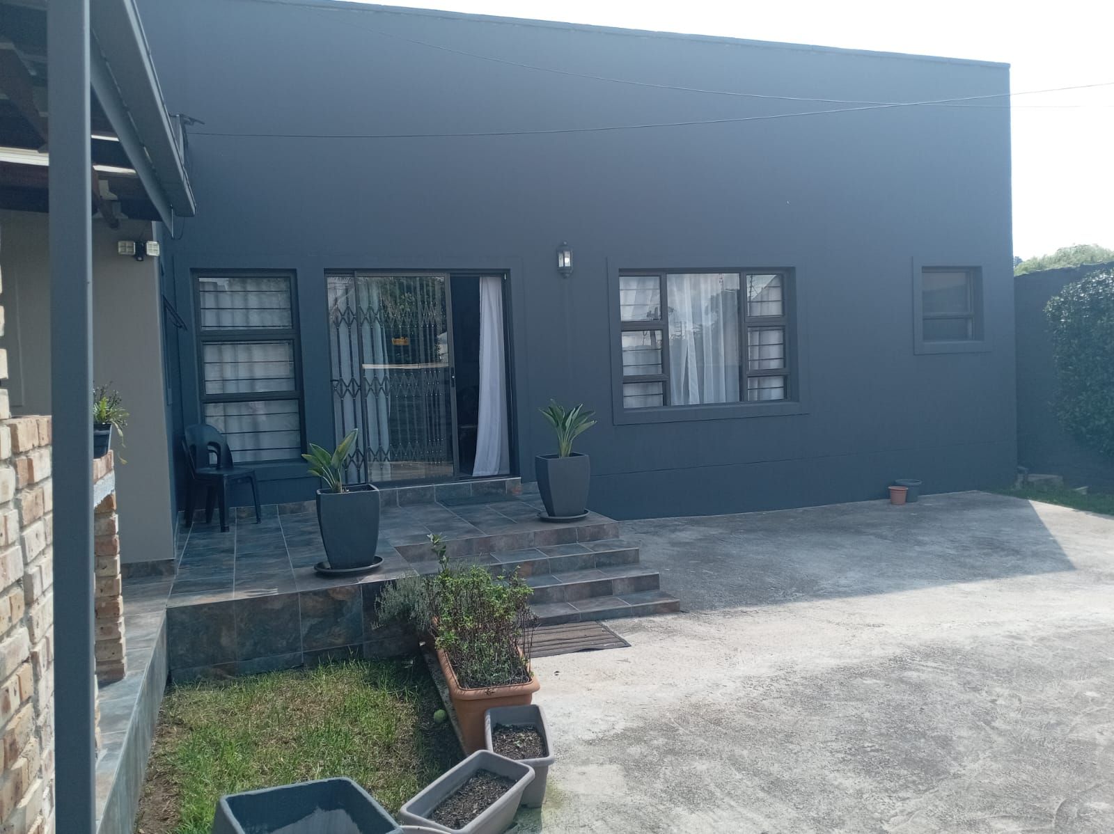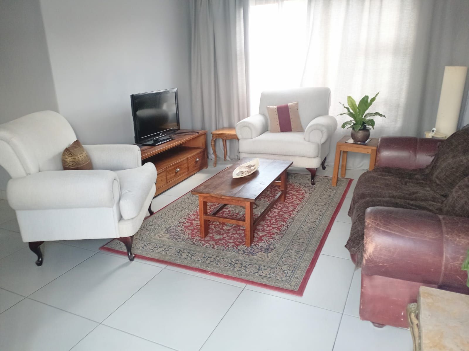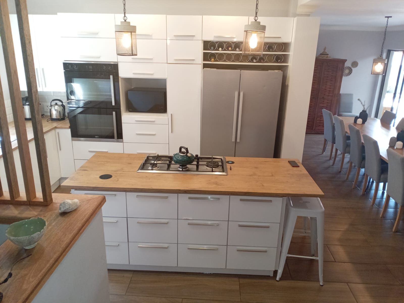 The dining room opens onto an undercover patio with lovely outdoor furniture — perfect for entertaining — and a built-in braai.