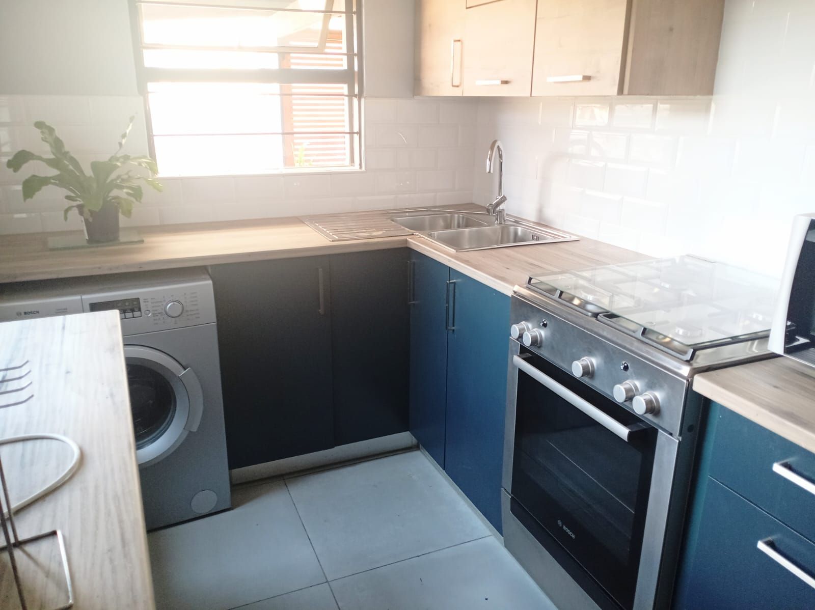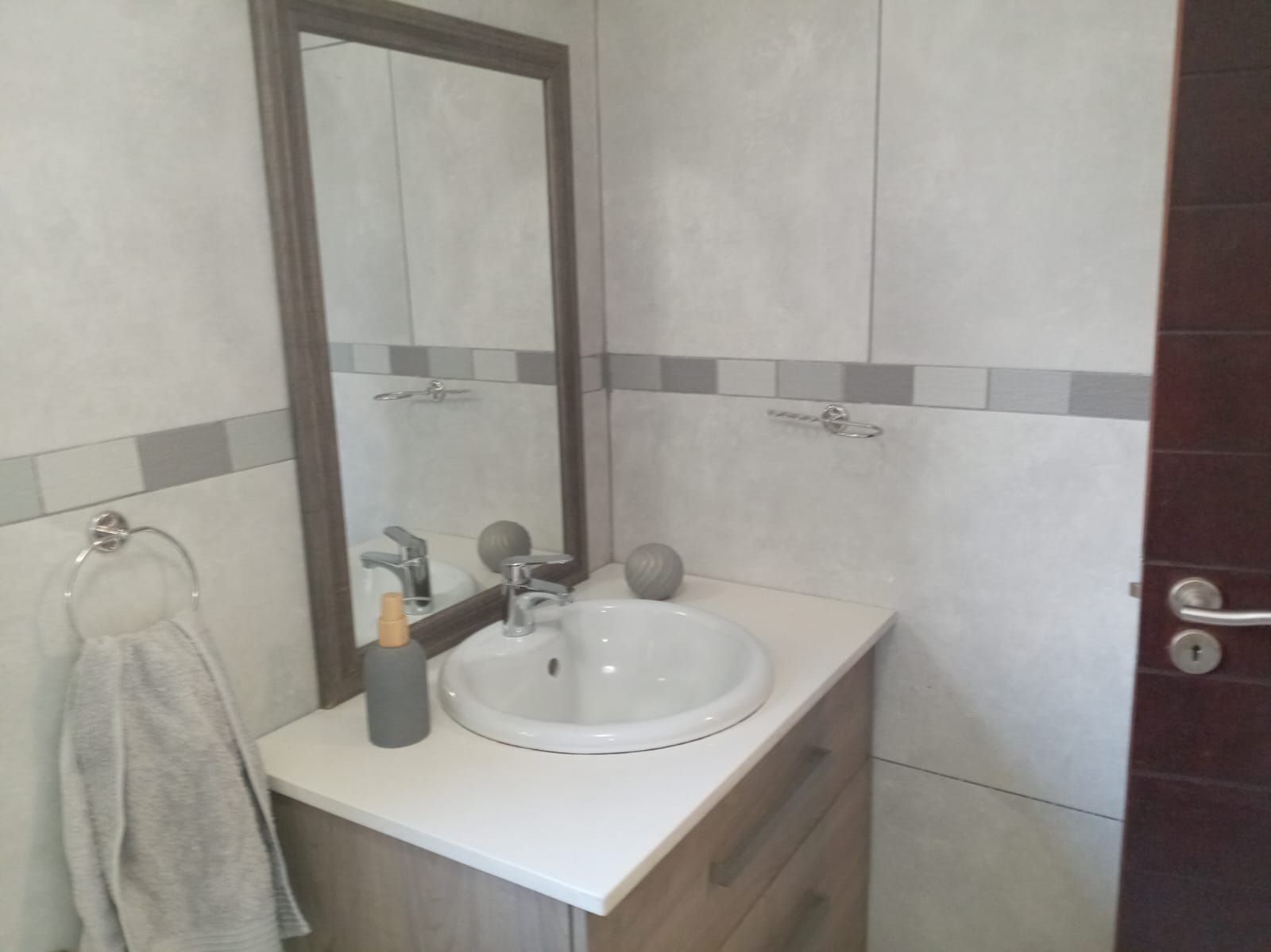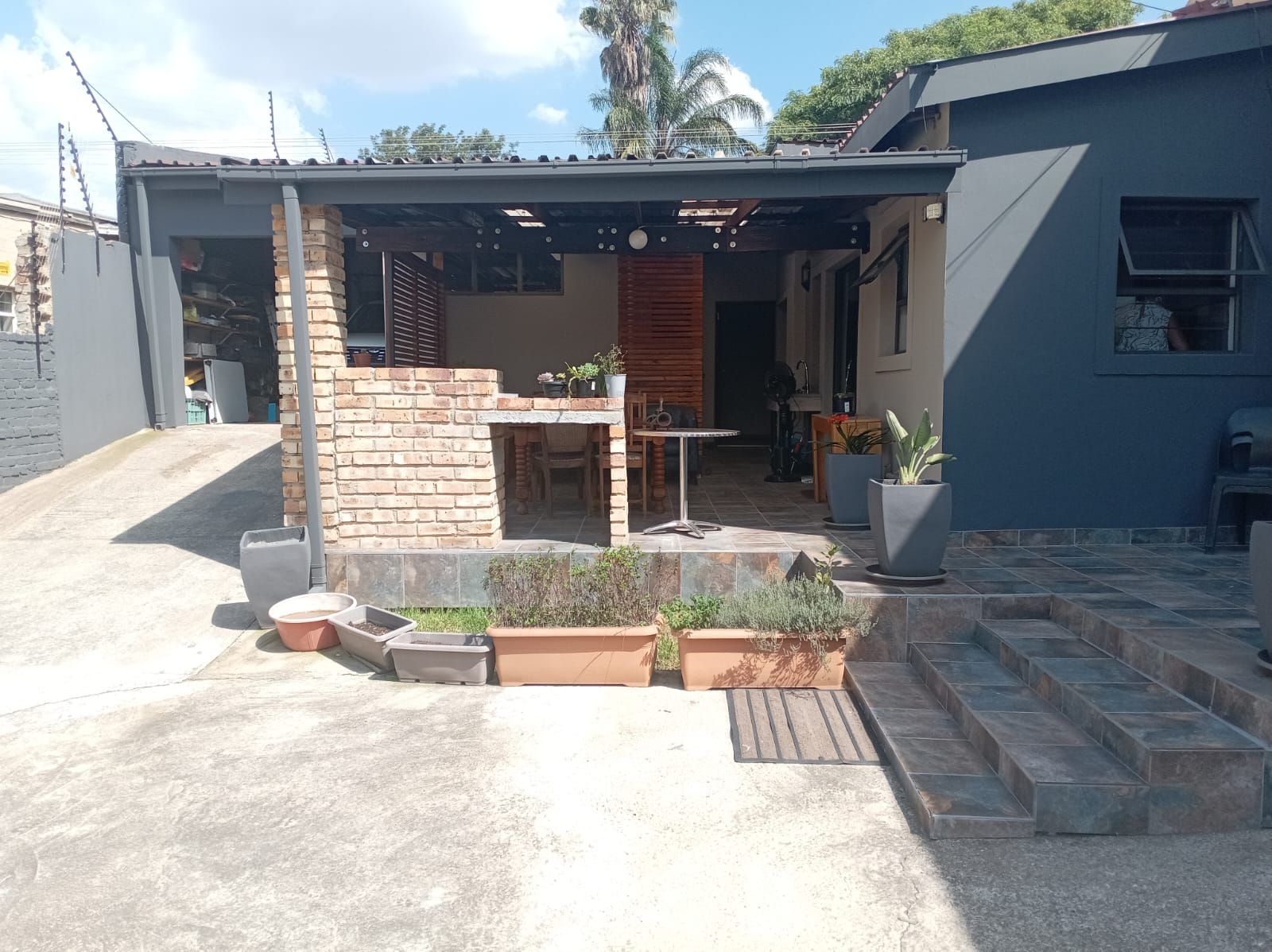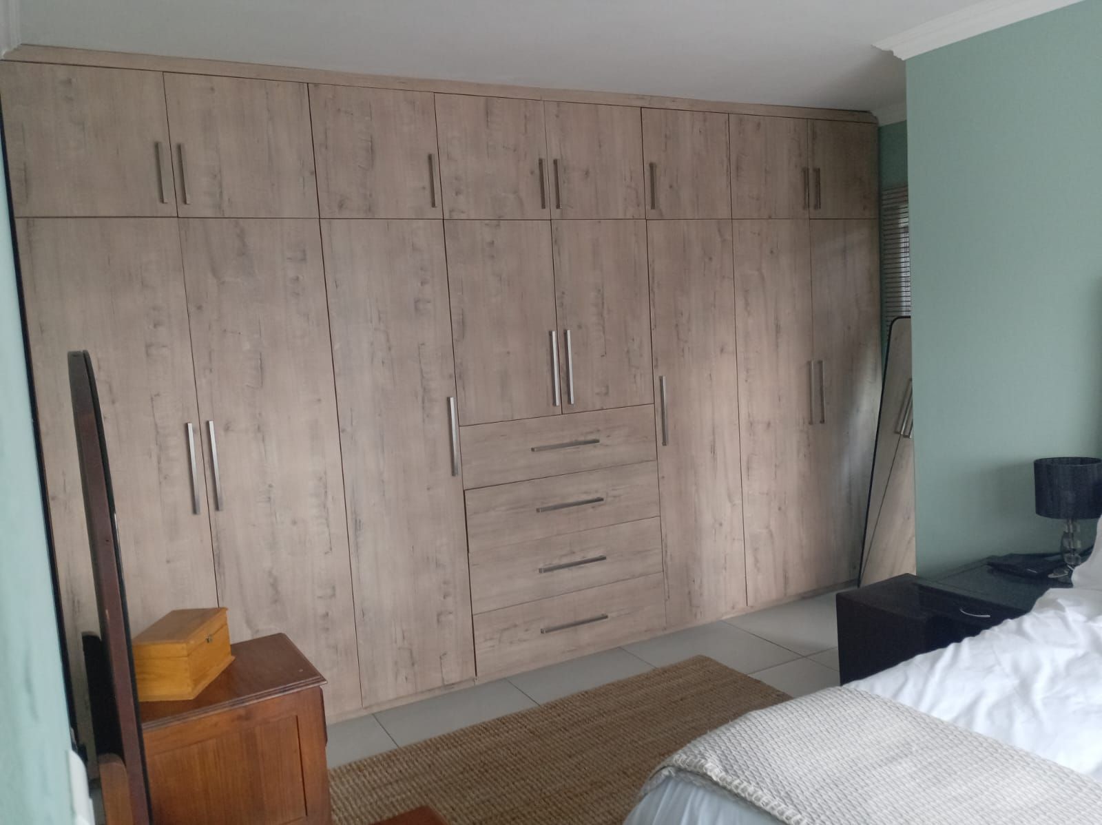 The dining room opens onto an undercover patio with lovely outdoor furniture — perfect for entertaining — and a built-in braai.