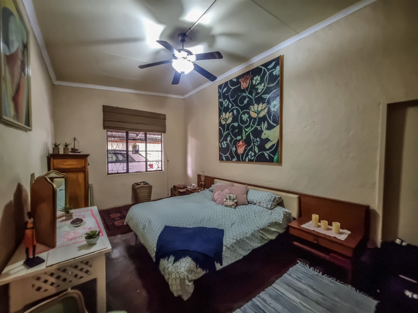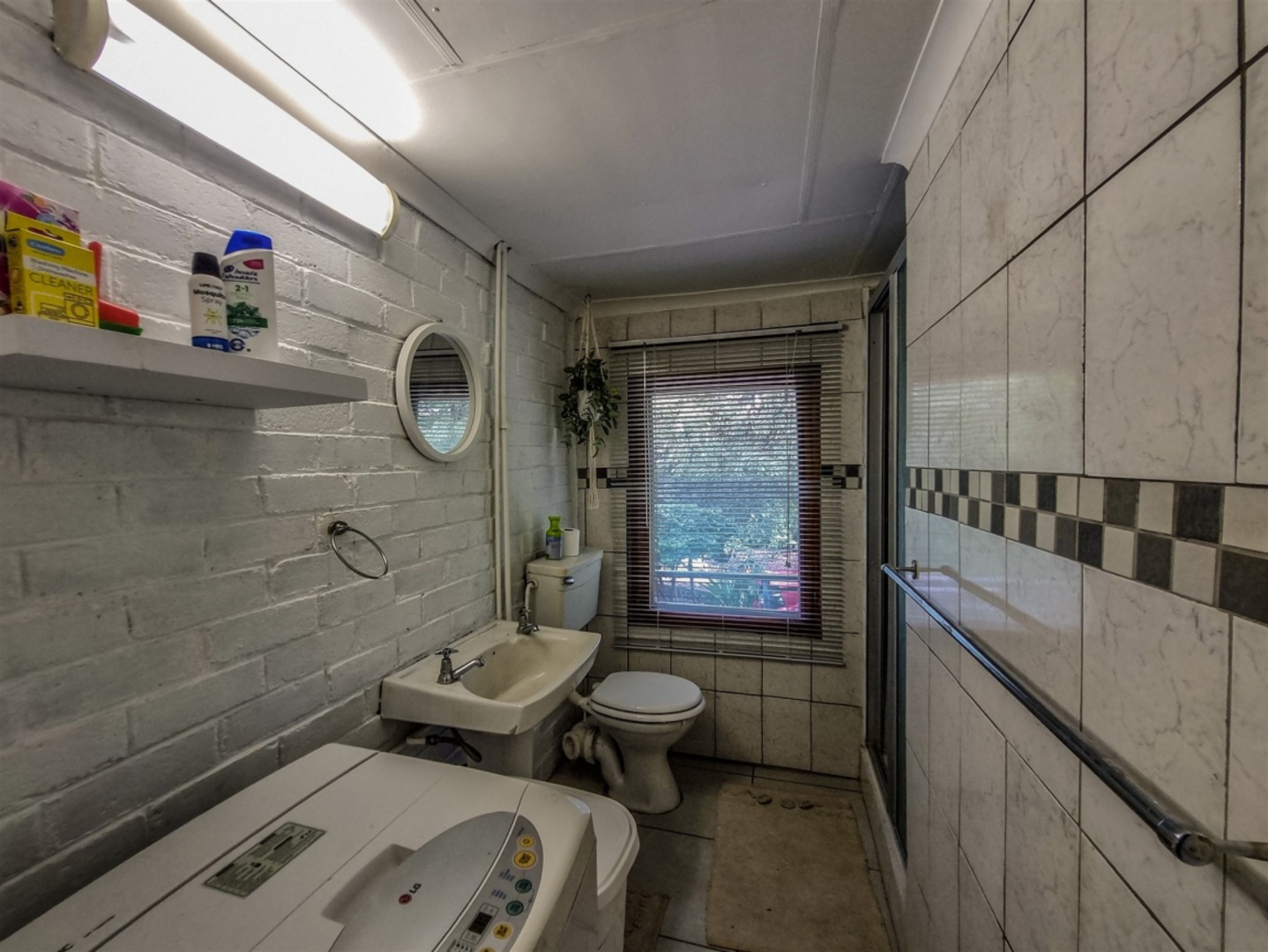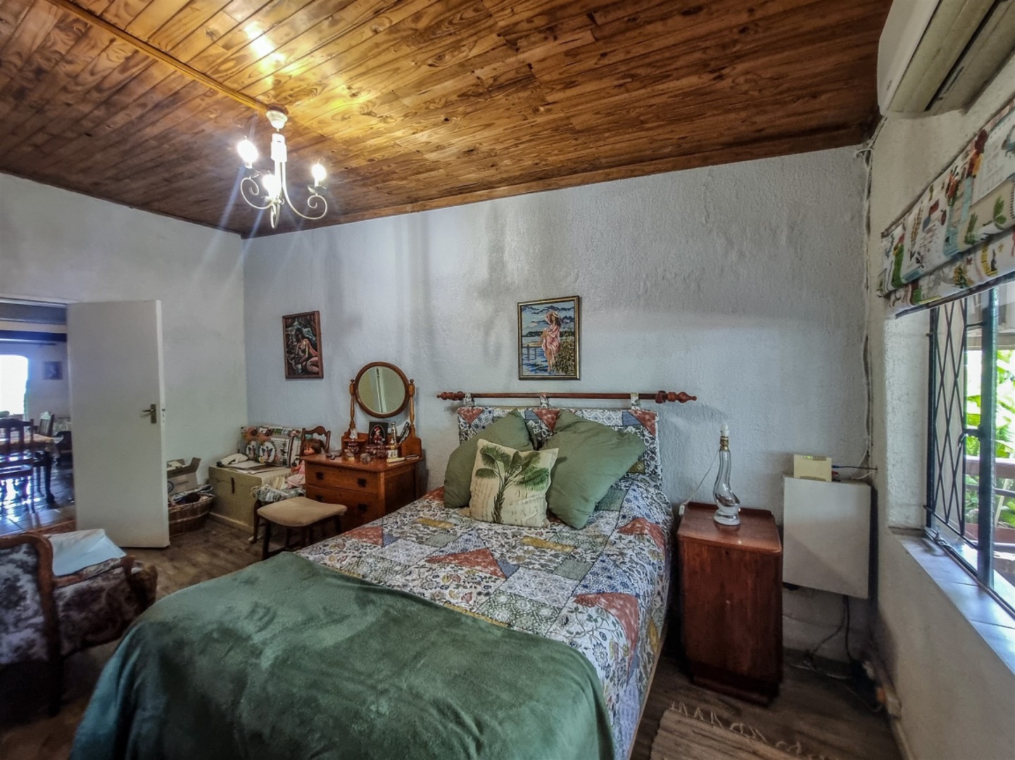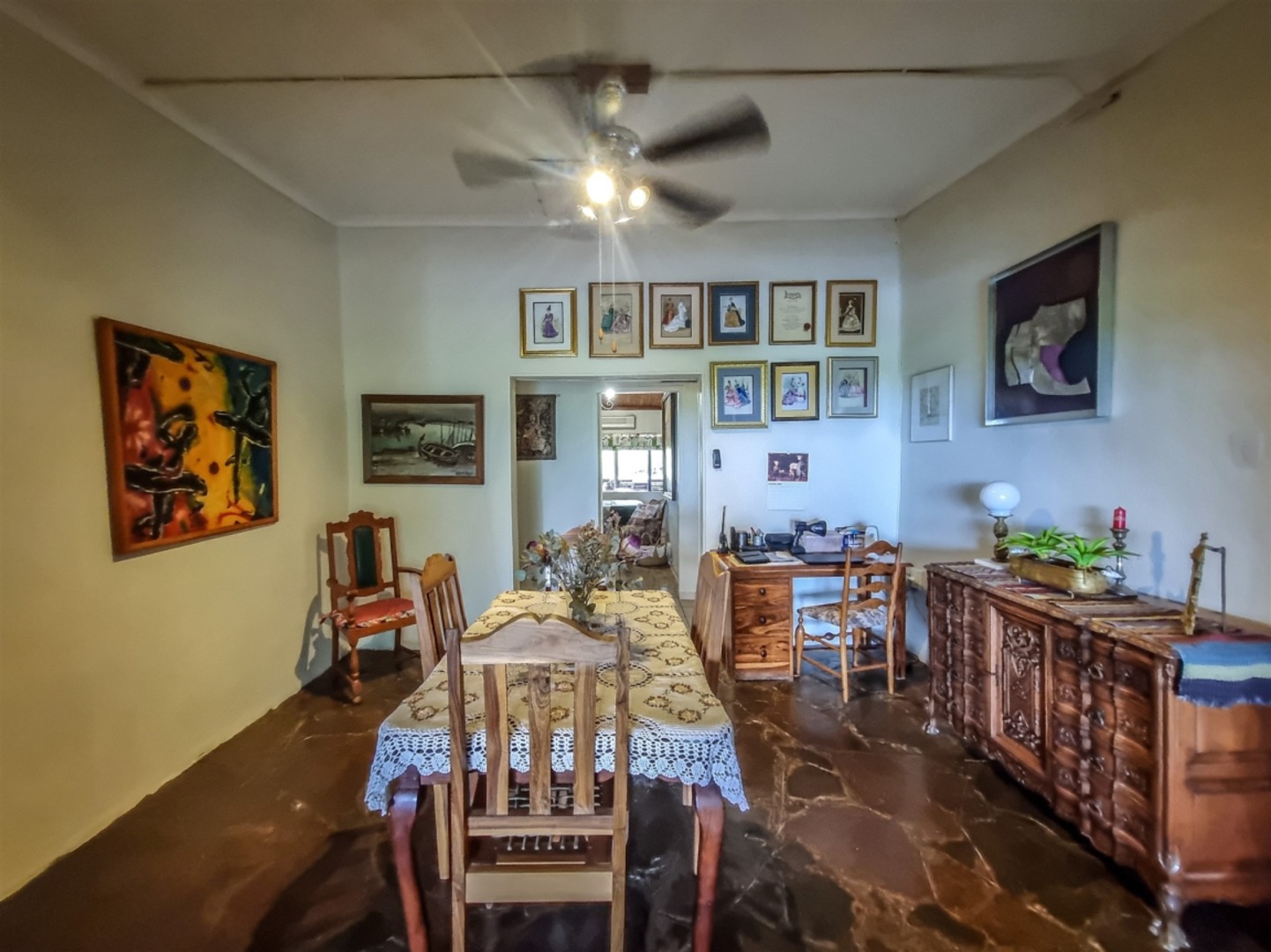 Outside there is a large covered patio area with built in braai, pool and fenced garden. A large entertainment/ games room with boma and toilets is found on one side of the garden, while the cottage is found on the other side of the patio area.