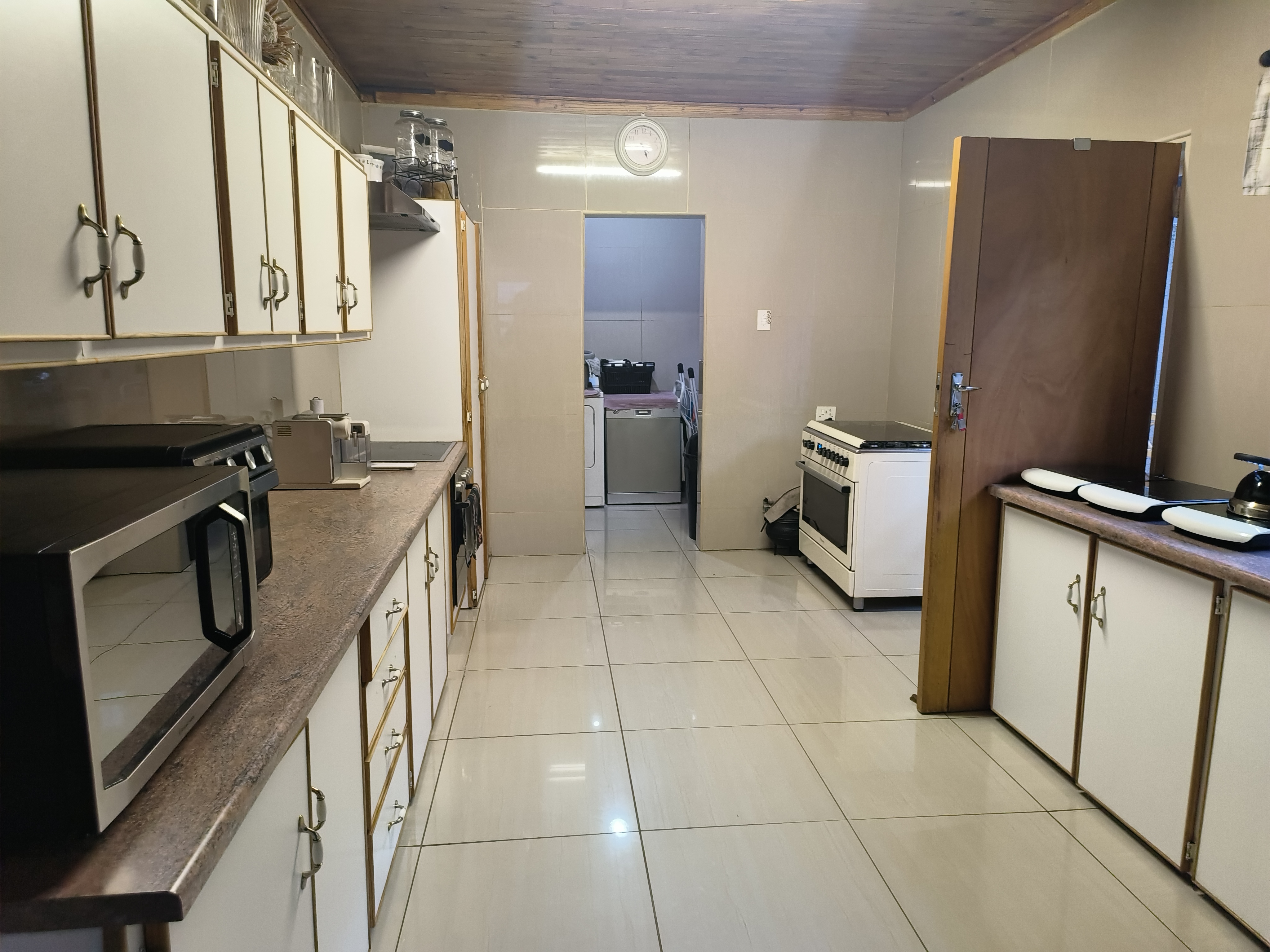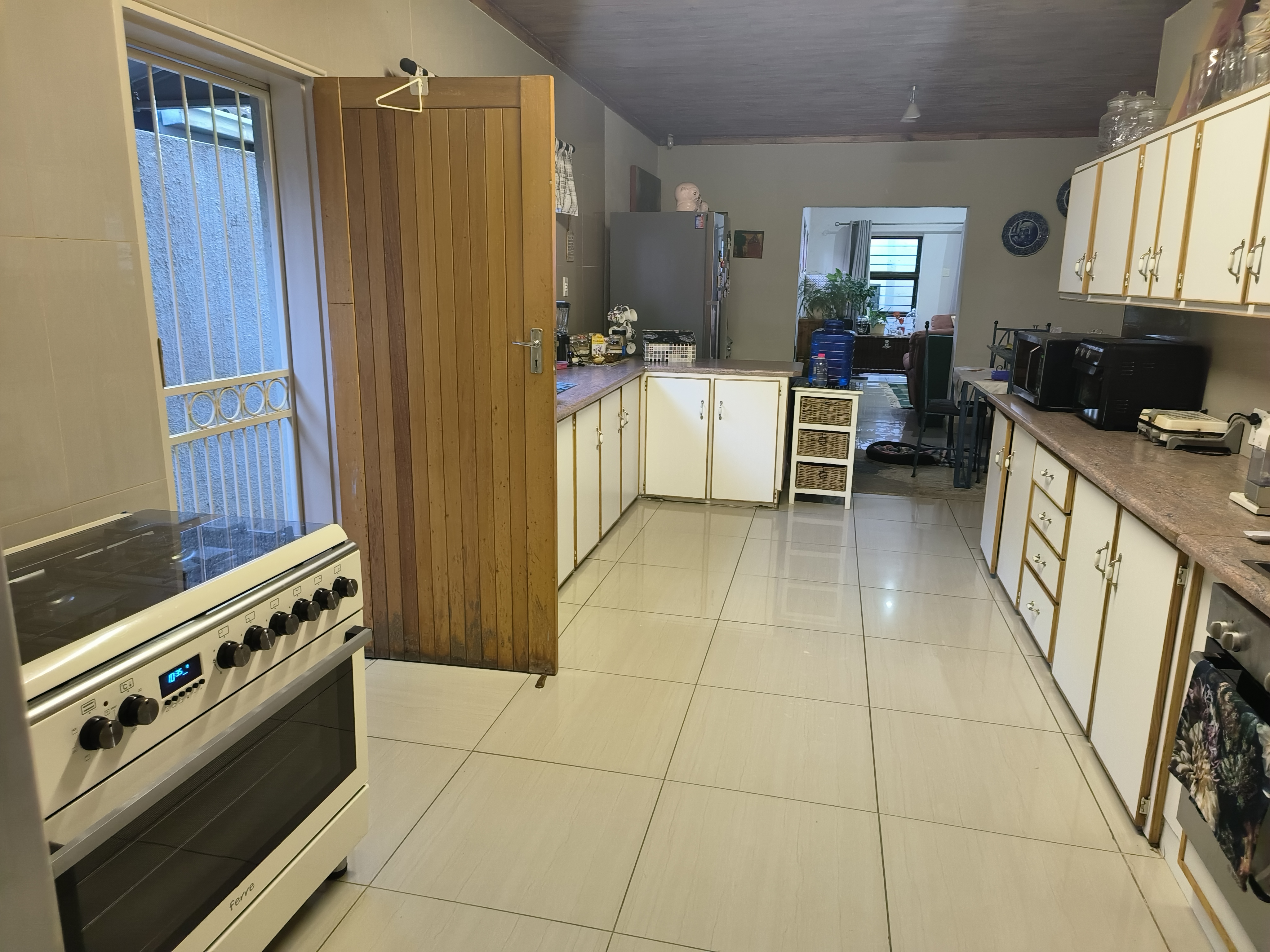 A large, fully-equipped kitchen with ample cupboard space, perfect for culinary enthusiasts.