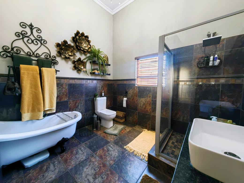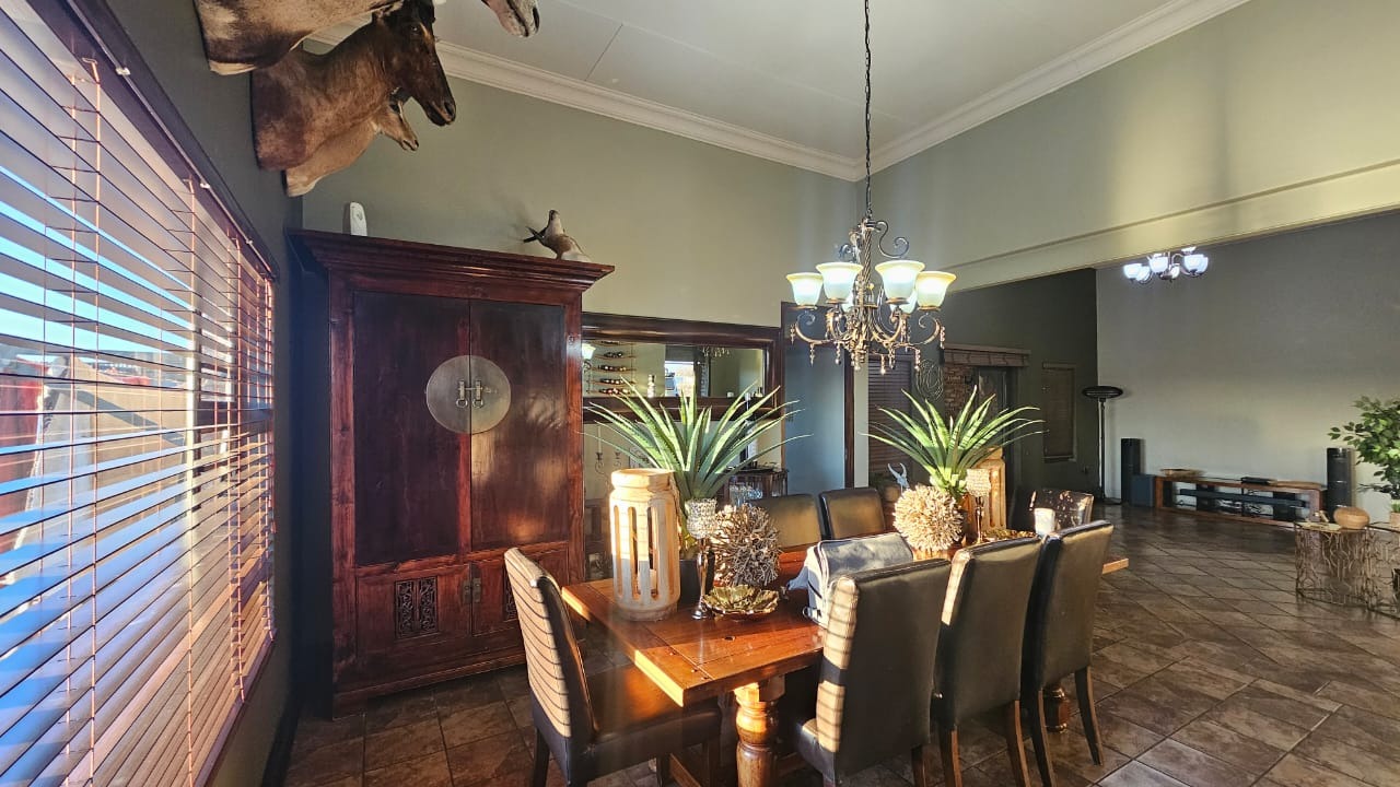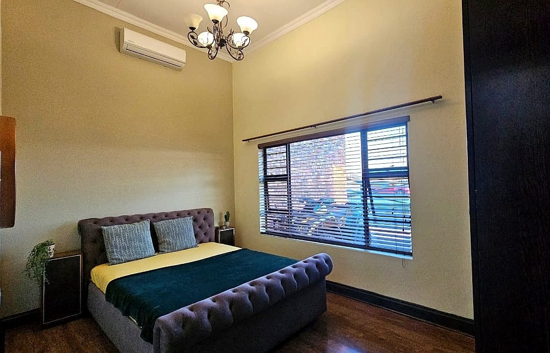 Nestled within a sprawling 7,237 square meter stand, this immaculate home is a true sanctuary of elegance and functionality. Designed with luxury and convenience in mind, the property boasts three spacious bedrooms, each with its own bathroom, ensuring ultimate privacy and comfort. The heart of the home is a light-filled living room, perfect for relaxing or entertaining, which flows seamlessly into a formal dining area for family gatherings and special occasions.