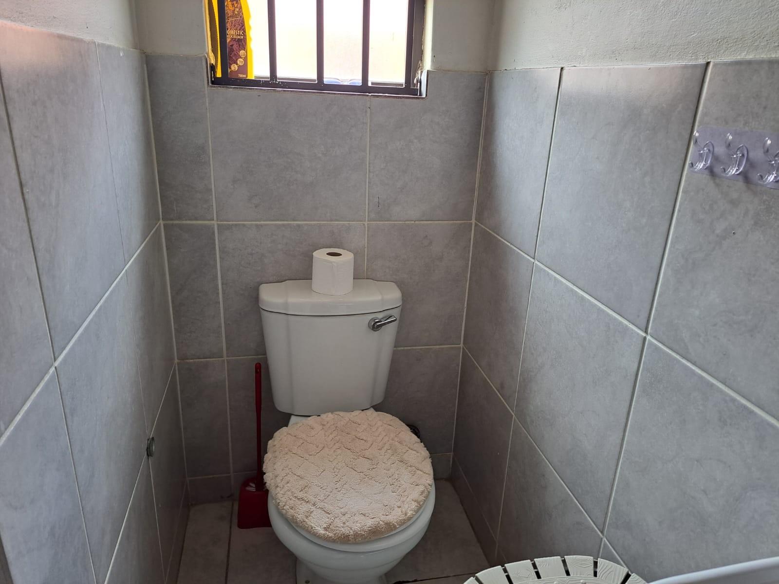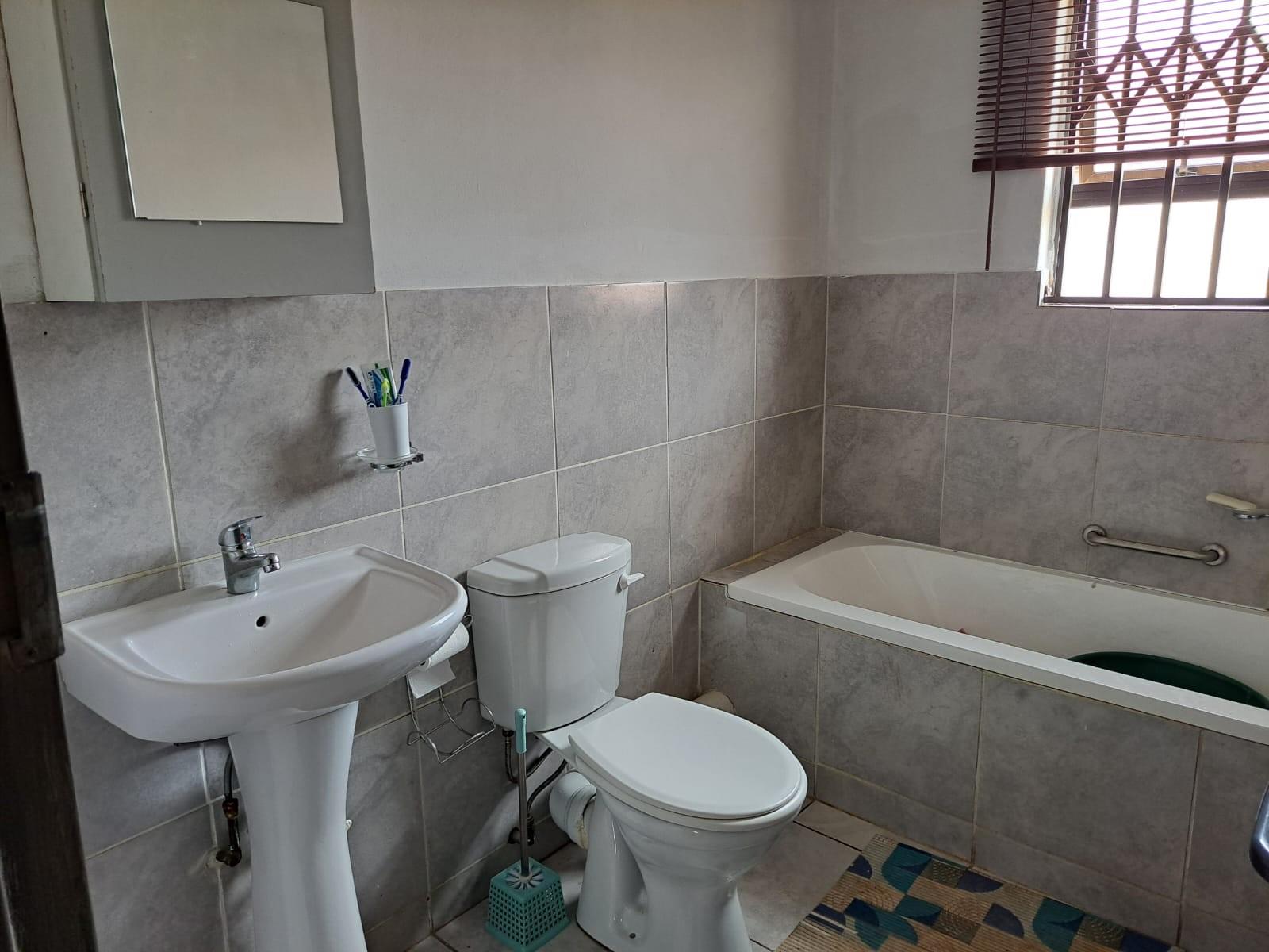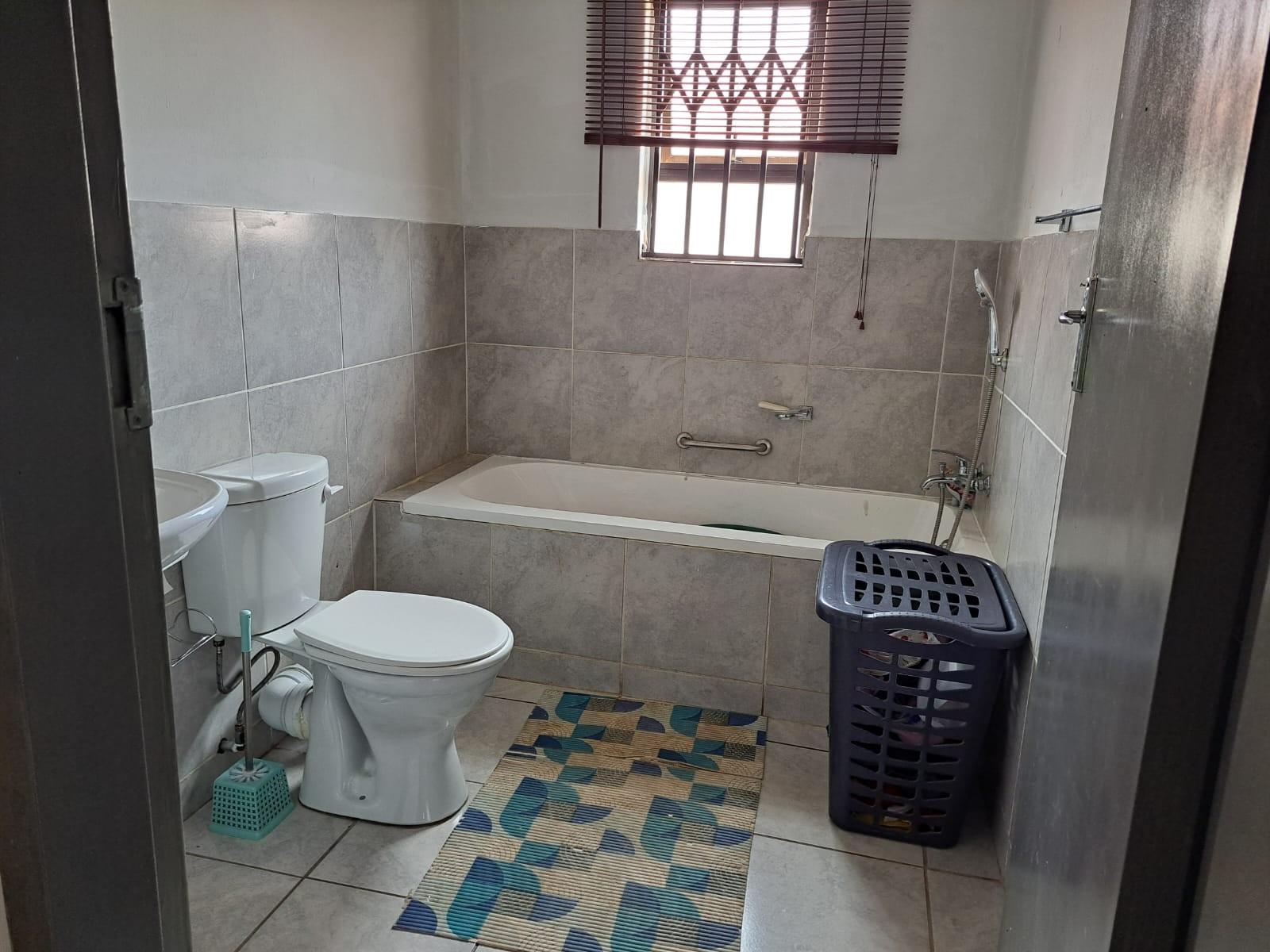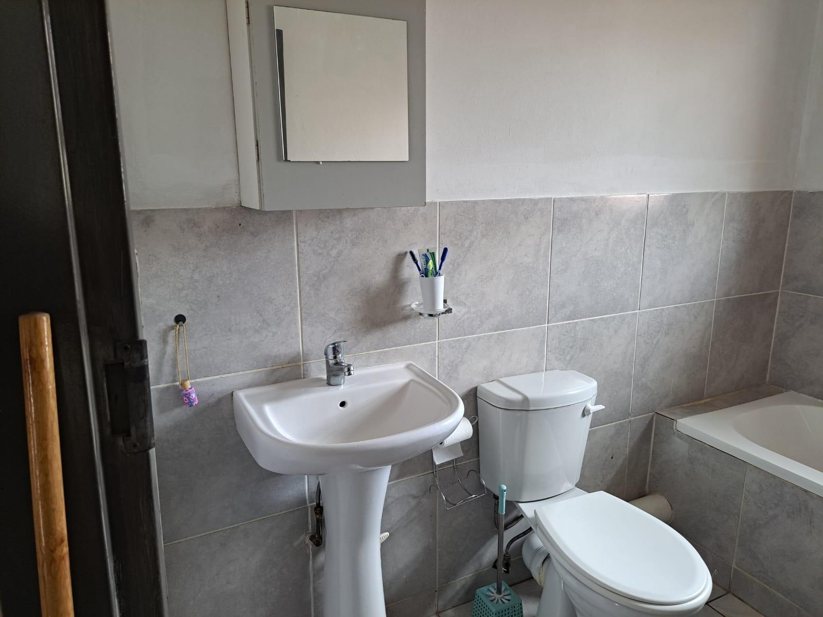 The apartment features three well-sized bedrooms, each with built-in cupboards, and two bathrooms. The main bedroom has its own en-suite with a shower, basin, and toilet, while the second bathroom includes a bath, basin, and toilet — ideal for family living. The entire unit is tiled throughout, making cleaning and maintenance easy.