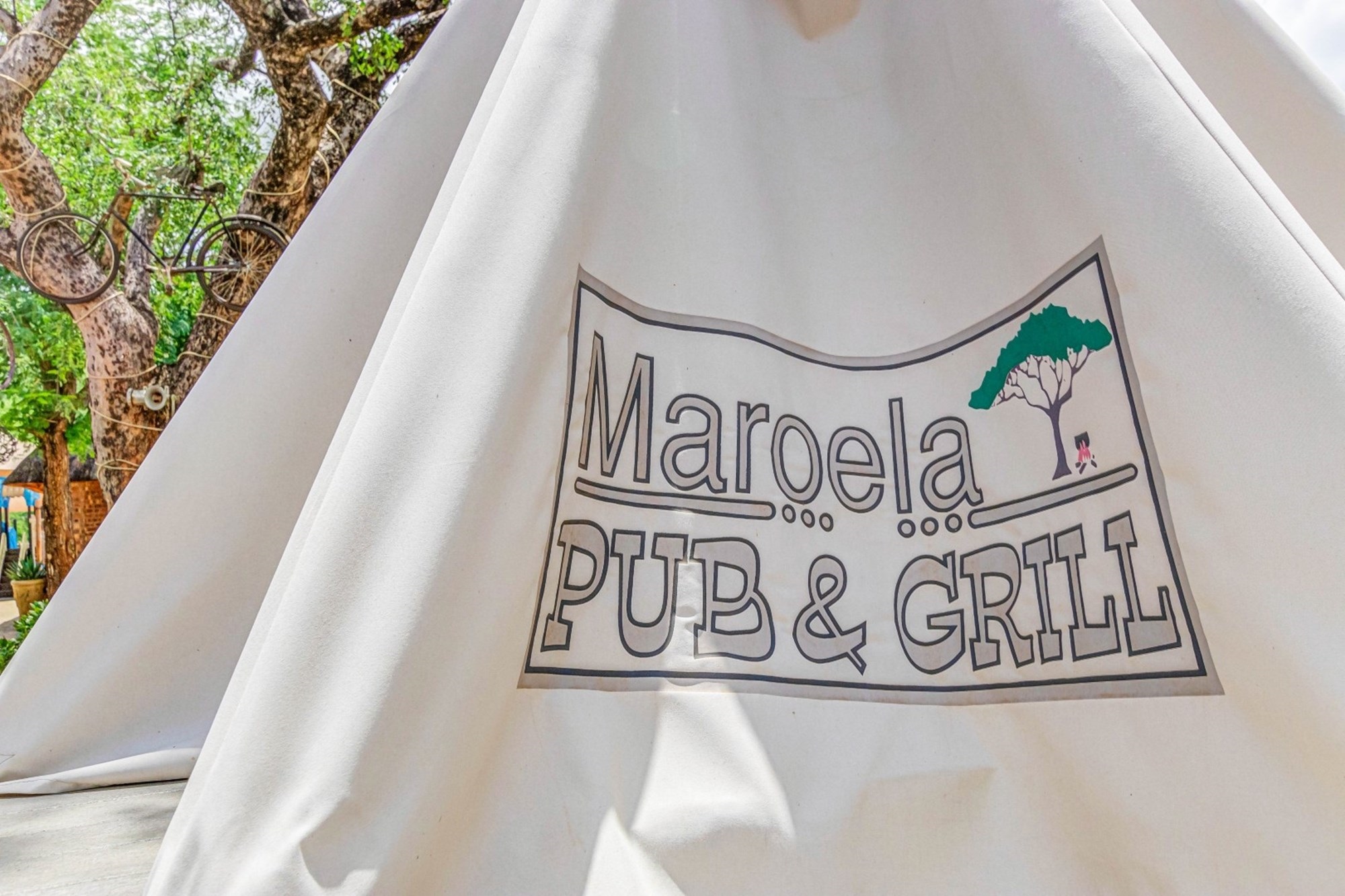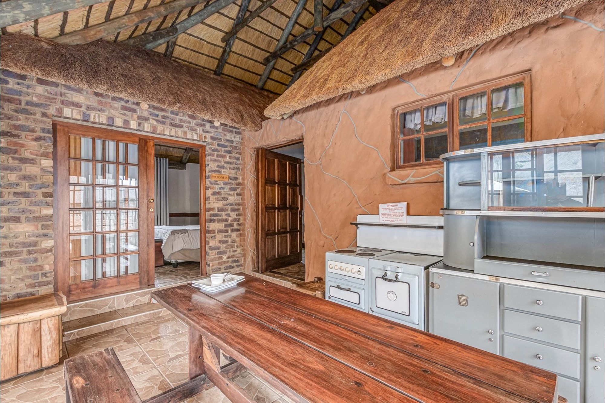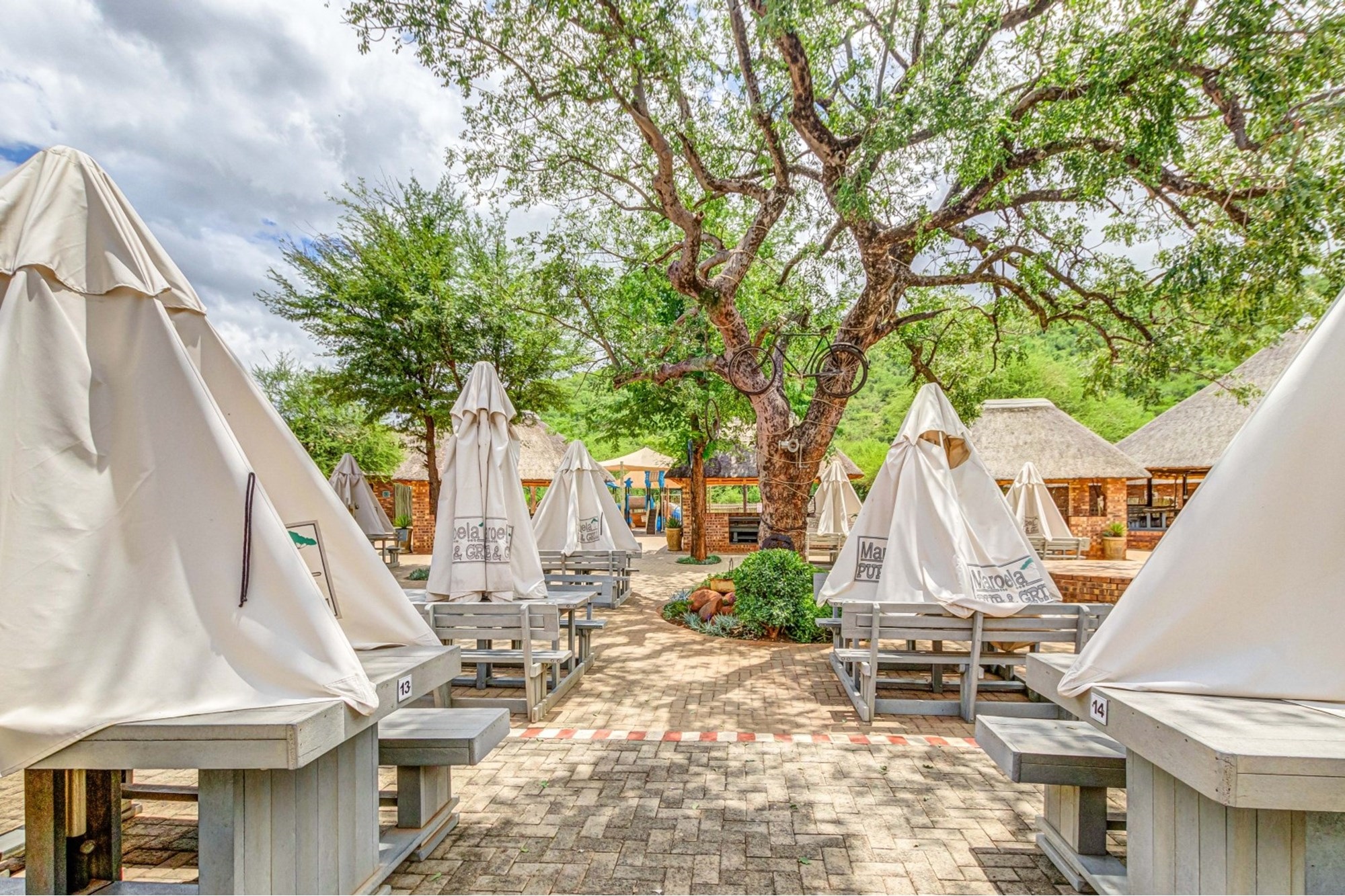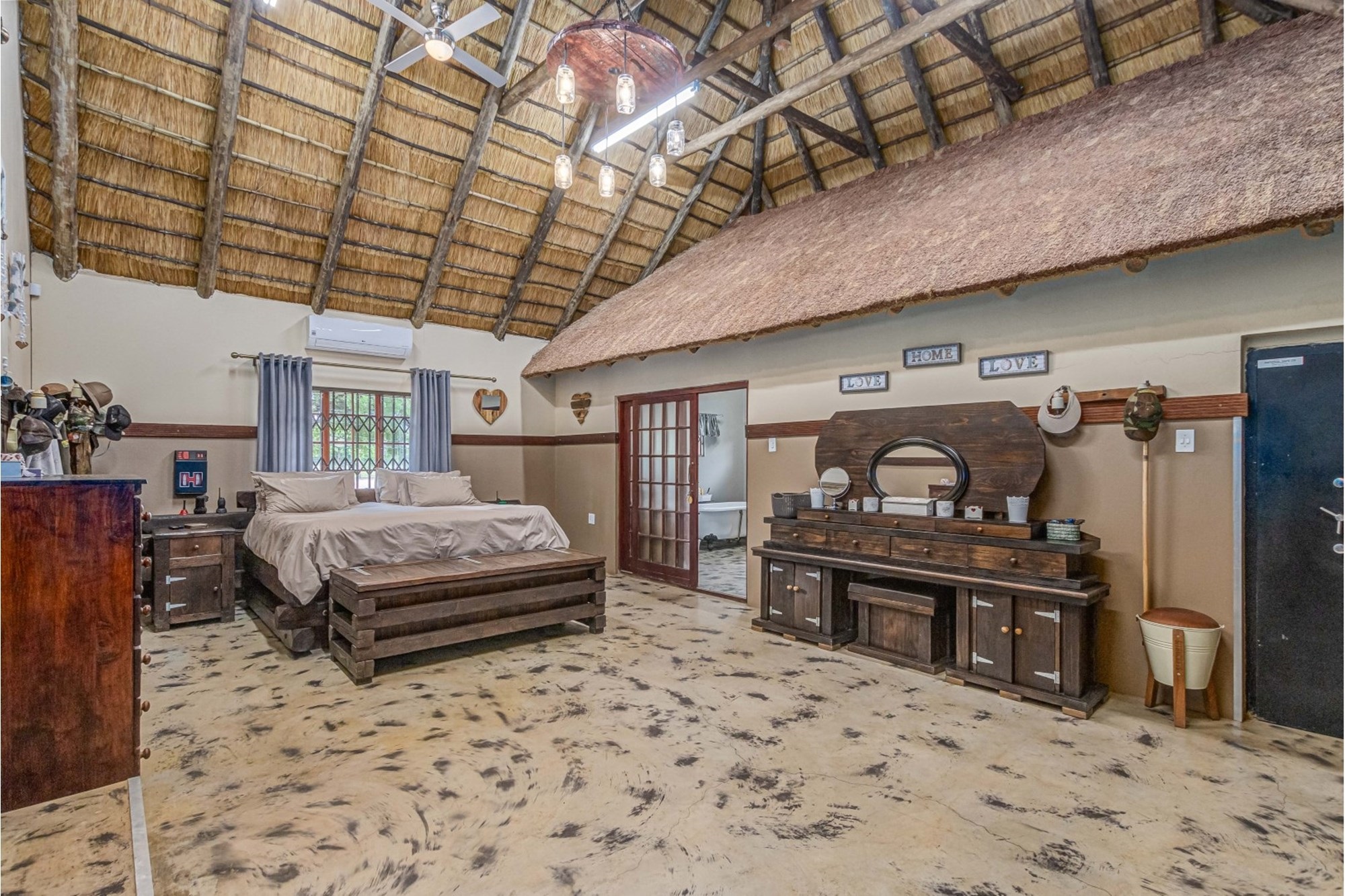 Canvas & Wood Hybrid Structure with Thatch Roof – Authentic bushveld feel.