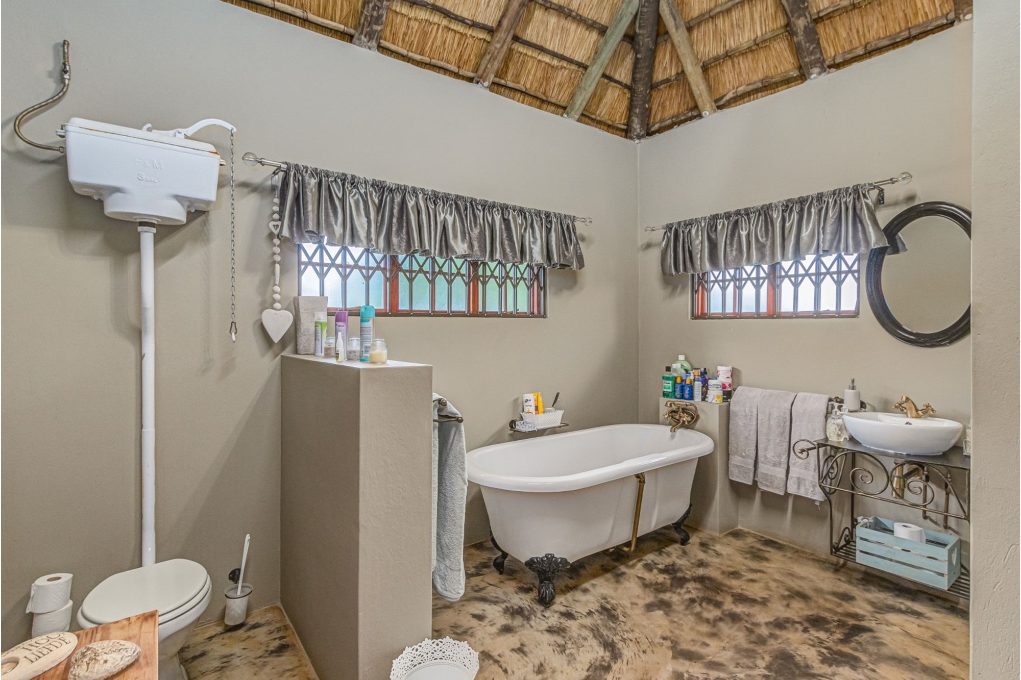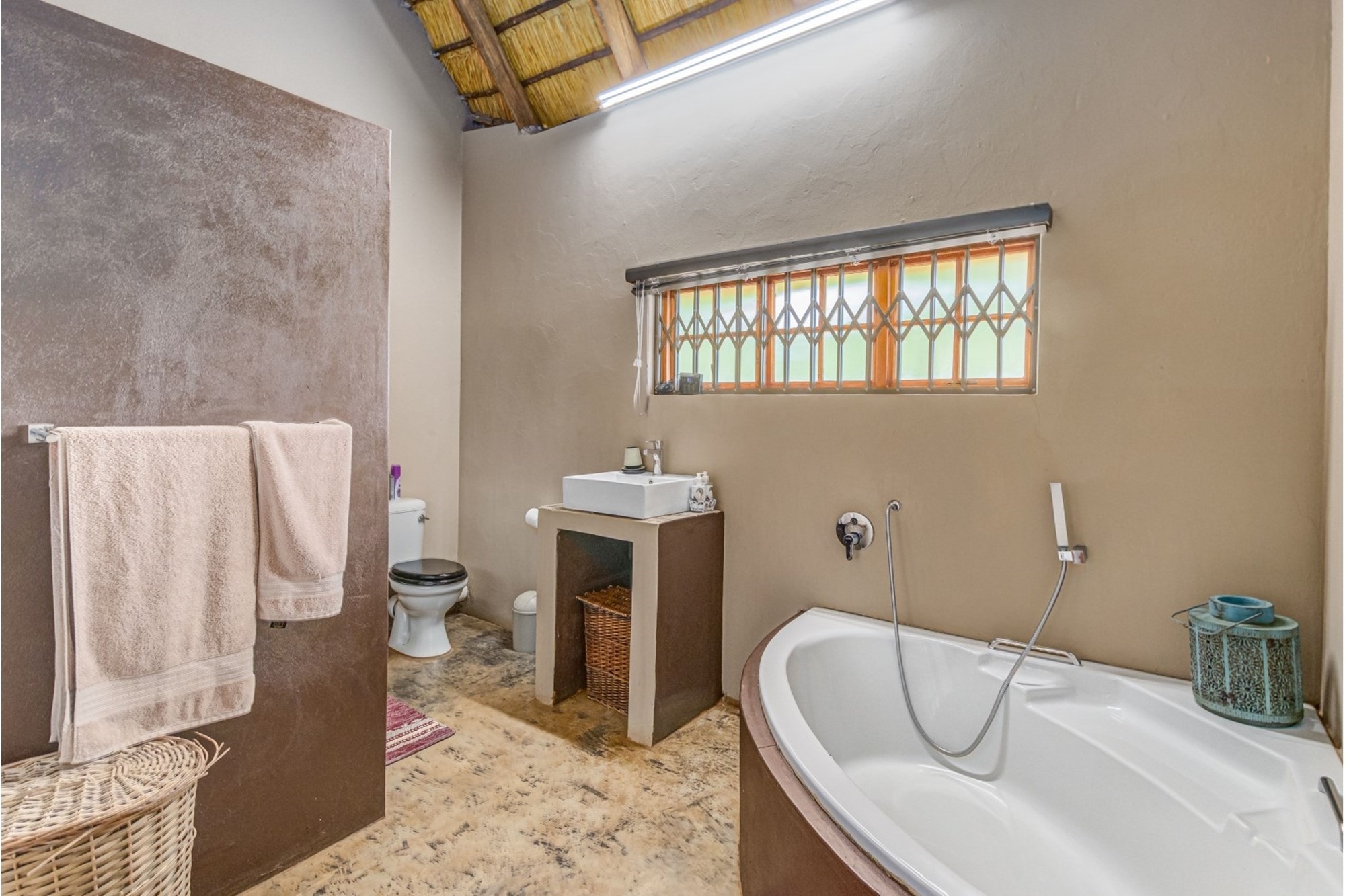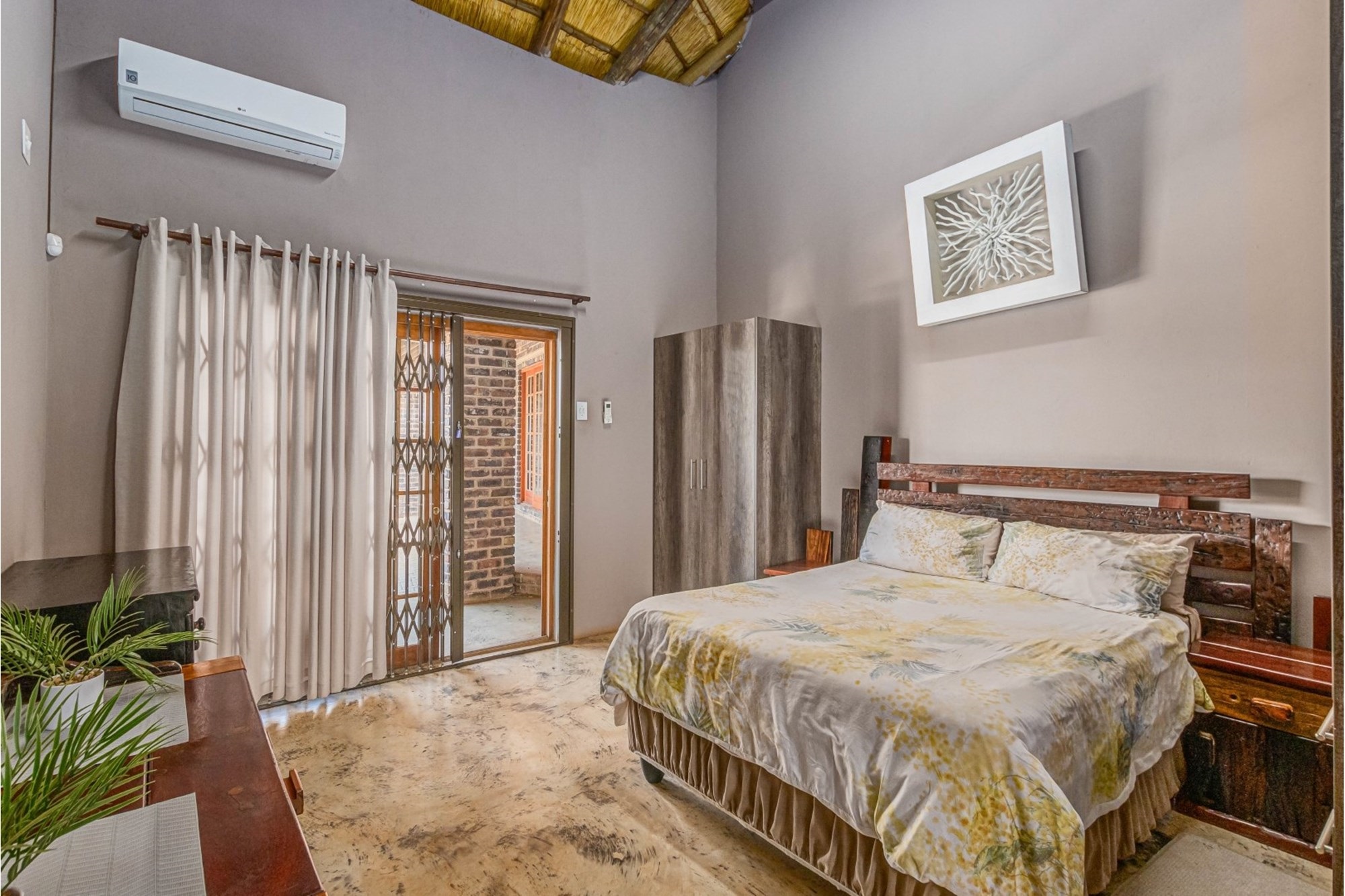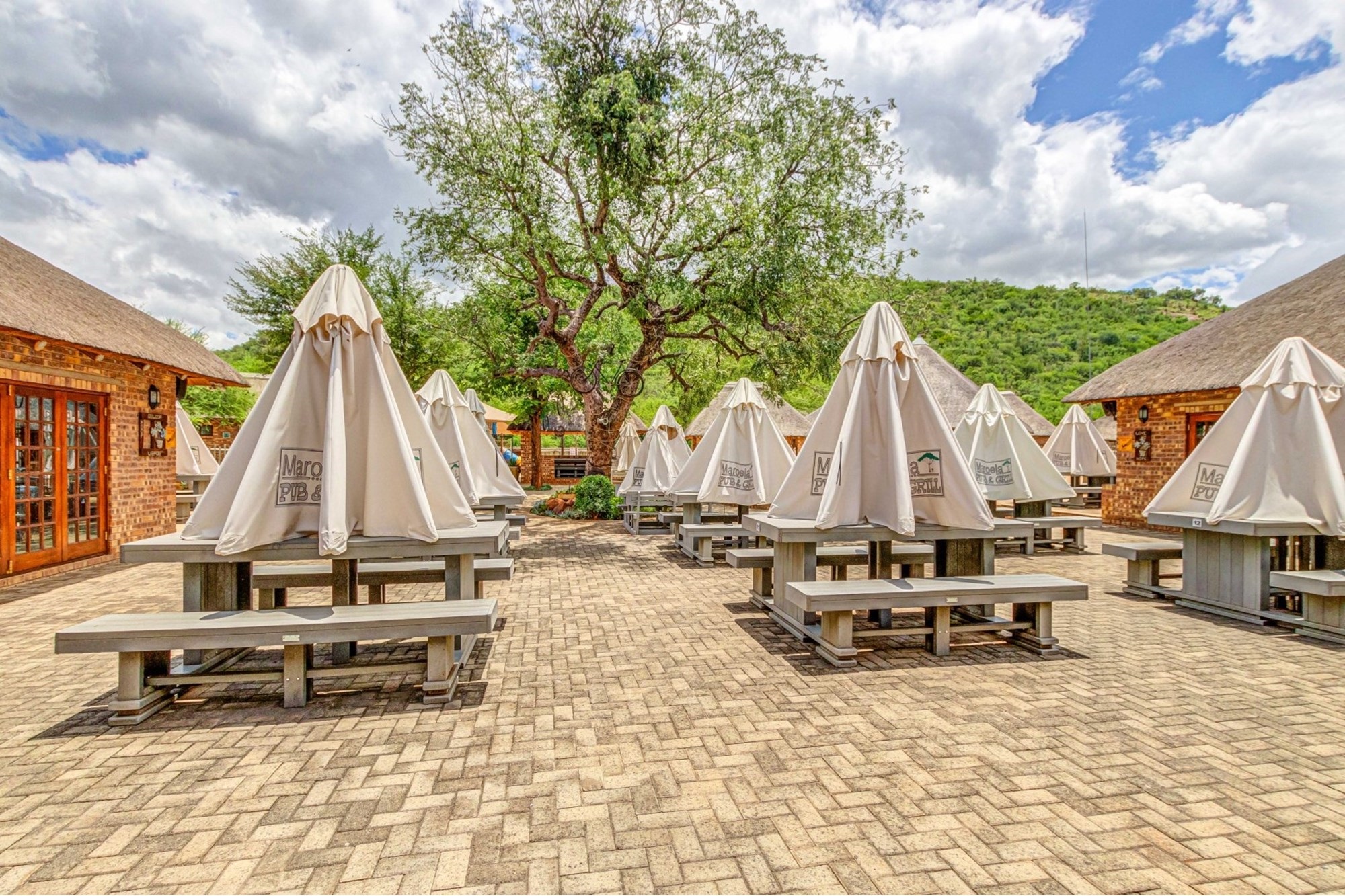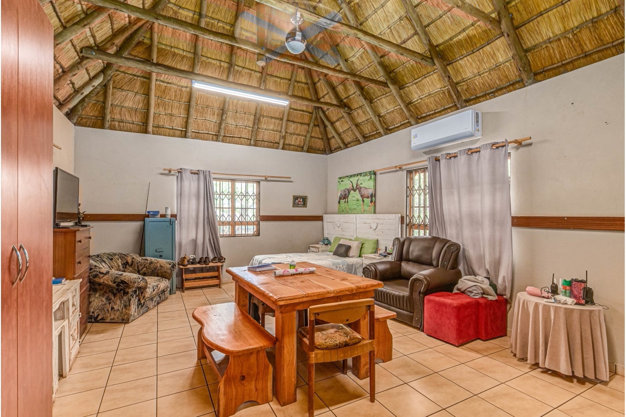 Canvas & Wood Hybrid Structure with Thatch Roof – Authentic bushveld feel.