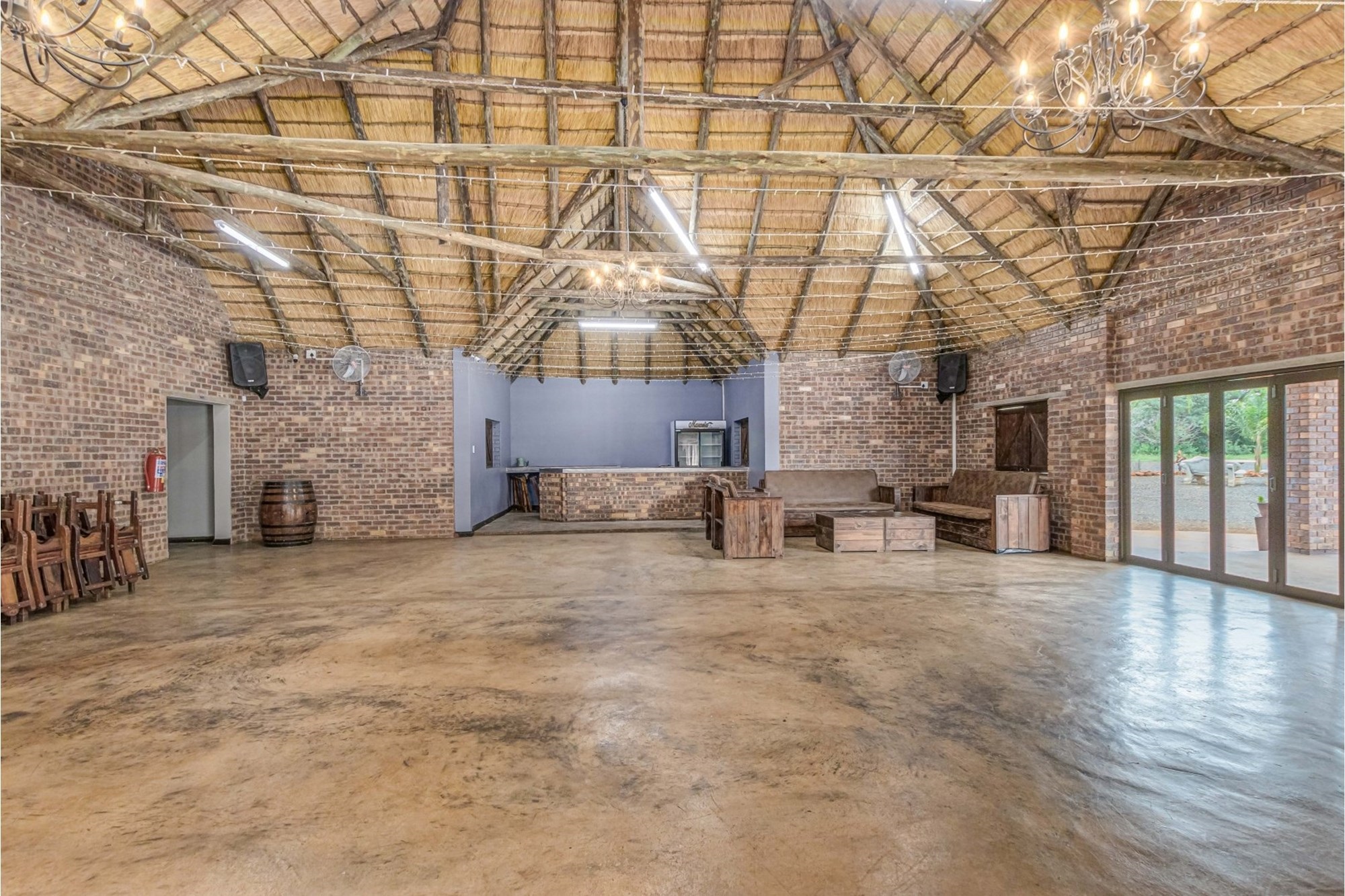 Large Indoor Function Hall – With bar, kitchen, and modern bathrooms, capable of hosting up to 220 people.