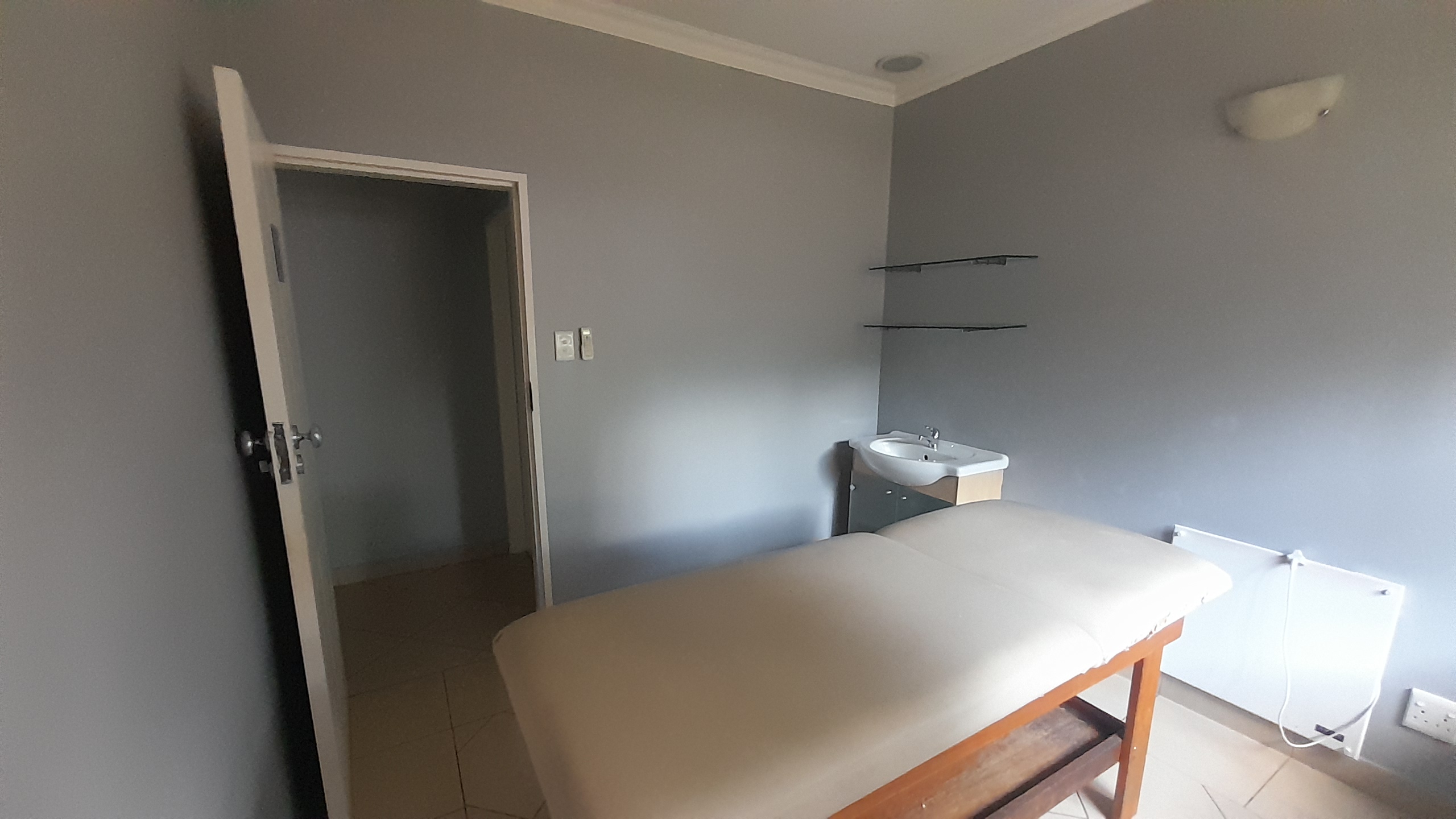 This 20m medical consulting room is situated within a fully fenced and access-controlled building in Groenkloof, ideally suited to medical, wellness, therapy, and allied healthcare practitioners. The unit consists of a single private office with tiled flooring and a window that allows for good natural light and airflow. Tenants benefit from access to a communal waiting area and communal ablutions, creating a welcoming and professional environment for clients and patients.