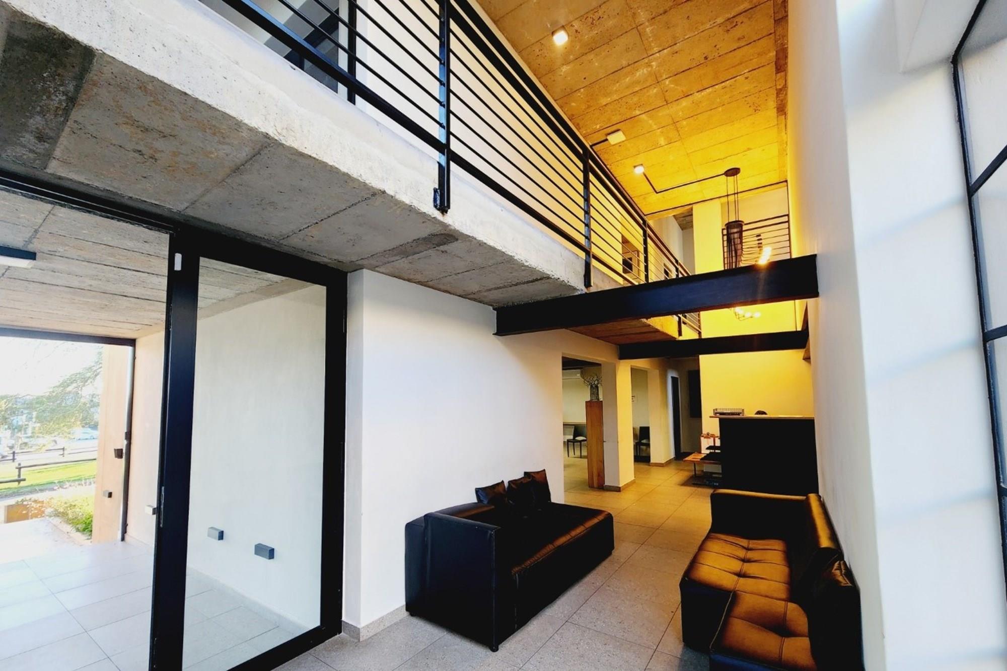 Set on a 1,376 m2 stand, this striking modern office block fuses industrial charm with architectural elegance — a space that speaks of innovation and prestige. Think factory-style steel windows, exposed brickwork, polished concrete finishes, and a tranquil koi pond that welcomes visitors into a calming, upscale environment.