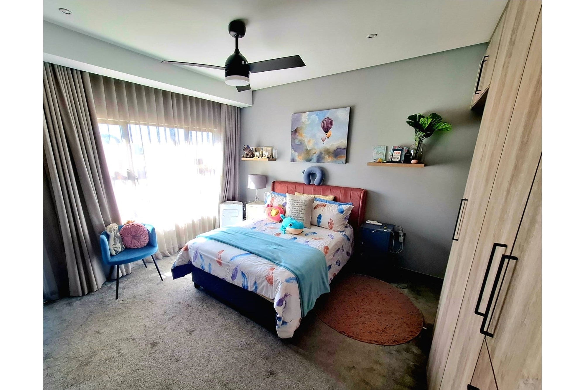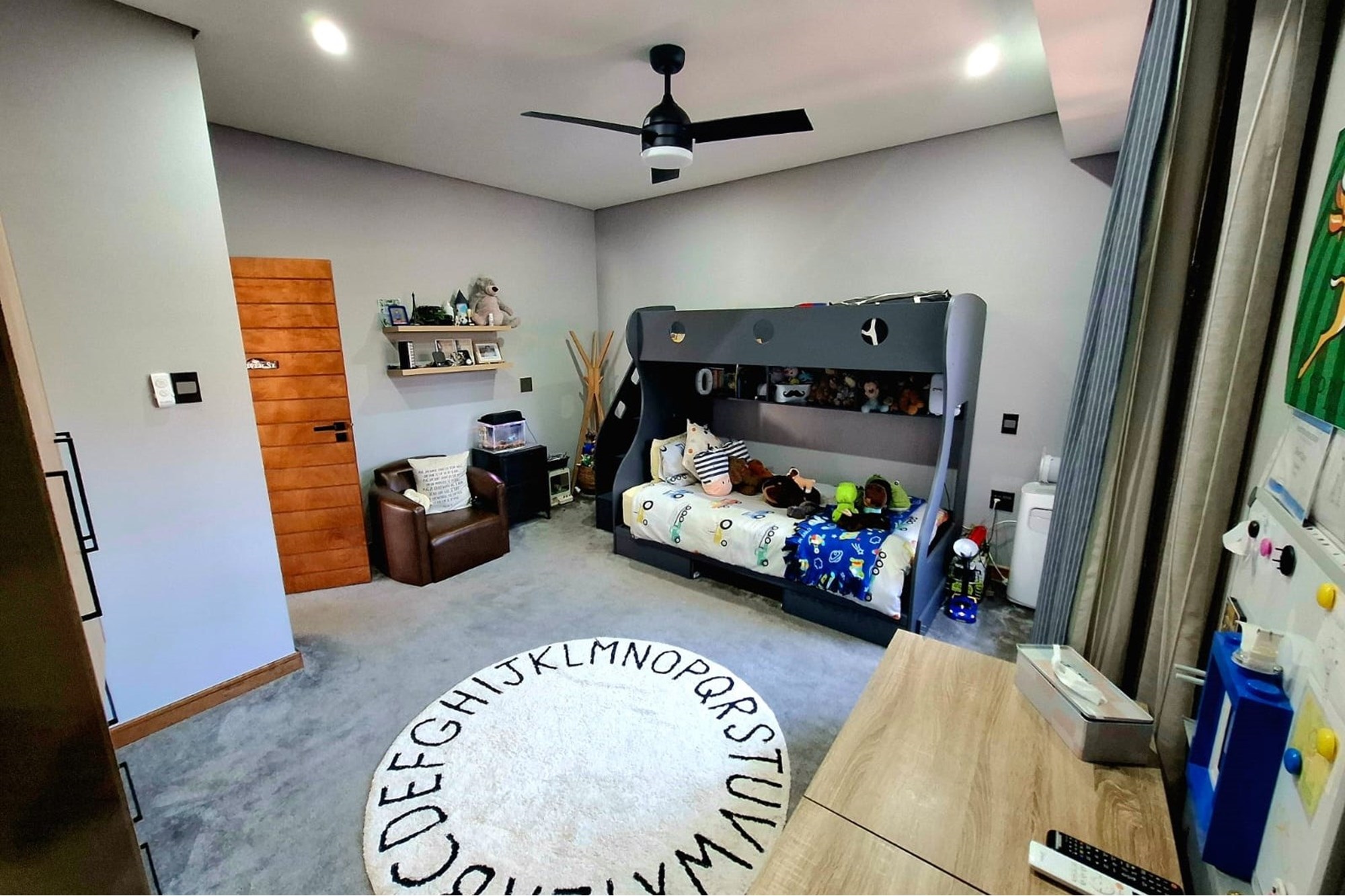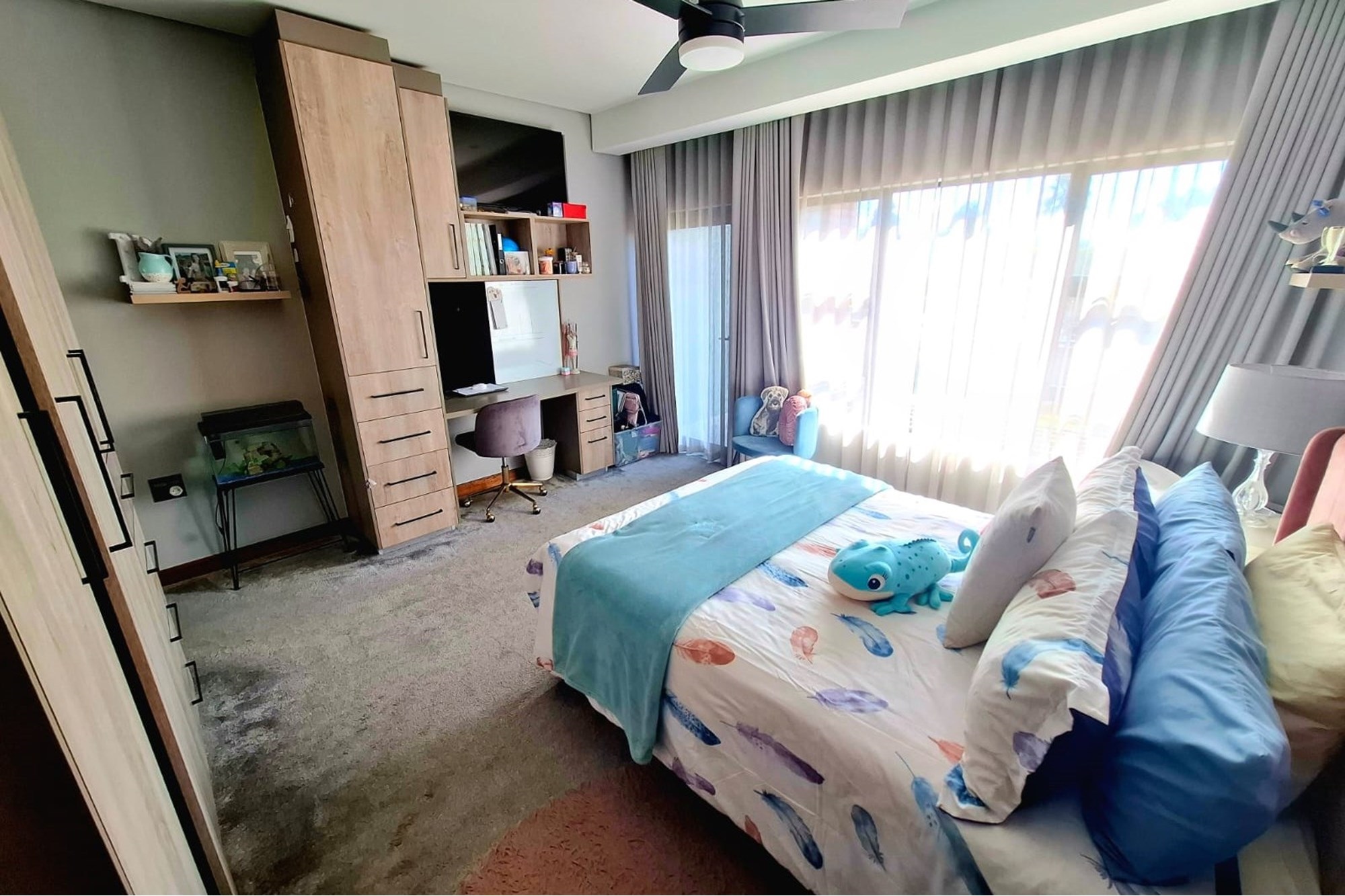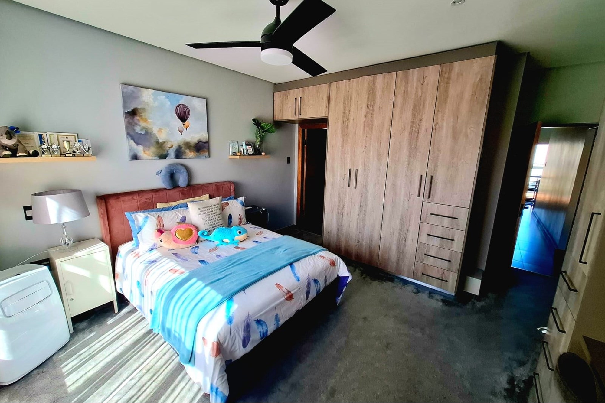 A massive garage with built-in cupboards accommodates three vehicles, with carports for an additional eight. Kids will love the big lawn, adding extra charm to this family-friendly home.