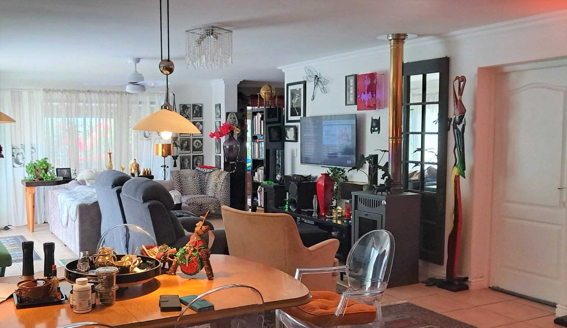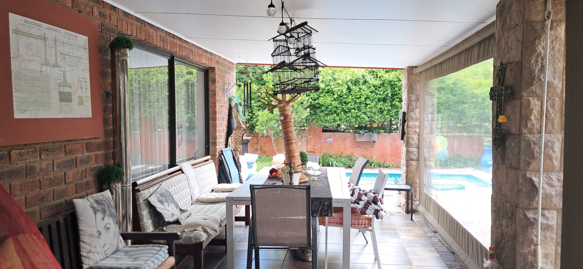 Step out onto the covered patio with wind blinds and built-in braai, perfect for hosting friends and family in any weather. Upstairs, the covered balcony invites you to relax with your morning coffee while enjoying lovely views over the neighbourhood and Groenvlei Lagoon in the distance ??