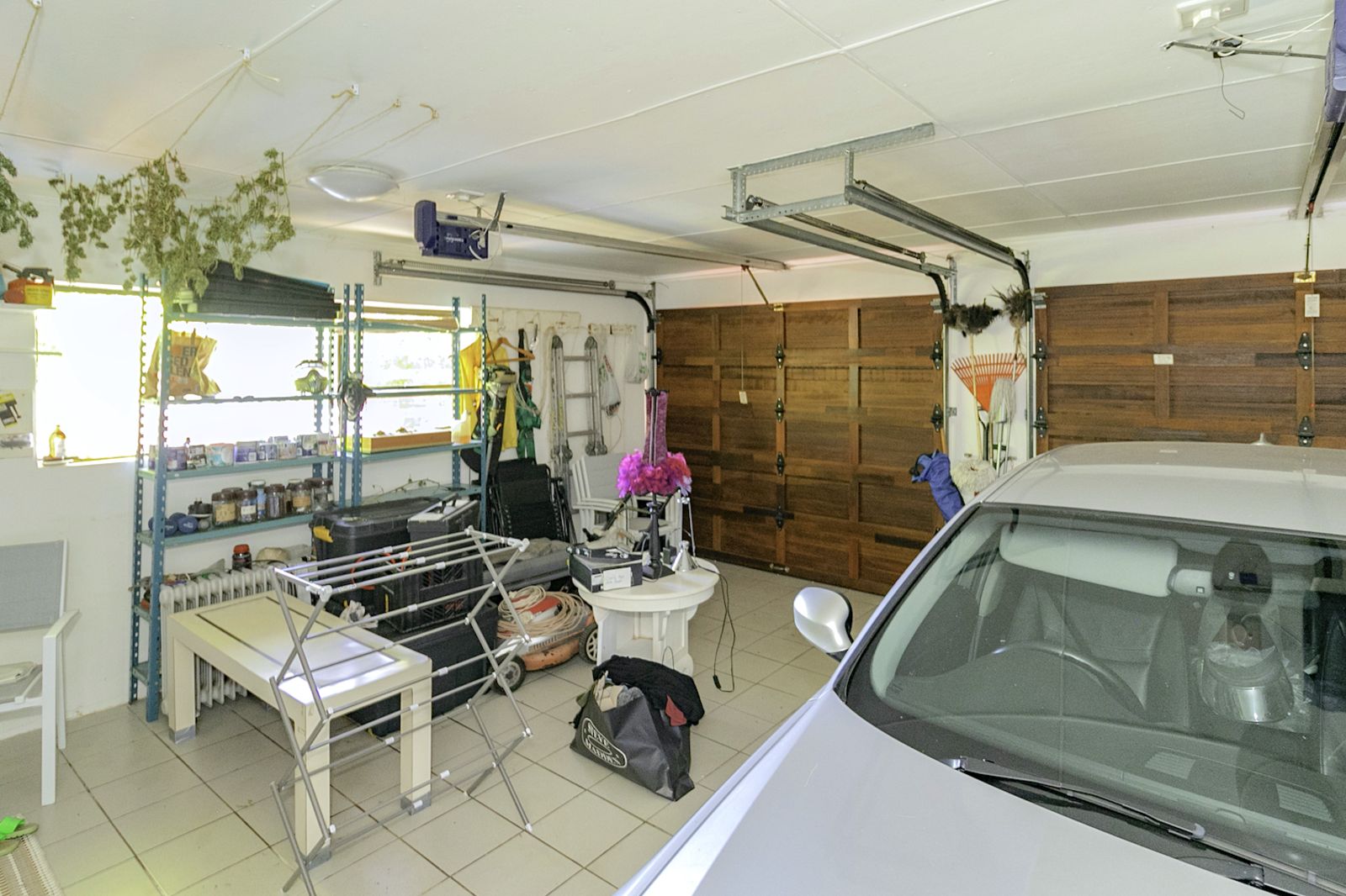 DOUBLE GARAGE – Auto double garage and access gate with tiled floor.
