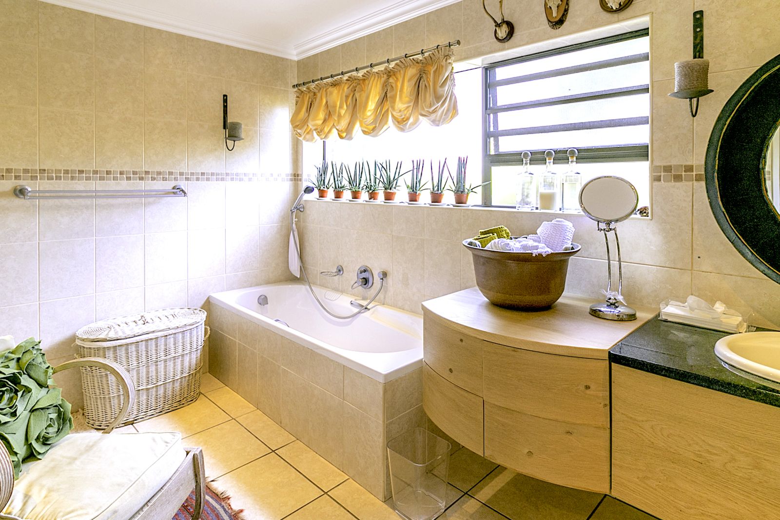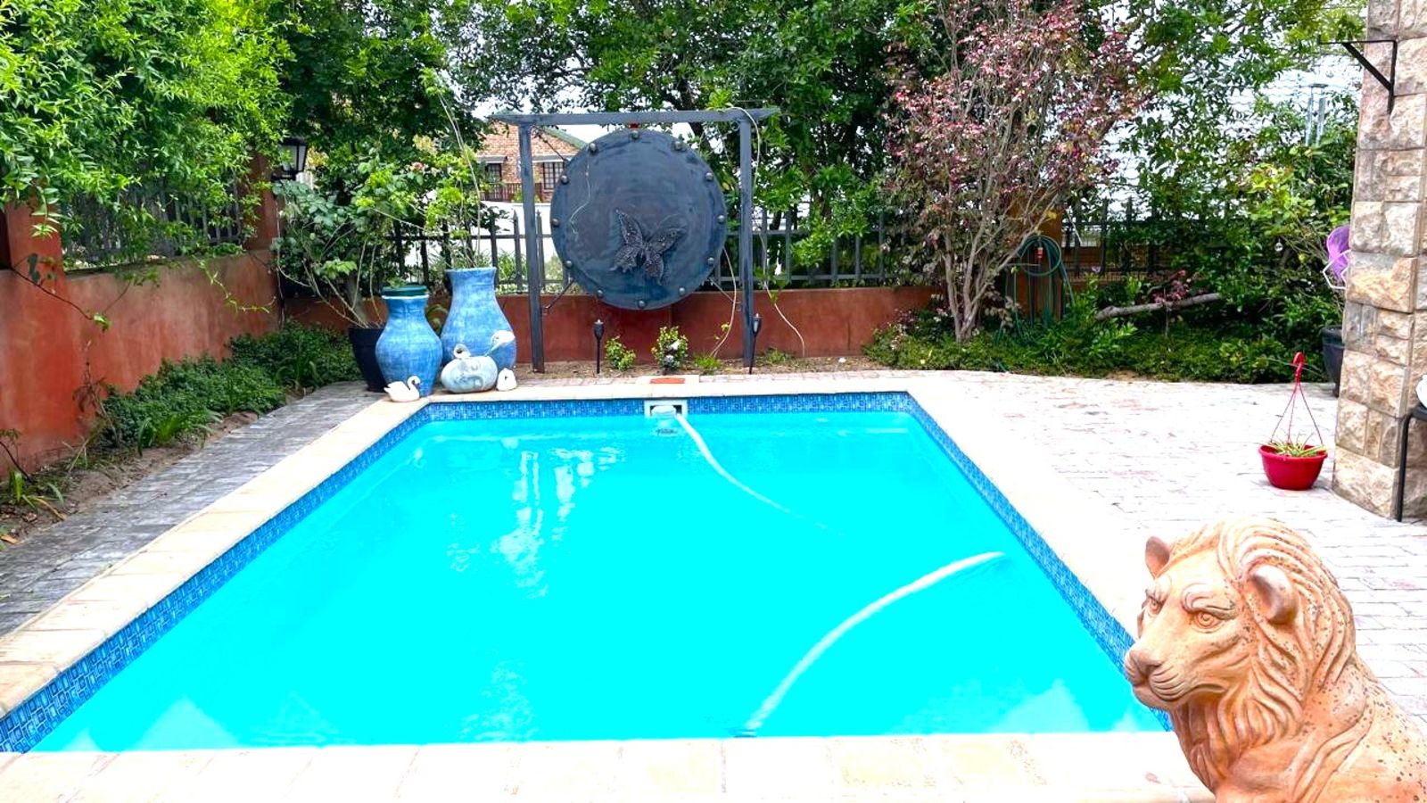 ** This quality home is set on a 600m2 stand. With double garage, borehole and off grid electricity, this is not only a quality practical build and very functional home but also allows for beauty, creativity and private spaces both inside and out.