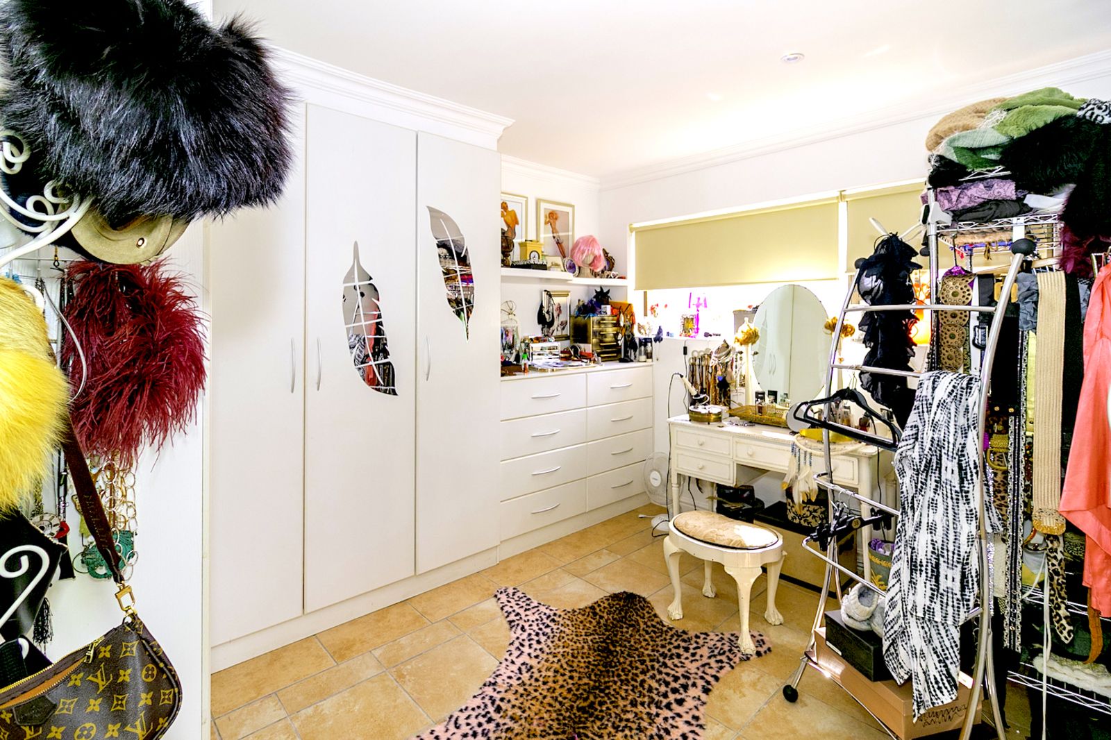 private viewing balcony. For the person with savvy fashion sense, this bedroom has a massive