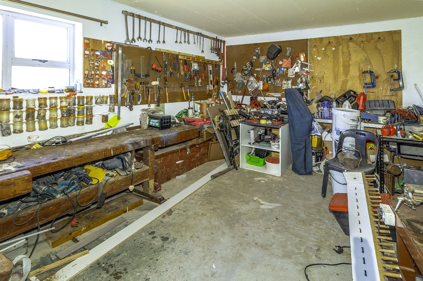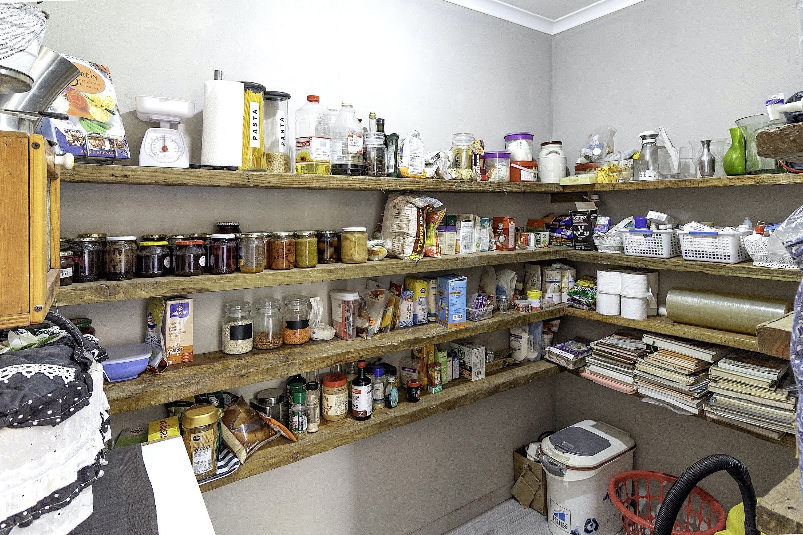 oPANTRY: Separate pantry with scaffold wood shelves.
