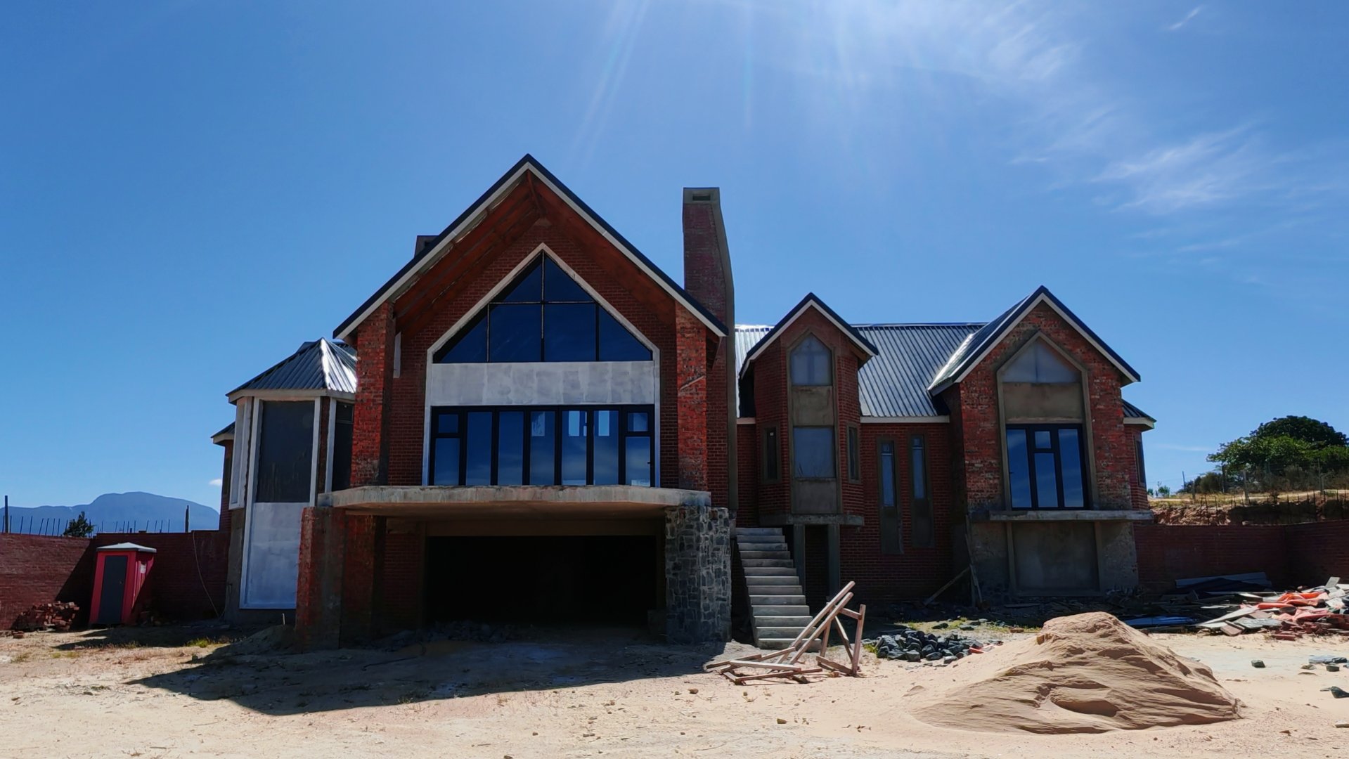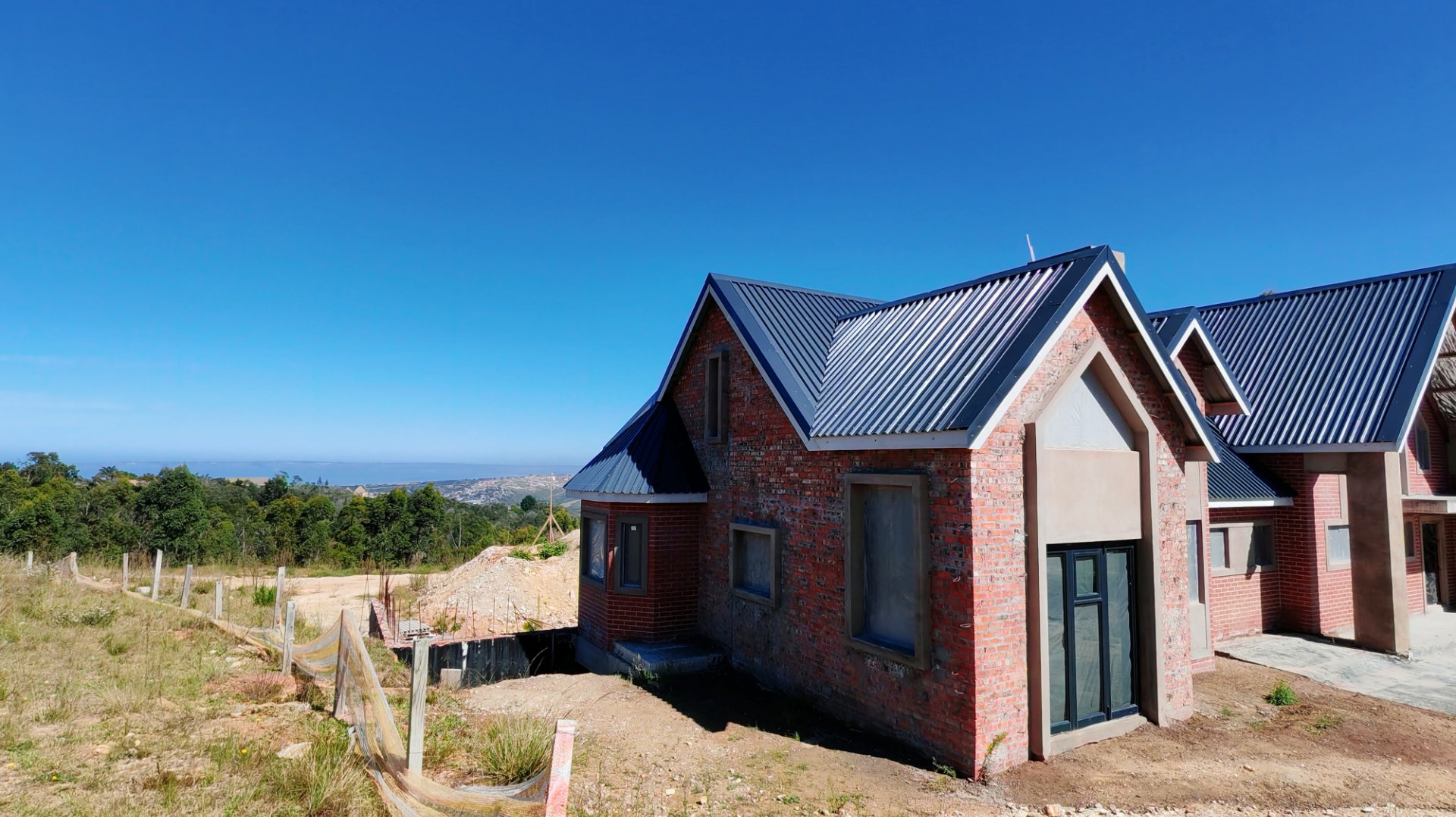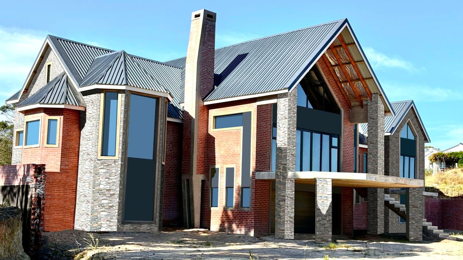 Complete this architectural masterpiece on 1,2ha land that is zoned architectural Zone 2, with beautiful ocean and valley views . The inside is still a blank canvas that awaits for the touch of uniqueness. The property consist of a spacious study, 4 bedrooms 3 bathrooms with the main ensuite bedroom on the Western side of the house.The ceilings is double volume with high exposed beams. There are plenty of windows to give a lot of natural light. The open plan kitchen with its separate scullery and spacious living areas with a built in braai opens to a balcony with amazing views of the valley and ocean . A loft in the living area could be used for a hobby room or extra bedrooms. A double garage with an extra tandem parking and storage room just adds to this impressive property and has direct access to the living area. The First 6 photo's is a presentation of how the completed house will look with cladding.