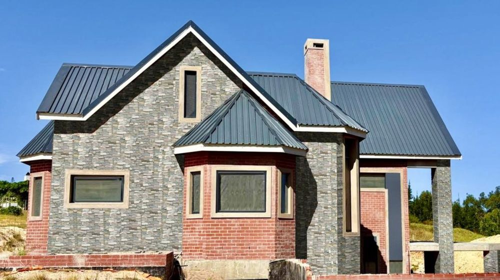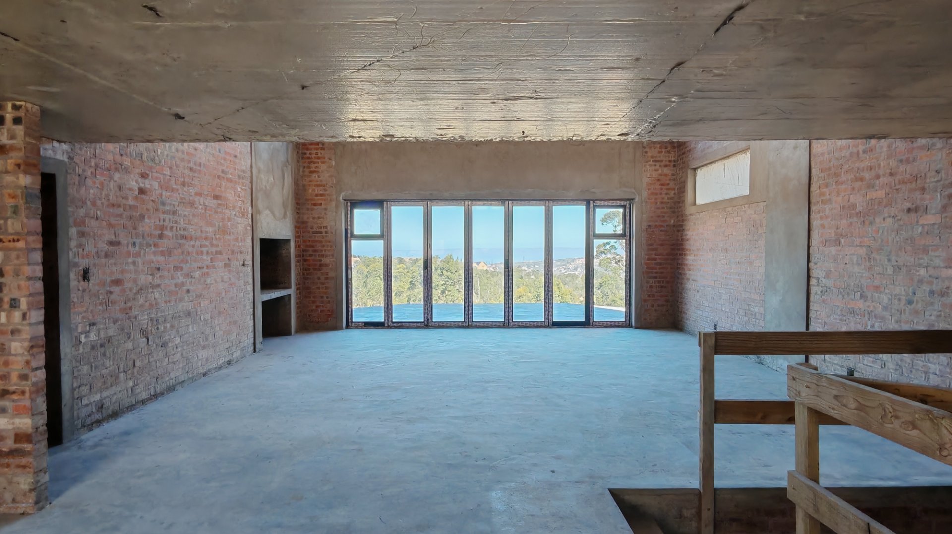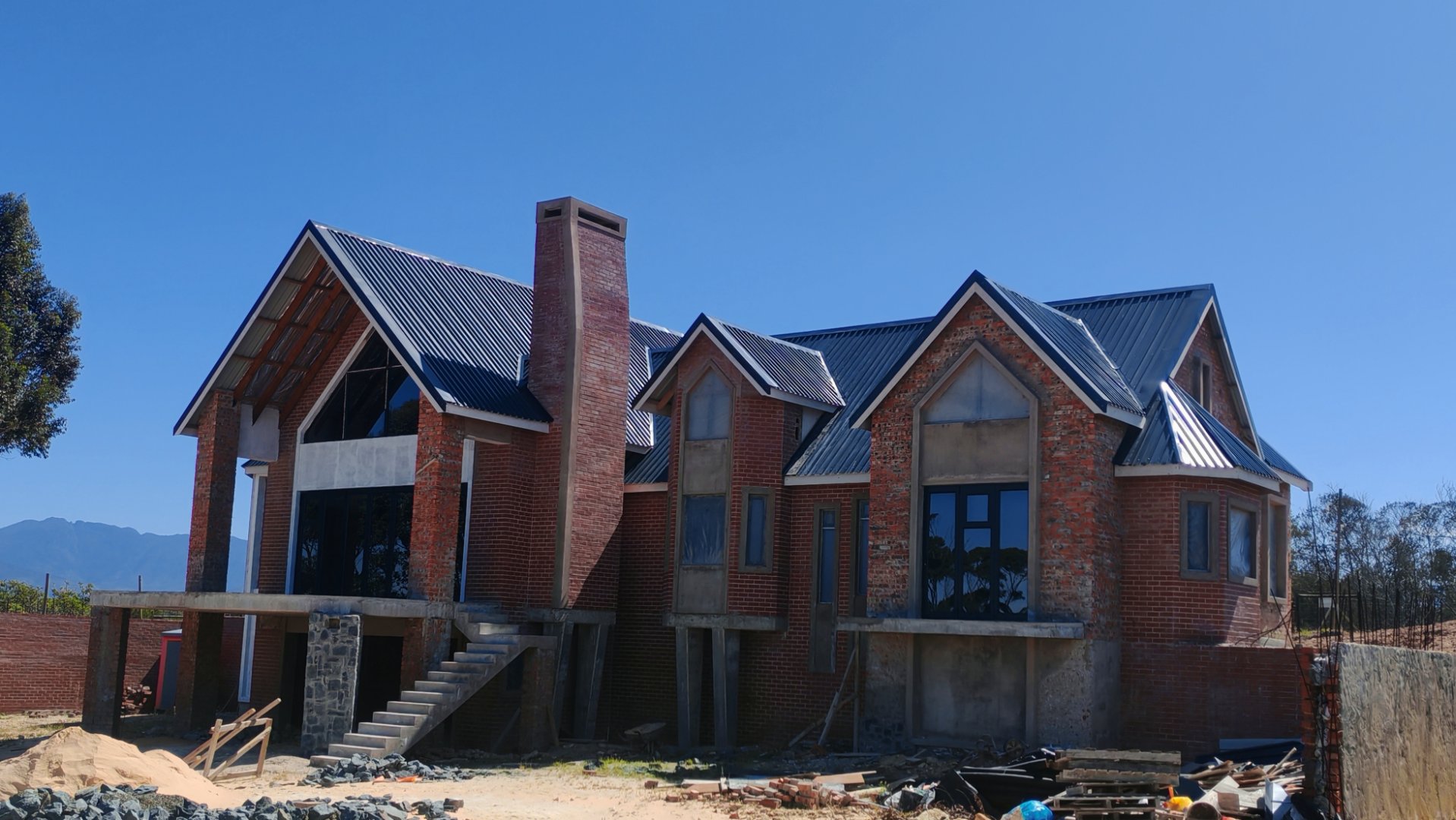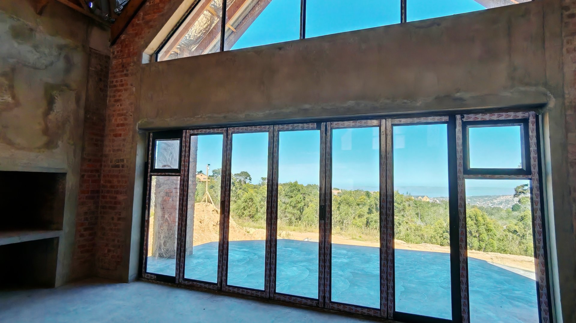 Complete this architectural masterpiece on 1,2ha land that is zoned architectural Zone 2, with beautiful ocean and valley views . The inside is still a blank canvas that awaits for the touch of uniqueness. The property consist of a spacious study, 4 bedrooms 3 bathrooms with the main ensuite bedroom on the Western side of the house.The ceilings is double volume with high exposed beams. There are plenty of windows to give a lot of natural light. The open plan kitchen with its separate scullery and spacious living areas with a built in braai opens to a balcony with amazing views of the valley and ocean . A loft in the living area could be used for a hobby room or extra bedrooms. A double garage with an extra tandem parking and storage room just adds to this impressive property and has direct access to the living area. The First 6 photo's is a presentation of how the completed house will look with cladding.