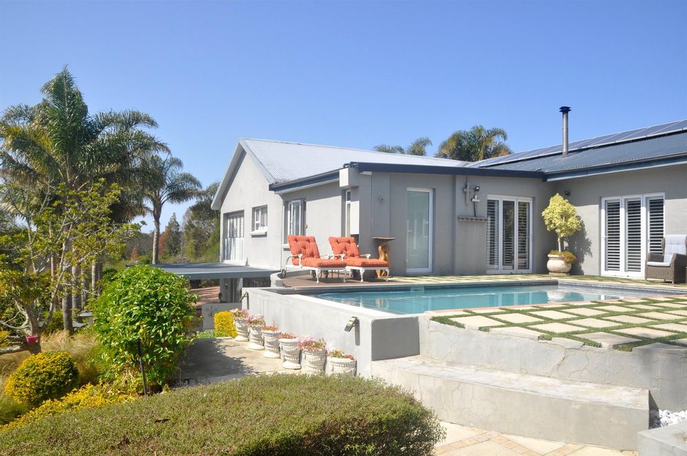Nestled in the highly sought-after and crime-free Great Brak River Heights, this modern and contemporary home offers the perfect blend of luxury, comfort and natural beauty. With sweeping views of green valleys and mountains, this property provides an idyllic setting for tranquil living while boasting every modern convenience whilst set on 4.5 hectares of enviable land.