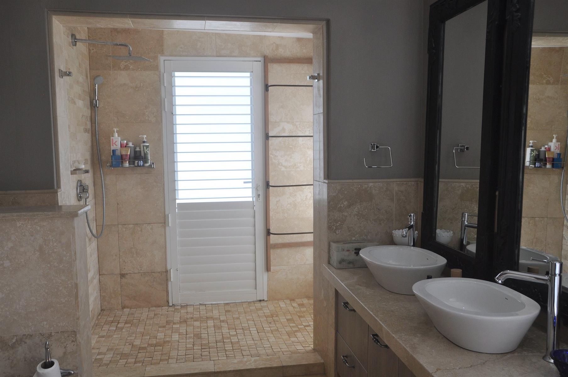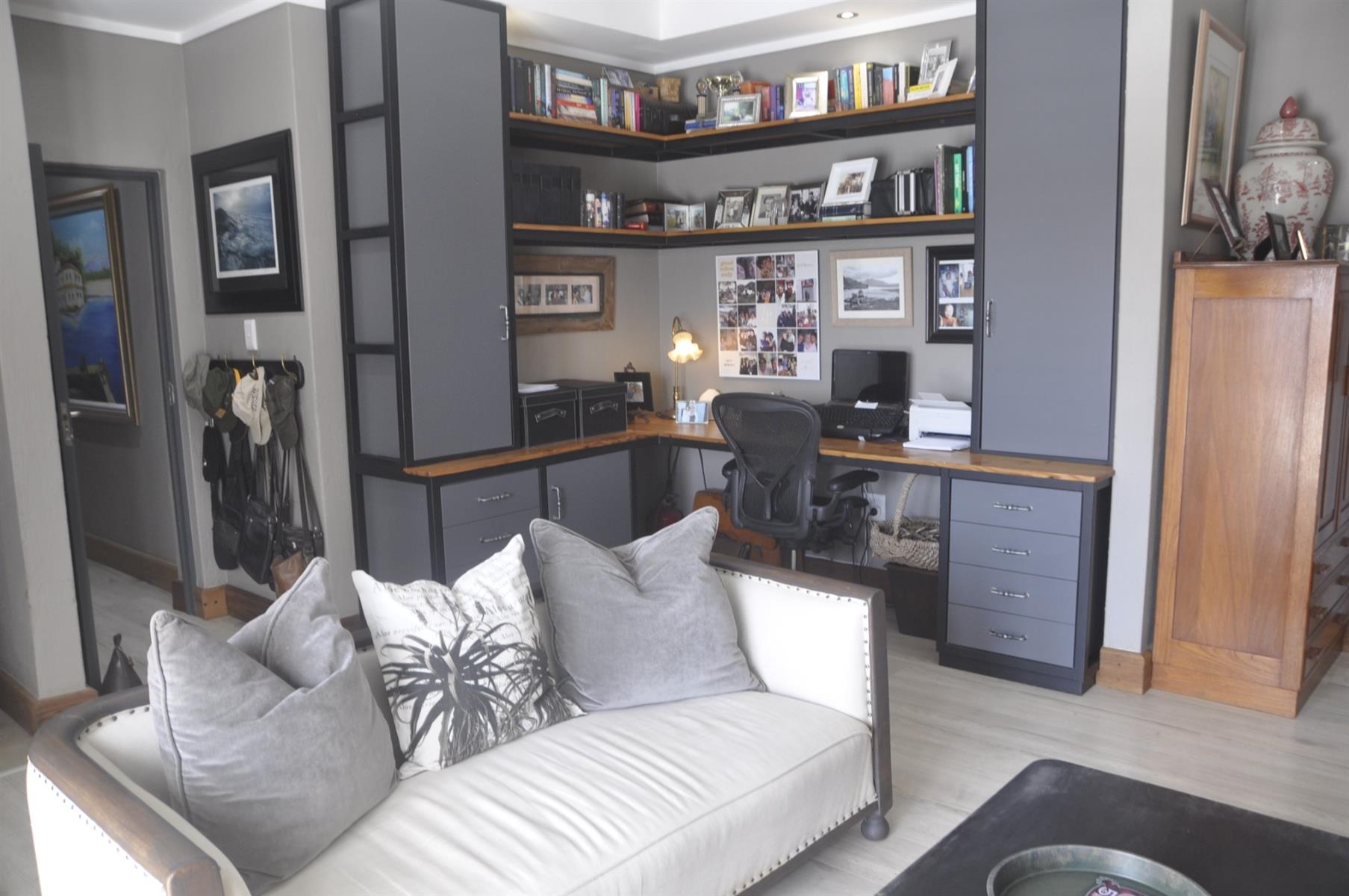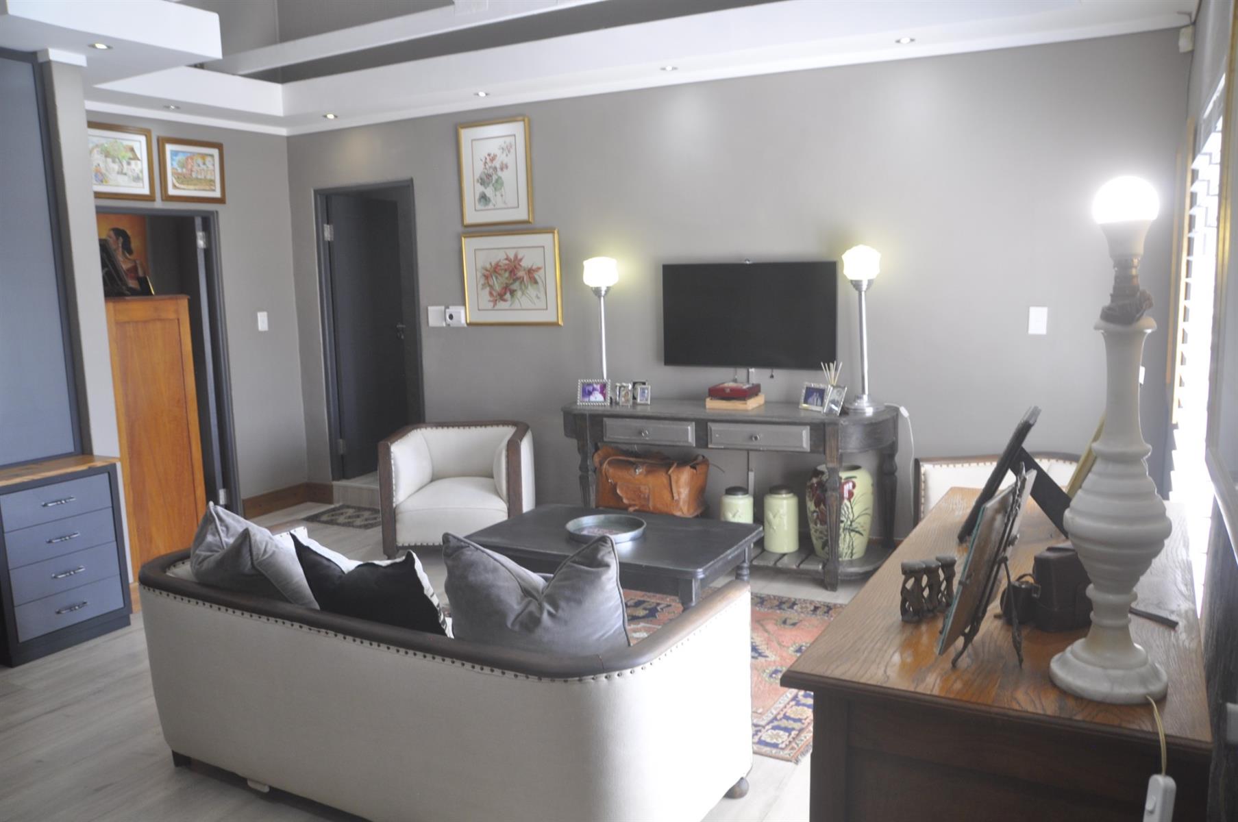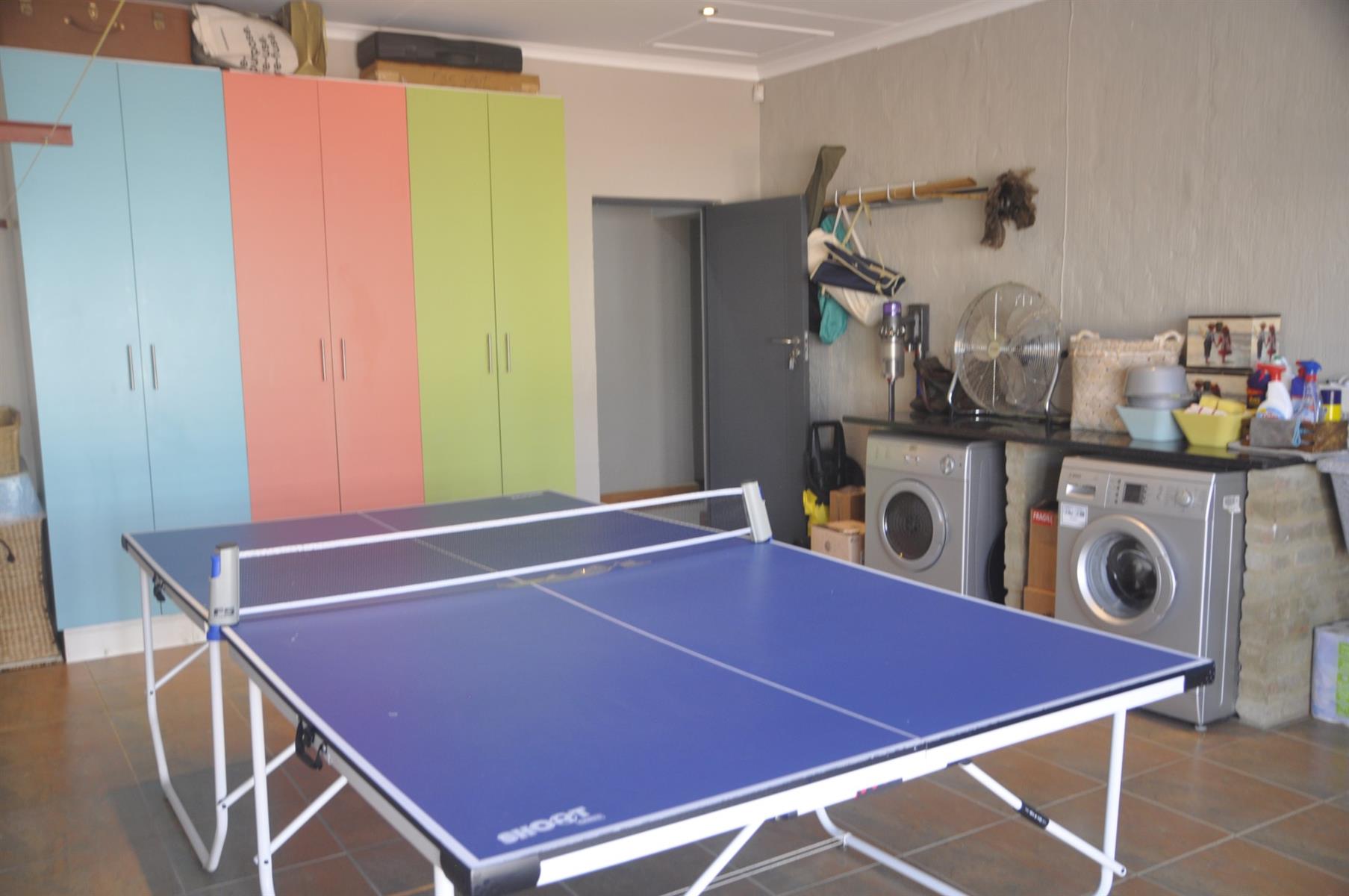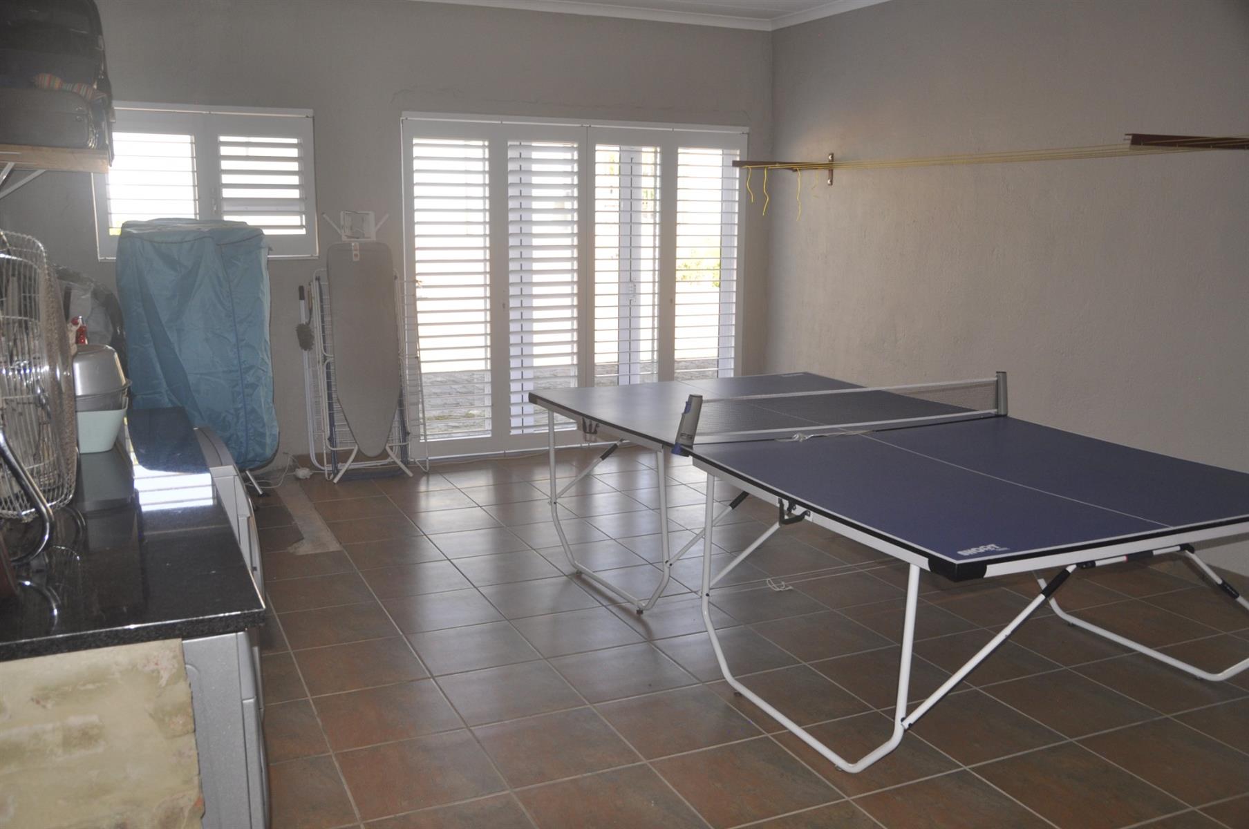 Practical extras are abundant, including high-end security shutters fitted to all windows and doors, a 90m2 double automated garage, and a separate laundry room of more than 30m2 which can easily be converted into an additional bedroom, playroom or multi-purpose space. The home is also fitted with solar panels, an inverter and batteries, ensuring uninterrupted power supply during outages. The perimeter of the day-to-day living area is completely fenced/walled with electrified security. There are a few items of furniture that are negotiable.