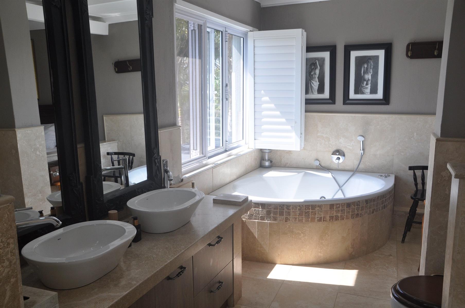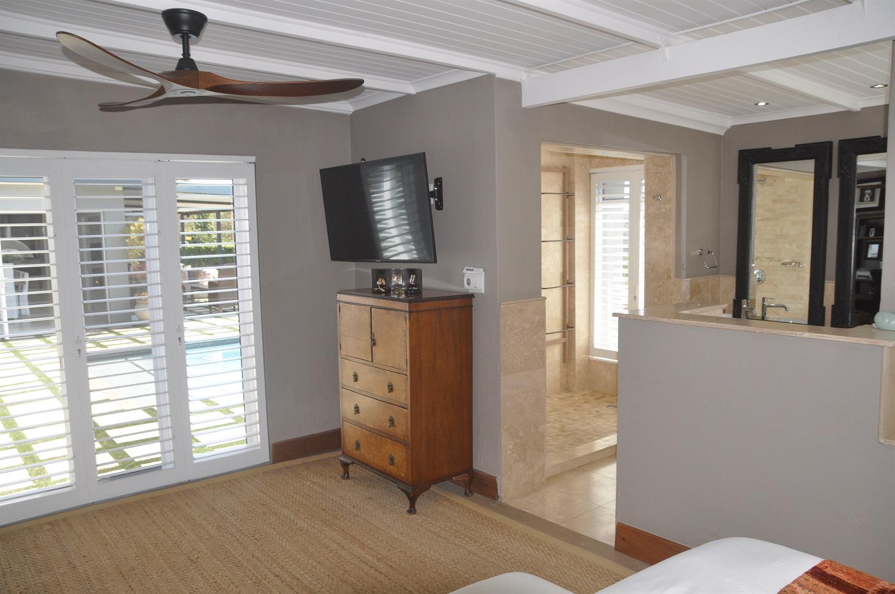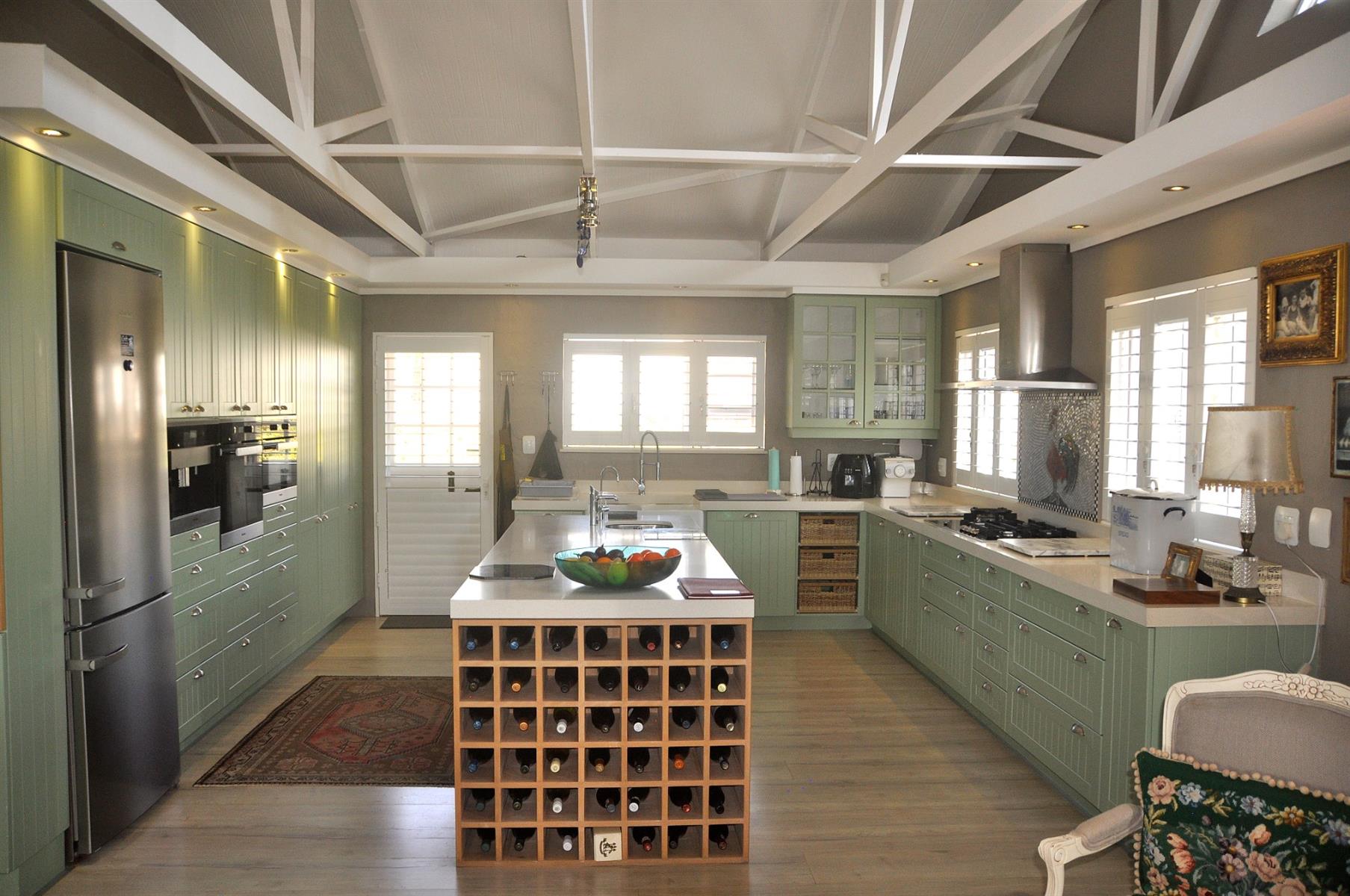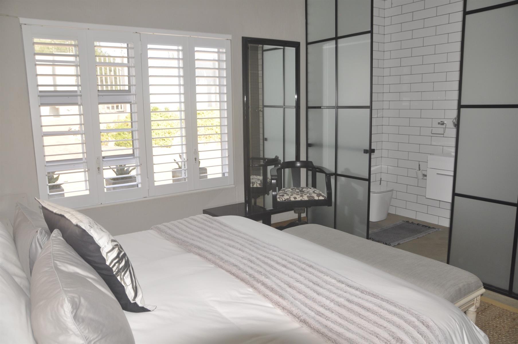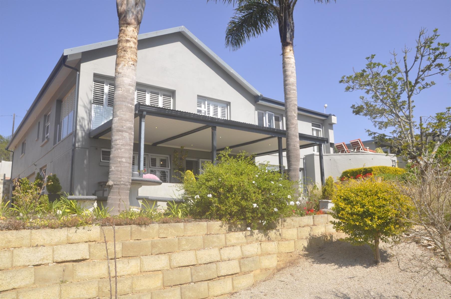 Practical extras are abundant, including high-end security shutters fitted to all windows and doors, a 90m2 double automated garage, and a separate laundry room of more than 30m2 which can easily be converted into an additional bedroom, playroom or multi-purpose space. The home is also fitted with solar panels, an inverter and batteries, ensuring uninterrupted power supply during outages. The perimeter of the day-to-day living area is completely fenced/walled with electrified security. There are a few items of furniture that are negotiable.