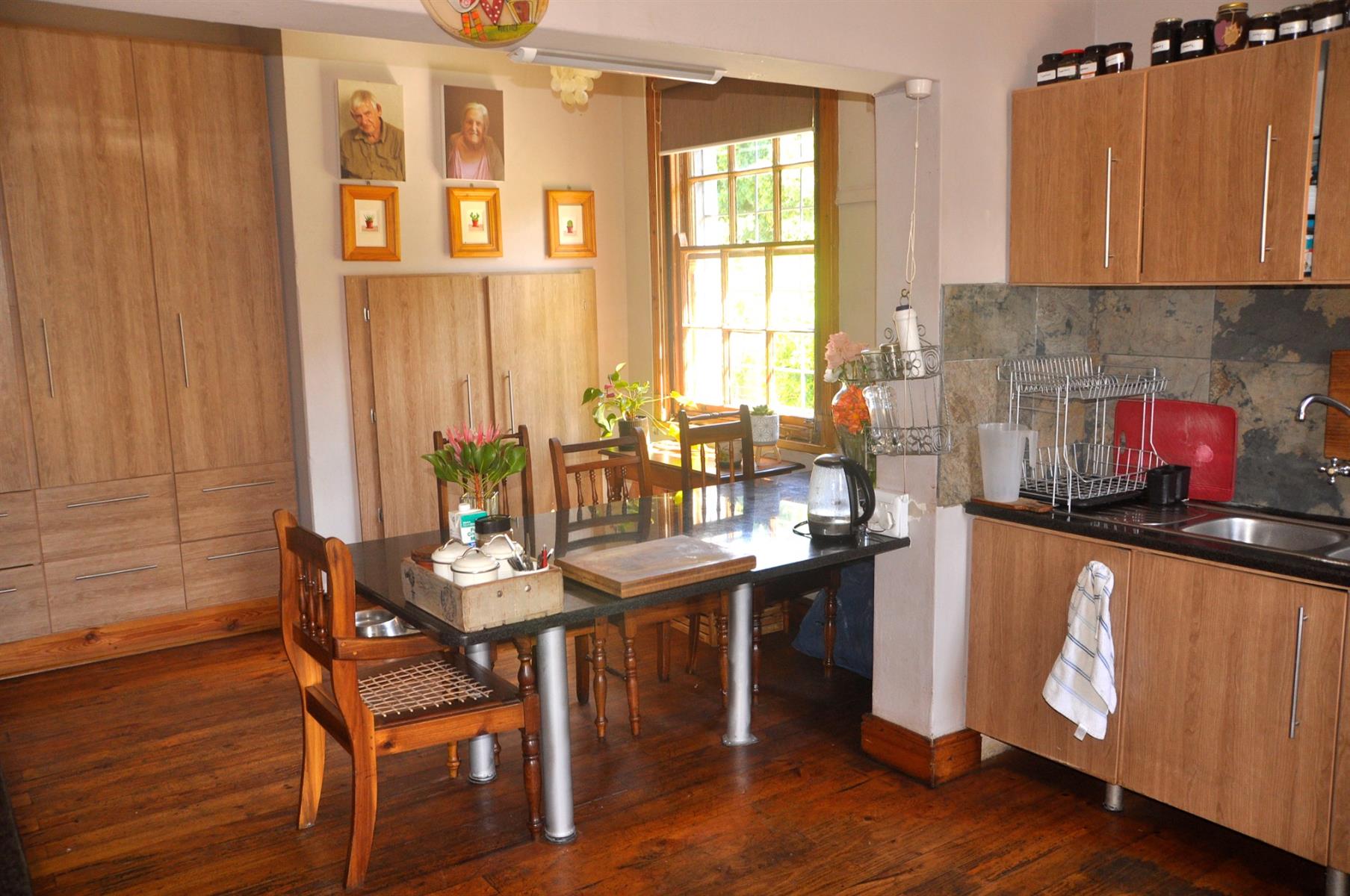 Set on a generous 952sqm erf, the main house features 3 spacious bedrooms, Oregon pine floors, wooden sash windows, and a beautifully finished bathroom with a claw-foot bath, shower, basin, and toilet. The open-plan kitchen is fitted with modern cupboards, granite tops, and a gas stove, flowing seamlessly into the living areas with a cozy fireplace.