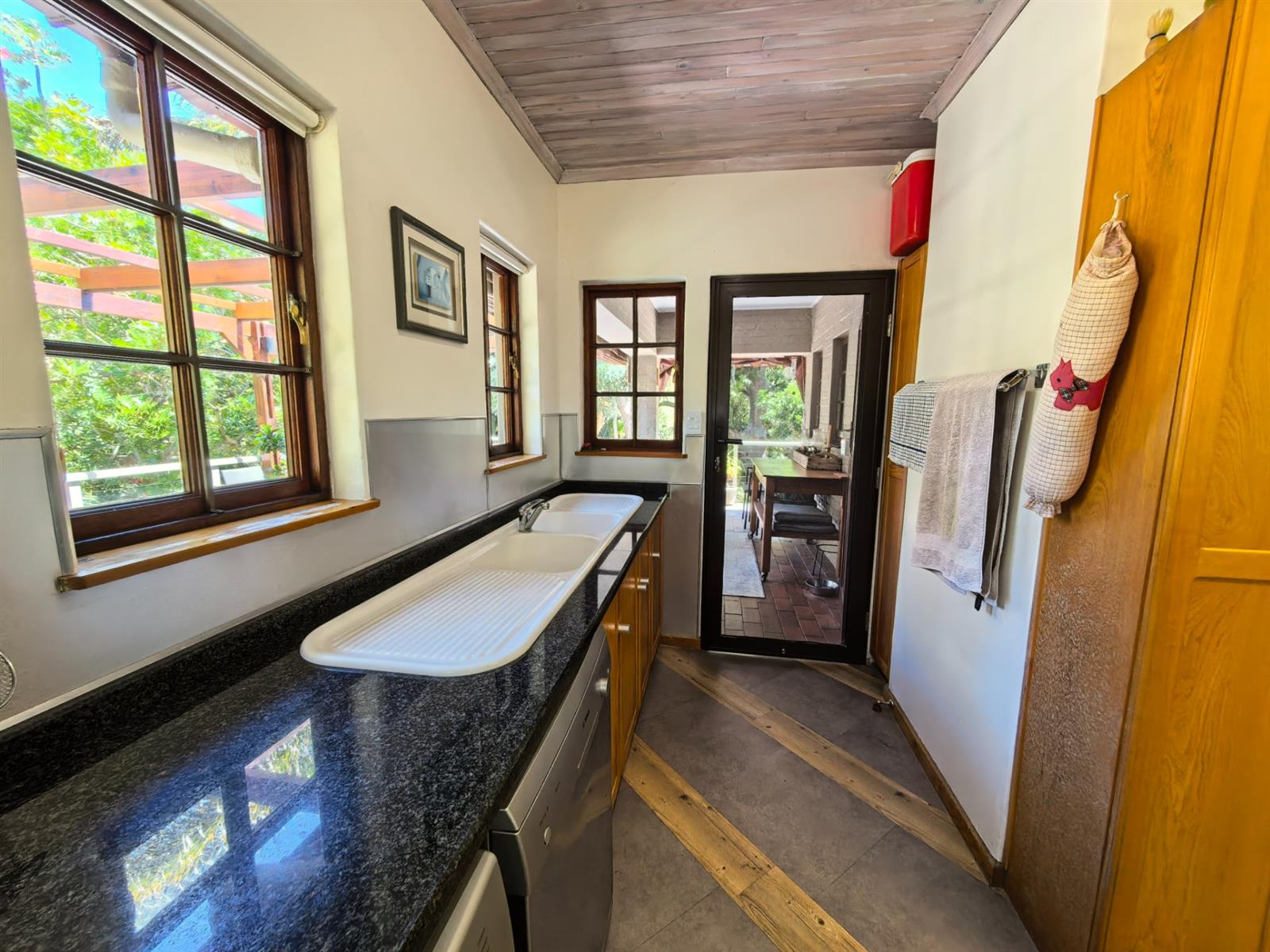 Double doors open to the outdoor braai area
