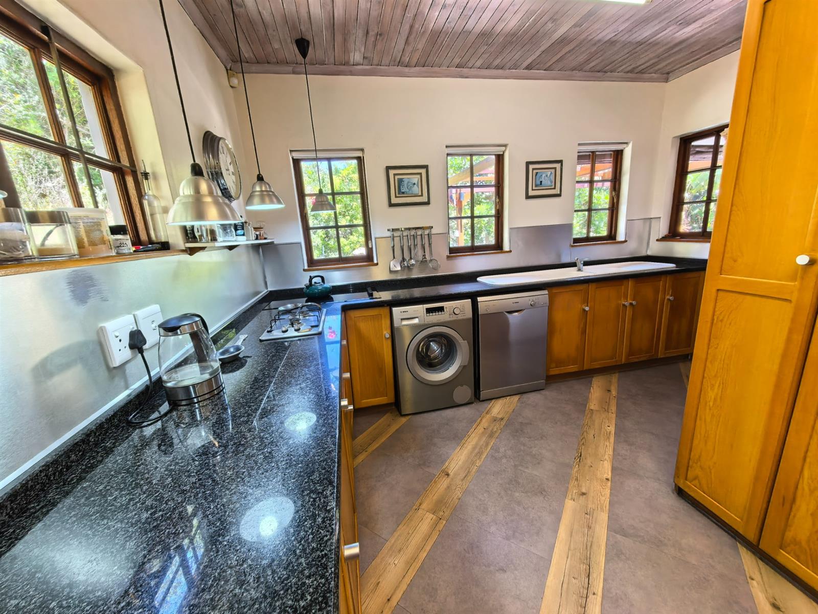 Situated on a generous 3,240 m2 stand, the property enjoys complete tranquility with no overlooking neighbours, allowing you to fully immerse yourself in the peaceful surroundings. The beautifully established garden is rich with mature trees, indigenous plants, abundant birdlife, and carefully curated flora — a true sanctuary.