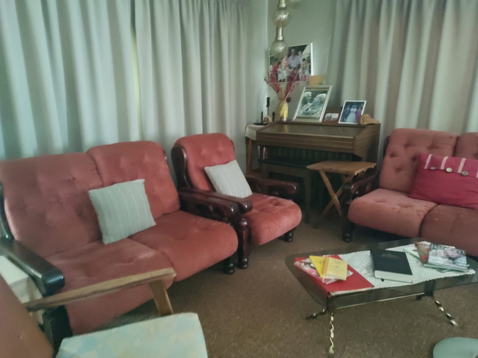 oOpen-plan lounge/dining room and kitchen with strong wood cupboards.
