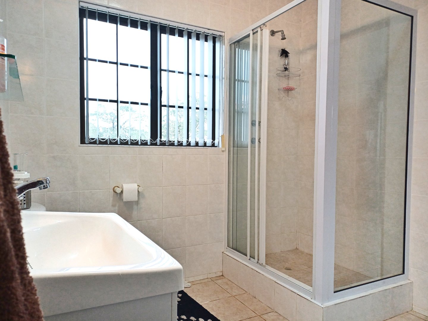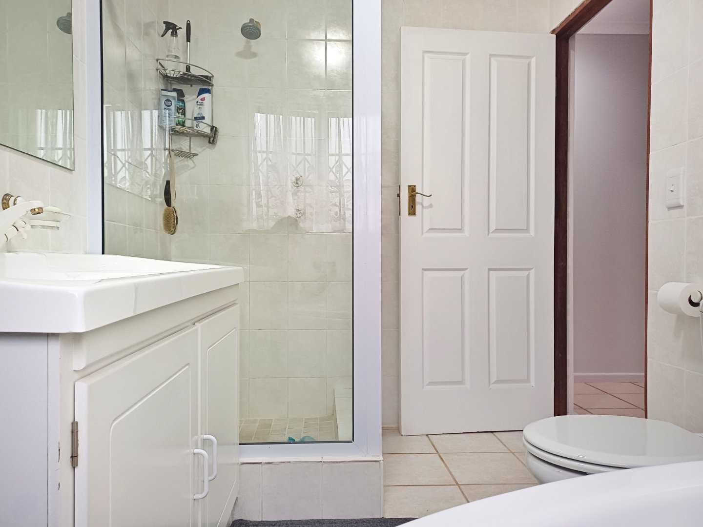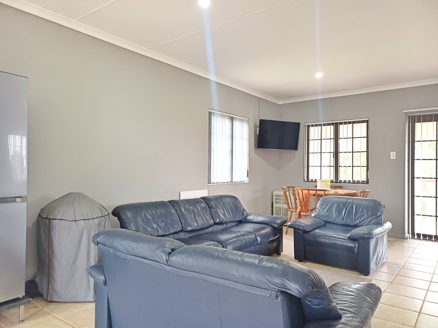 The separate flatlet, situated above the garages, provides additional accommodation with a bedroom, full bathroom, fitted kitchen, and a private stoep with tranquil views, ideal for guests, extended family, or income generation.