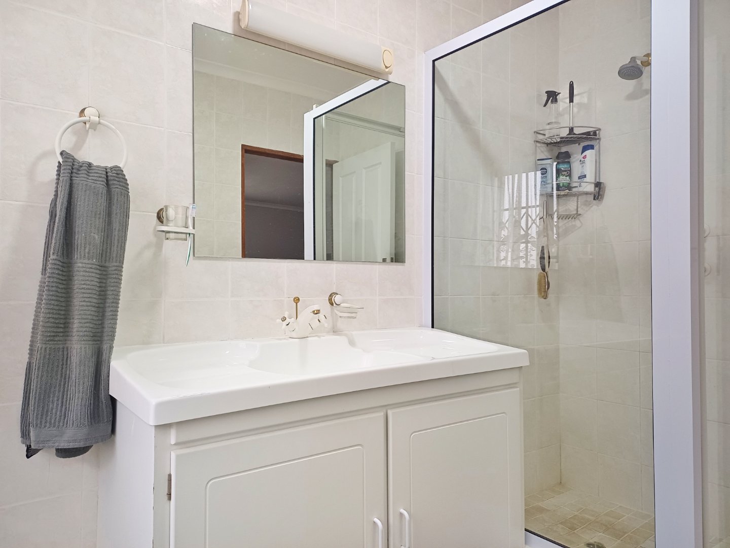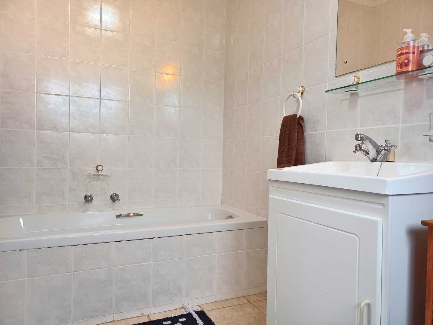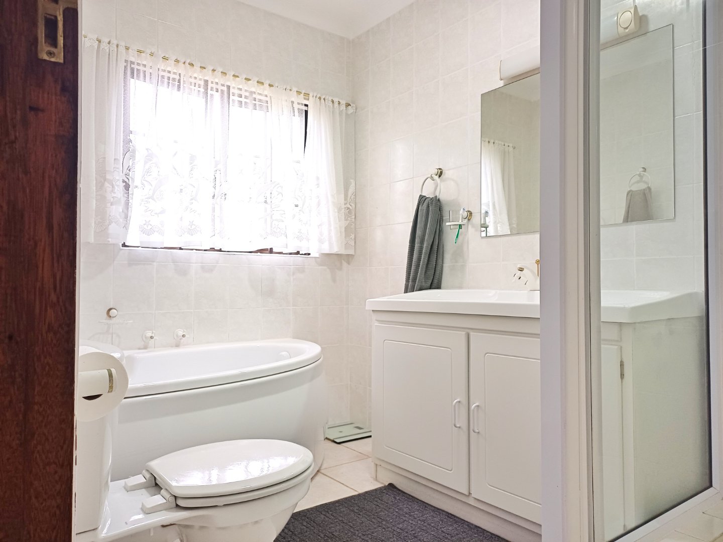 The separate flatlet, situated above the garages, provides additional accommodation with a bedroom, full bathroom, fitted kitchen, and a private stoep with tranquil views, ideal for guests, extended family, or income generation.