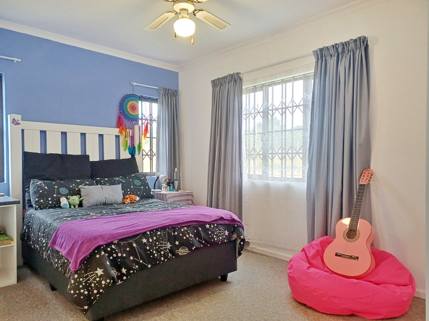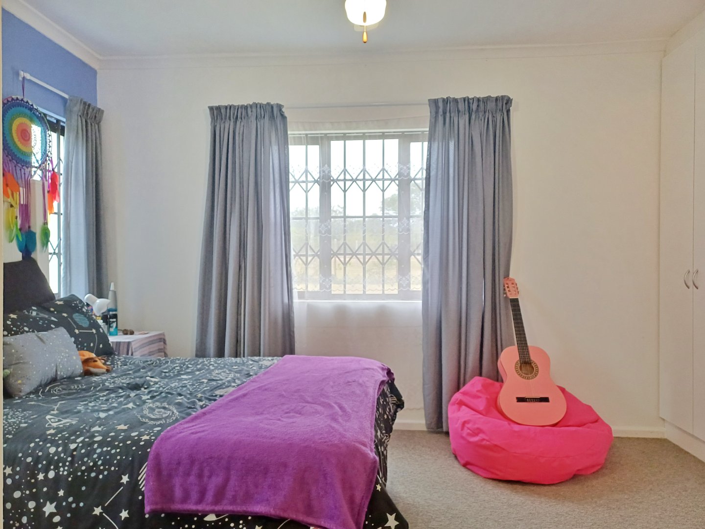 The main residence is thoughtfully designed, featuring three spacious en-suite bedrooms and a dedicated study, perfect for those working from home. The open-plan layout flows seamlessly between the kitchen, dining, and living areas, while an inviting bar and outdoor braai area set the tone for effortless entertaining. Expansive lawns surround the home, offering endless potential for gardens, pets, or play.
