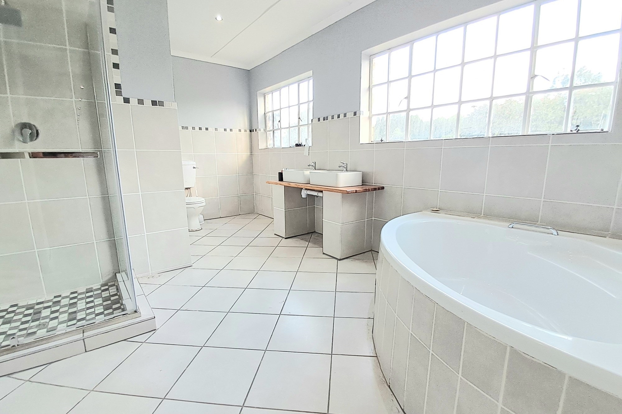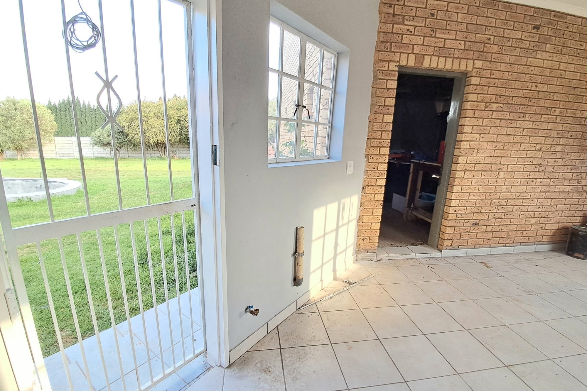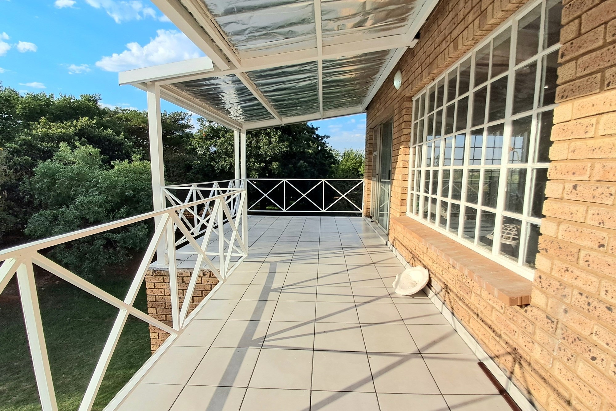 A great 1HA in a safe estate. Room for you to add your personal touch, although nicely renovated. Don’t miss out on your dream residence! Nestled on a 1.2-hectare smallholding in the sought-after Grootfontein Country Estate, this newly renovated and generously sized 4-bedroom, 2-bathroom home is ready to welcome you. Enjoy breathtaking sunsets from the expansive upper room, which boasts its own private balcony. The house is perfectly positioned to take advantage of those sunny winter days, facing north. Interior Highlights: Experience the charm of freshly renovated rooms and bathrooms adorned with stylish new tiles throughout. The living areas exude a Roman-inspired ambiance, featuring exquisite pillars that enhance the character of the home. Kitchen: The spacious kitchen is a chef`s delight, complete with a preparation island that doubles as a cozy breakfast nook. With ample white tiles and numerous windows, natural light floods the area. Conveniently, there’s a dedicated room for ironing, laundry, or storage, with direct access to the double garage. Bedrooms: Four generously sized north-facing bedrooms come equipped with built-in cupboards and picturesque garden views. The extra-wide passage offers additional space for furniture, such as cupboards, chairs, or sofas. Bathrooms: The main en-suite bathroom, attached to the master bedroom, features a walk-in wardrobe, while the second bathroom caters to the remaining three bedrooms. Study: There’s a versatile study/office with access from both the lounge and an external door for client visits. With a bit of creativity, this space could easily transform into a cozy room for a teenager. Living Areas: Step through the front door into a magnificent space reminiscent of a Roman villa, where striking white pillars invite you into an area that flows seamlessly from the lounge to the dining room and into the kitchen (which is not open plan). Upper Level: Ascend the staircase to discover a vast upper room that can serve as an entertainment zone, art studio, or whatever your heart desires. It features north-facing windows and an east-facing sliding door leading to the balcony—perfect for enjoying the sunset. Exterior: A concrete slab is ready for your imagination—transform it into a lapa, additional garages, or carports. At the back, a braai area surrounds a splash pool, creating an inviting space for family gatherings. Further down, you’ll find two workers` rooms, animal cages, and plenty of space for a vegetable garden. Garden: The property is adorned with lush green grass and just the right number of trees to create a tranquil paradise. Enjoy the bounty of mature fruit and nut trees, including peach, lemon, pomegranate, fig, and peanut trees, all inviting your family to relax beneath their branches while sipping homemade lemonade. The remaining space can be transformed into organic veggie tunnels, supported by ample water from the borehole and Eskom power. There is a precast wall with a gate. Monitor net is 24hour security service driving in a car around in the estate. The estate owners are on a whatsapp group. Conveniently located just a short gravel road trip of less than a kilometer to the tar road, this property is in close proximity to essential schools, hospitals, and shopping centers, including Woodlands Mall, only 10 km away. It’s the perfect blend of seclusion and accessibility! Don’t wait—call today to schedule a viewing before you head off on holiday!