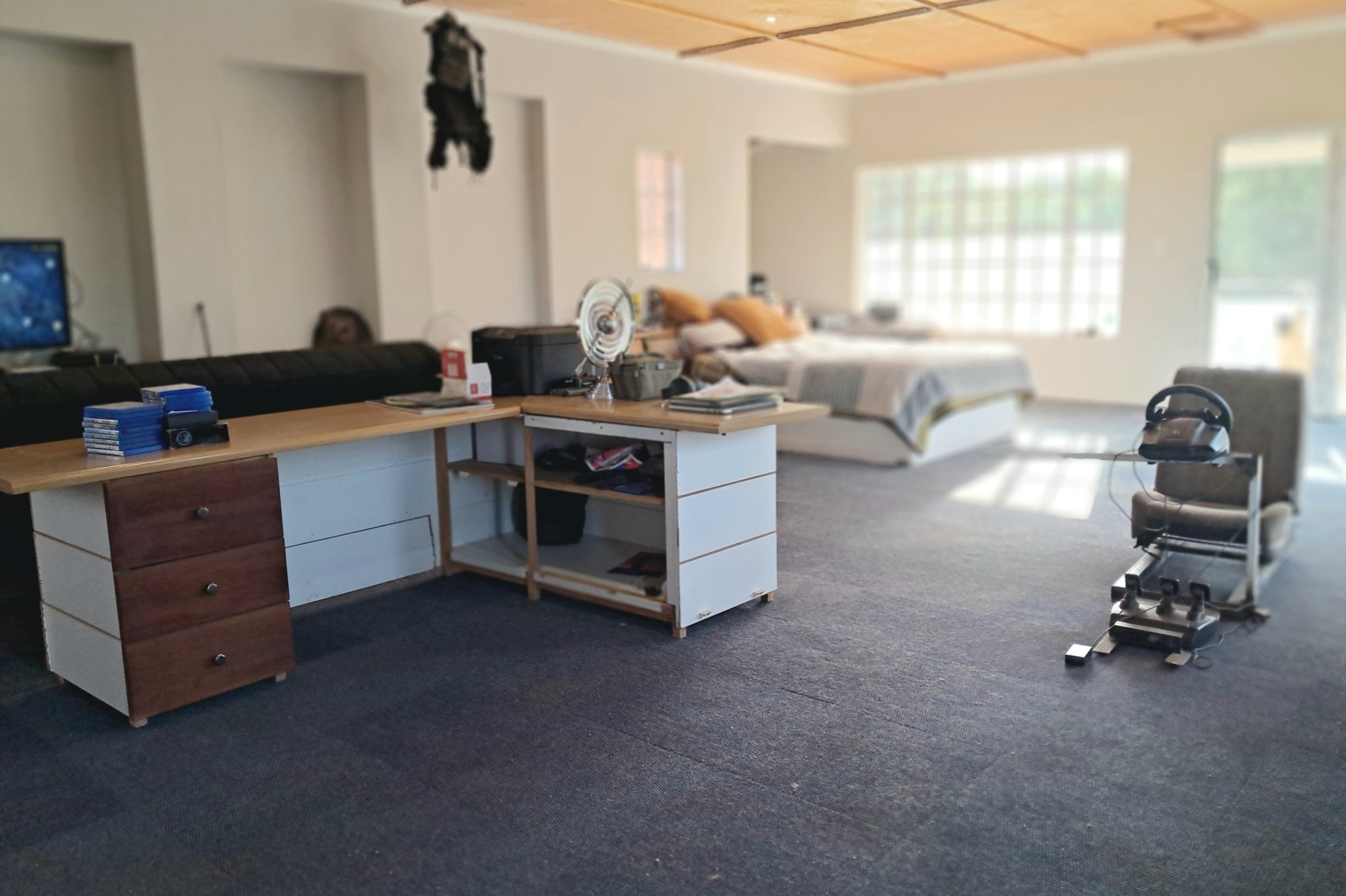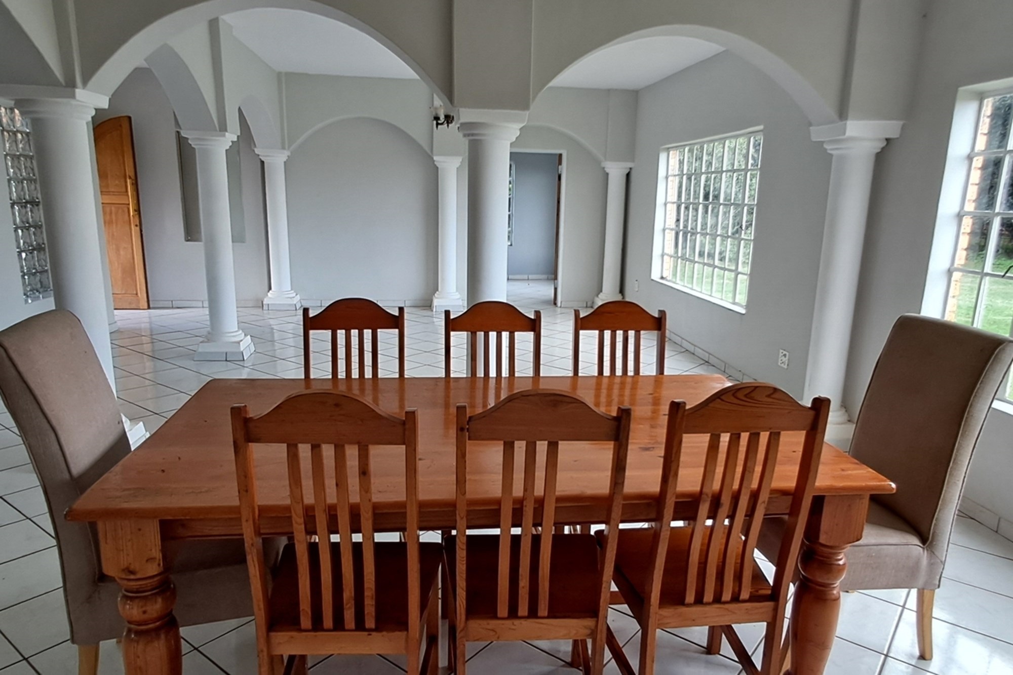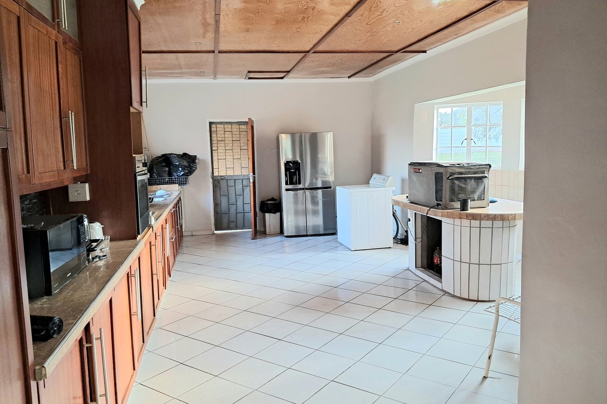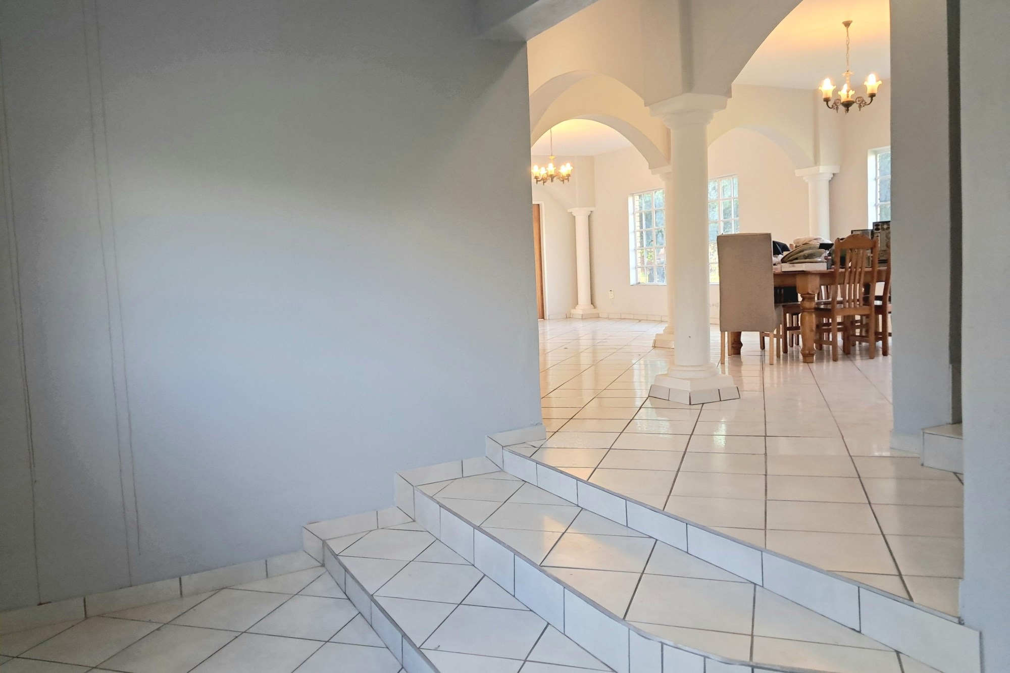 A great 1HA in a safe estate. Room for you to add your personal touch, although nicely renovated. Don’t miss out on your dream residence! Nestled on a 1.2-hectare smallholding in the sought-after Grootfontein Country Estate, this newly renovated and generously sized 4-bedroom, 2-bathroom home is ready to welcome you. Enjoy breathtaking sunsets from the expansive upper room, which boasts its own private balcony. The house is perfectly positioned to take advantage of those sunny winter days, facing north. Interior Highlights: Experience the charm of freshly renovated rooms and bathrooms adorned with stylish new tiles throughout. The living areas exude a Roman-inspired ambiance, featuring exquisite pillars that enhance the character of the home. Kitchen: The spacious kitchen is a chef`s delight, complete with a preparation island that doubles as a cozy breakfast nook. With ample white tiles and numerous windows, natural light floods the area. Conveniently, there’s a dedicated room for ironing, laundry, or storage, with direct access to the double garage. Bedrooms: Four generously sized north-facing bedrooms come equipped with built-in cupboards and picturesque garden views. The extra-wide passage offers additional space for furniture, such as cupboards, chairs, or sofas. Bathrooms: The main en-suite bathroom, attached to the master bedroom, features a walk-in wardrobe, while the second bathroom caters to the remaining three bedrooms. Study: There’s a versatile study/office with access from both the lounge and an external door for client visits. With a bit of creativity, this space could easily transform into a cozy room for a teenager. Living Areas: Step through the front door into a magnificent space reminiscent of a Roman villa, where striking white pillars invite you into an area that flows seamlessly from the lounge to the dining room and into the kitchen (which is not open plan). Upper Level: Ascend the staircase to discover a vast upper room that can serve as an entertainment zone, art studio, or whatever your heart desires. It features north-facing windows and an east-facing sliding door leading to the balcony—perfect for enjoying the sunset. Exterior: A concrete slab is ready for your imagination—transform it into a lapa, additional garages, or carports. At the back, a braai area surrounds a splash pool, creating an inviting space for family gatherings. Further down, you’ll find two workers` rooms, animal cages, and plenty of space for a vegetable garden. Garden: The property is adorned with lush green grass and just the right number of trees to create a tranquil paradise. Enjoy the bounty of mature fruit and nut trees, including peach, lemon, pomegranate, fig, and peanut trees, all inviting your family to relax beneath their branches while sipping homemade lemonade. The remaining space can be transformed into organic veggie tunnels, supported by ample water from the borehole and Eskom power. There is a precast wall with a gate. Monitor net is 24hour security service driving in a car around in the estate. The estate owners are on a whatsapp group. Conveniently located just a short gravel road trip of less than a kilometer to the tar road, this property is in close proximity to essential schools, hospitals, and shopping centers, including Woodlands Mall, only 10 km away. It’s the perfect blend of seclusion and accessibility! Don’t wait—call today to schedule a viewing before you head off on holiday!