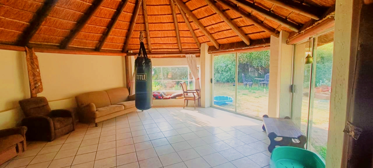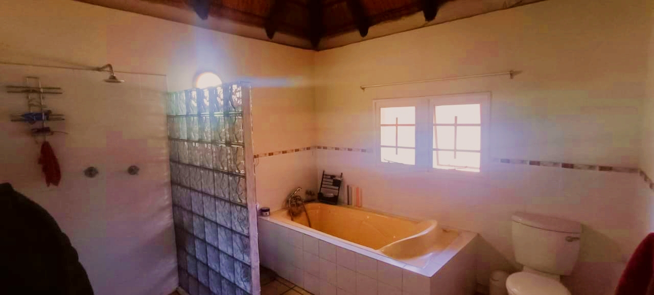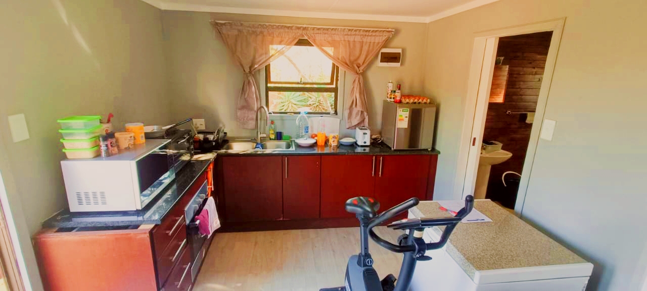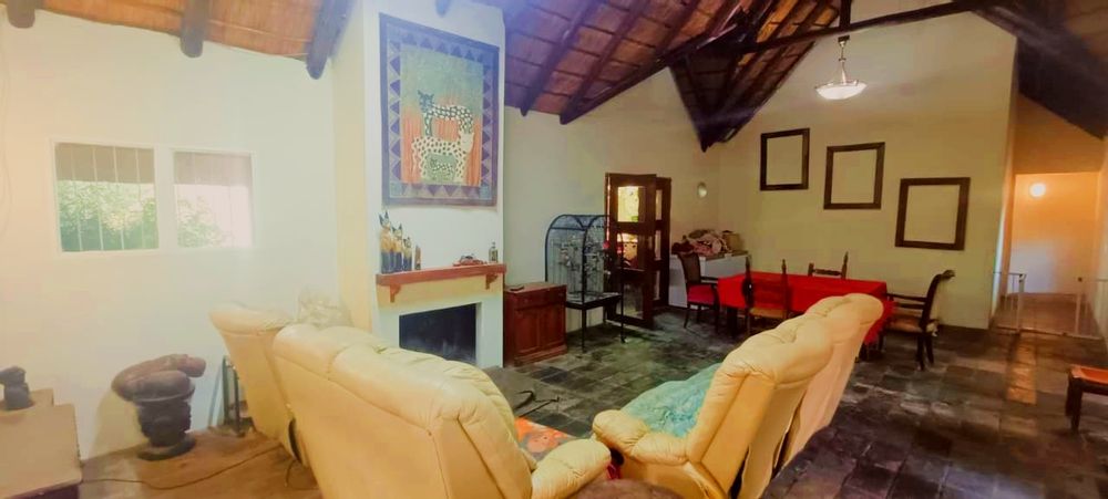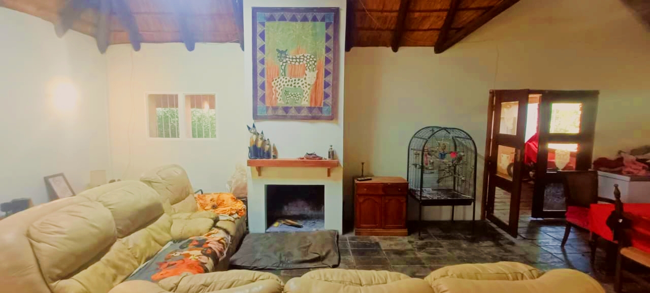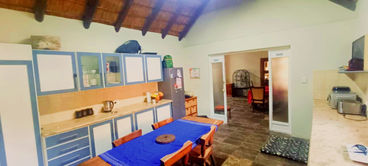 If space, versatility, and country-style living are what you’re looking for, then this unique property in Grootfontein Country Estate will tick all the boxes. Offering two full family homes, two private cabins, and a separate flatlet all on one stand, this gem is perfect for an extended family, dual living, or generating rental income while still enjoying the tranquility of an estate lifestyle. The first home features three bedrooms and two bathrooms, with the main bedroom en-suite. Its open-plan lounge with a fireplace and dining area flow into a well-designed kitchen, fitted with a gas stove, electric oven, and a scullery with space for top loaders. Added conveniences include staff quarters, a storage container, and a large enclosed workshop, ideal for hobbies or a home-based business. With three covered parking bays, an enclosed pet-friendly garden, and backup water supplied by a borehole, this home is both practical and inviting. The second house, with its charming thatched roof, creates a warm and welcoming atmosphere. Inside, you’ll find a open plan living area with a fireplace, three spacious bedrooms, two bathrooms, a large kitchen with pantry and scullery and a light-filled sunroom that opens to a beautiful yard with a roofed outside braai area, perfect for entertaining. This home also offers two covered parking spaces, a private courtyard, and an enclosed garden that is completely pet-friendly. For additional accommodation, two cabins each offer privacy and comfort. The first has two bedrooms, a full kitchenette with a gas stove, a shared bathroom with shower, and its own motorised gate and enclosed garden. The second cabin features one bedroom, a bathroom with shower, and a compact kitchenette with an oven. Both cabins have gas geysers, backup water, hot water systems, and covered parking. A one-bedroom flatlet with an open-plan lounge, kitchen, and bathroom completes the picture, making this property a versatile haven for multi-generational living or as an excellent income-generating investment. With multiple motorised gates, secure parking, a borehole and water storage tanks, as well as ample workshop and storage space, this is a property designed for both comfortable living and long-term value. It is truly a rare find – spacious, versatile, and ready to welcome its new owners. Call me today to arrange your private viewing and experience all that this incredible property has to offer.