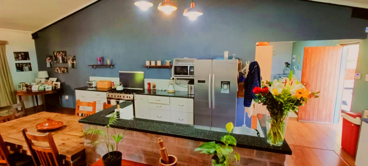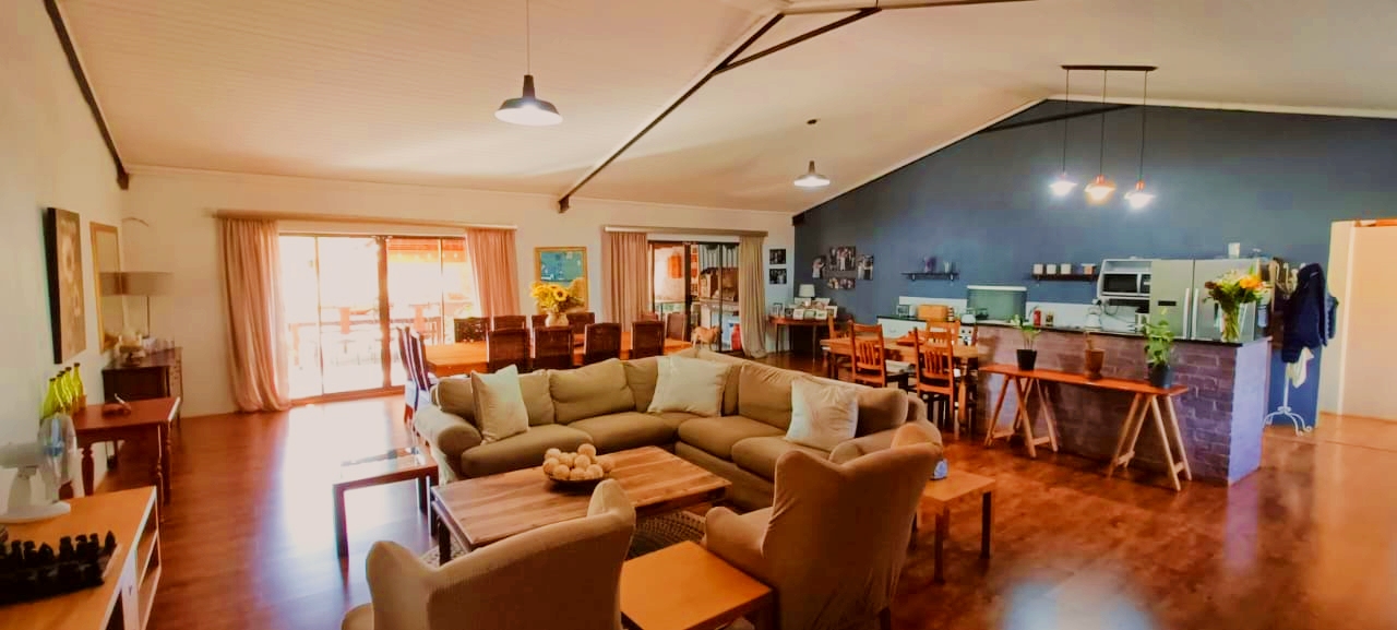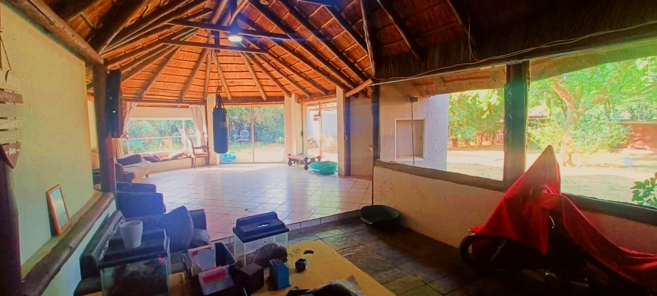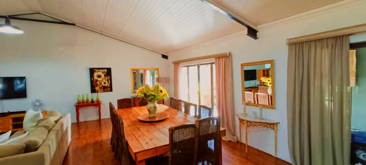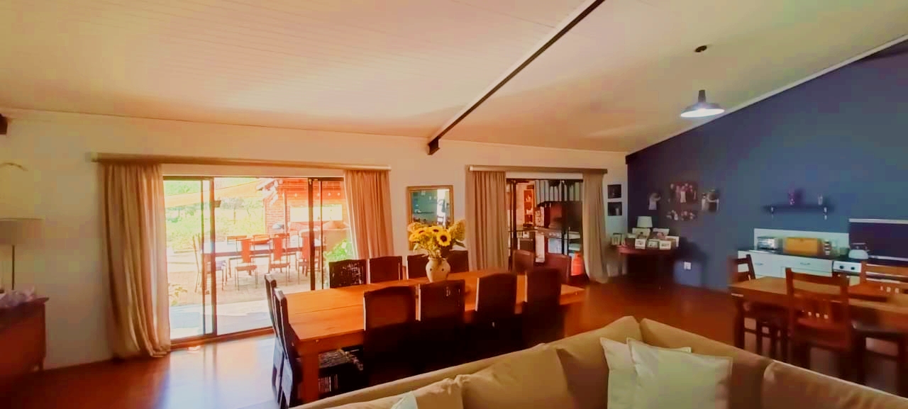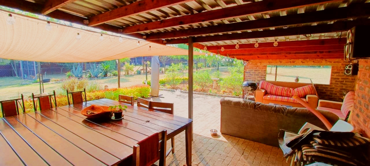 If space, versatility, and country-style living are what you’re looking for, then this unique property in Grootfontein Country Estate will tick all the boxes. Offering two full family homes, two private cabins, and a separate flatlet all on one stand, this gem is perfect for an extended family, dual living, or generating rental income while still enjoying the tranquility of an estate lifestyle. The first home features three bedrooms and two bathrooms, with the main bedroom en-suite. Its open-plan lounge with a fireplace and dining area flow into a well-designed kitchen, fitted with a gas stove, electric oven, and a scullery with space for top loaders. Added conveniences include staff quarters, a storage container, and a large enclosed workshop, ideal for hobbies or a home-based business. With three covered parking bays, an enclosed pet-friendly garden, and backup water supplied by a borehole, this home is both practical and inviting. The second house, with its charming thatched roof, creates a warm and welcoming atmosphere. Inside, you’ll find a open plan living area with a fireplace, three spacious bedrooms, two bathrooms, a large kitchen with pantry and scullery and a light-filled sunroom that opens to a beautiful yard with a roofed outside braai area, perfect for entertaining. This home also offers two covered parking spaces, a private courtyard, and an enclosed garden that is completely pet-friendly. For additional accommodation, two cabins each offer privacy and comfort. The first has two bedrooms, a full kitchenette with a gas stove, a shared bathroom with shower, and its own motorised gate and enclosed garden. The second cabin features one bedroom, a bathroom with shower, and a compact kitchenette with an oven. Both cabins have gas geysers, backup water, hot water systems, and covered parking. A one-bedroom flatlet with an open-plan lounge, kitchen, and bathroom completes the picture, making this property a versatile haven for multi-generational living or as an excellent income-generating investment. With multiple motorised gates, secure parking, a borehole and water storage tanks, as well as ample workshop and storage space, this is a property designed for both comfortable living and long-term value. It is truly a rare find – spacious, versatile, and ready to welcome its new owners. Call me today to arrange your private viewing and experience all that this incredible property has to offer.