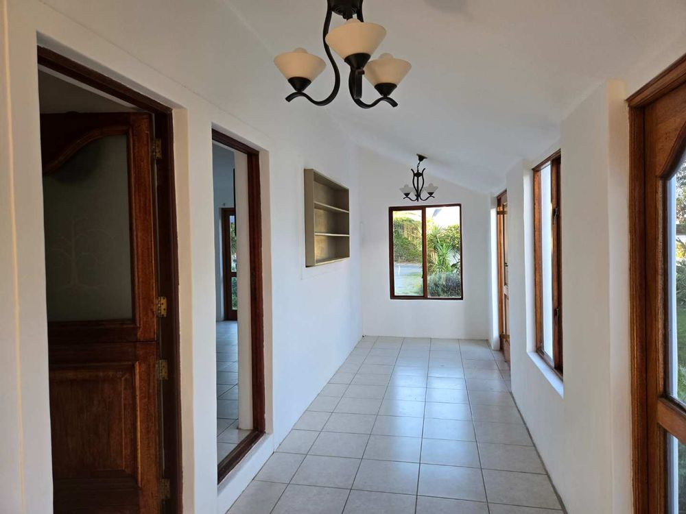This light and modern property opens its doors to allow nature to flow inside. This versatile residence features an open-plan lounge and dining area that seamlessly flows into a secluded patio area, complete with swimming pool and braai. With five bedrooms, six bathrooms, and a dedicated study, there's ample space for everyone. Kitchen and scullery are just off the lounge and offer seamless flow into the living area.