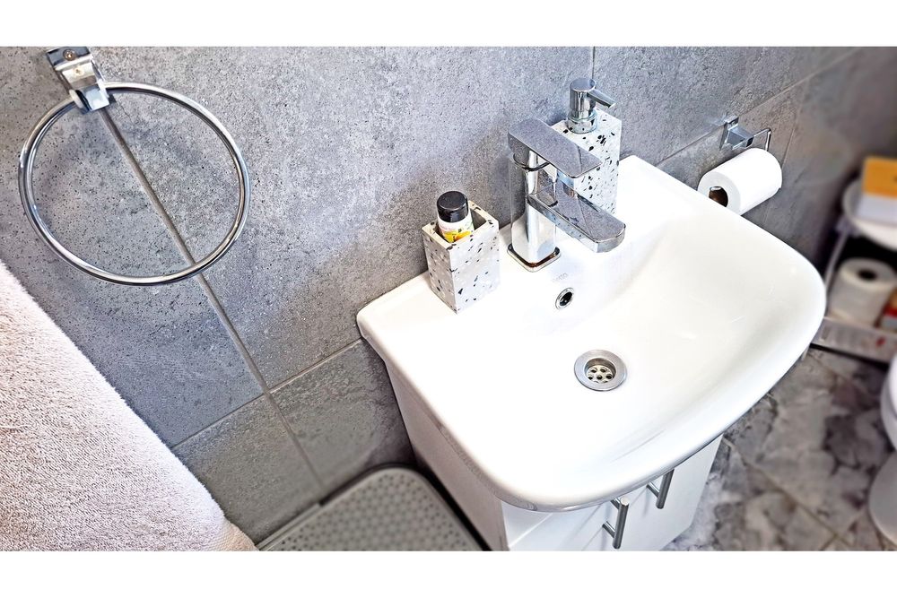 The space and modern features continues in the full family bathroom, which includes modern fixtures and taps.