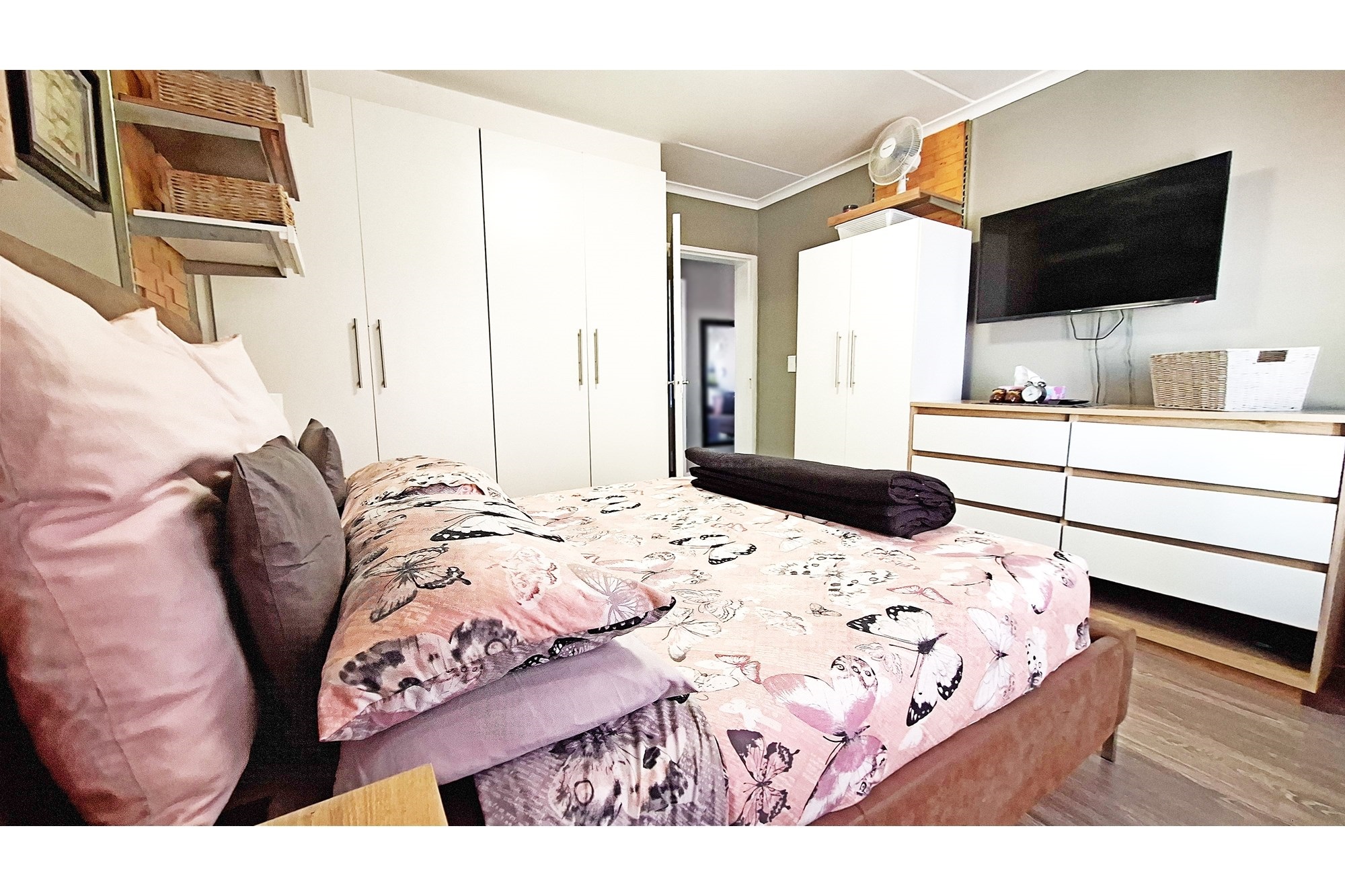 The 2 bedrooms are spacious, with a continuation of the beautiful feature-wall and ample built-in cupboards.